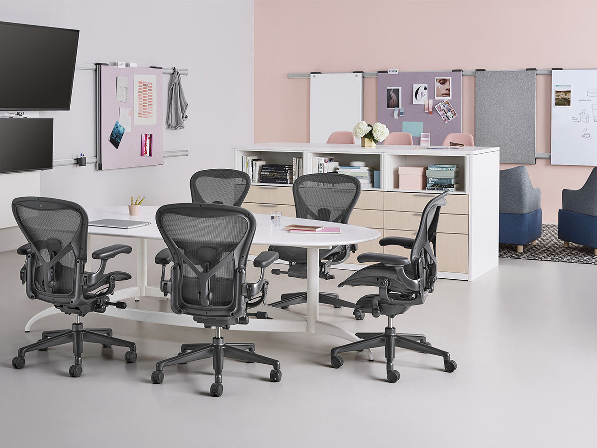 人間工学(エルゴノミクス)に基づきデザインされた、史上最も有名な高機能ワークチェア「アーロンチェア」。その象徴的な外観はほぼ変わらないまま、現代の仕事環境のニーズを満たすため完全にリマスターされました。オリジナルのデザイナーのひとりであるドン・チャドウィックの協力のもと、ハーマンミラー社の座るという科学に関する最新研究と、素材とテクノロジーの面における進歩を取り入れ、今まで以上に優れたチェアへアップデートされています。すべての人にフィットするための3種類のサイズ、総体的に考え抜かれた3種類のマテリアルパターンからお選びいただけます。