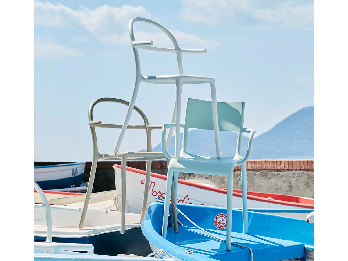 ジェネリックは公共の場で活用されることを前提に、クリエイティブで現代的なデザインで考えられたシリーズです。カルテル史上もっともリーズナブルな価格ながら、デザインは天才フィリップ・スタルクが手がけ、スタイリッシュで耐久性に優れ、もちろんスタッキング(重ね置き)も可能。余分な部分を削ぎ落とし、椅子の本質的な部分のみで構成されたデザインです。