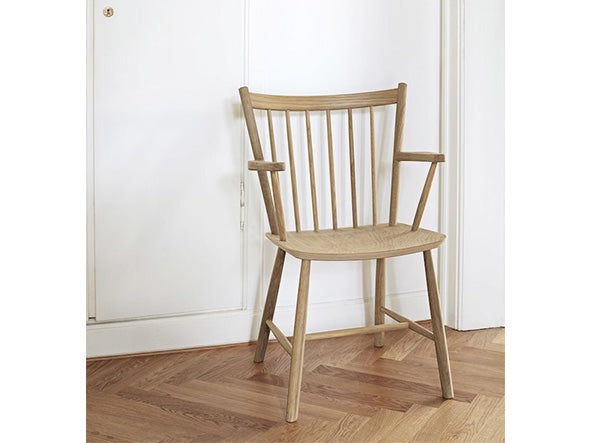 デンマーク家具を代表するデザイナー、ボーエ・モーエンセンの名作チェア「J42」をHAYが復刻。広めにとられたシートと傾斜がついた背もたれは座り心地がよく、コンパクトなアームが体にしっくりと馴染みます。