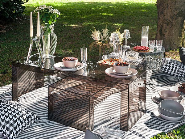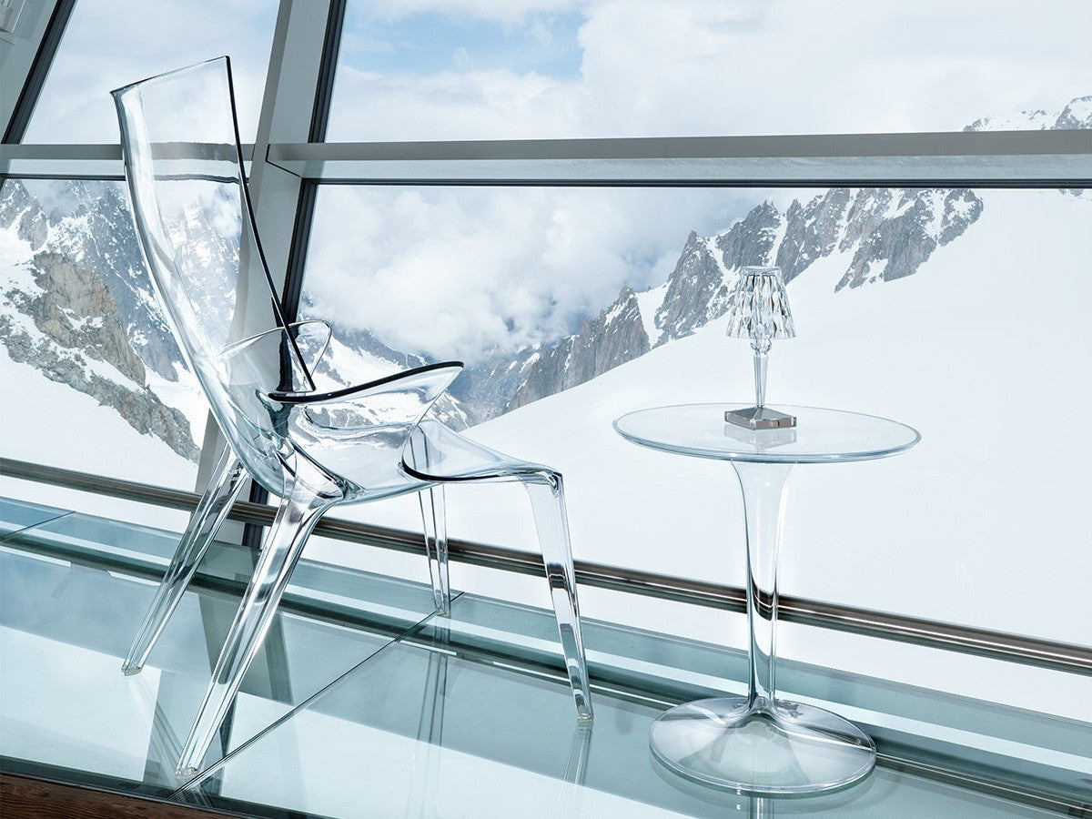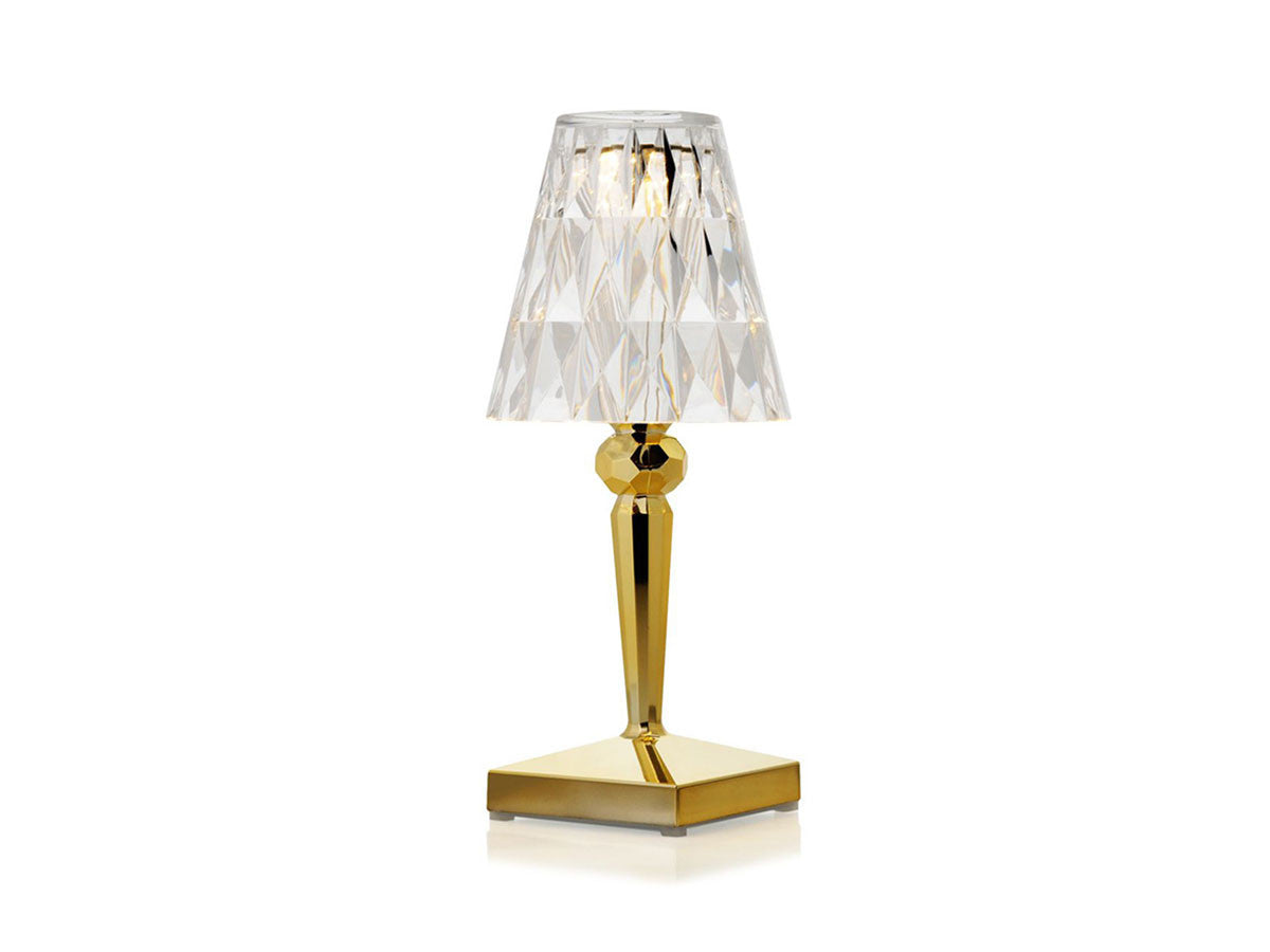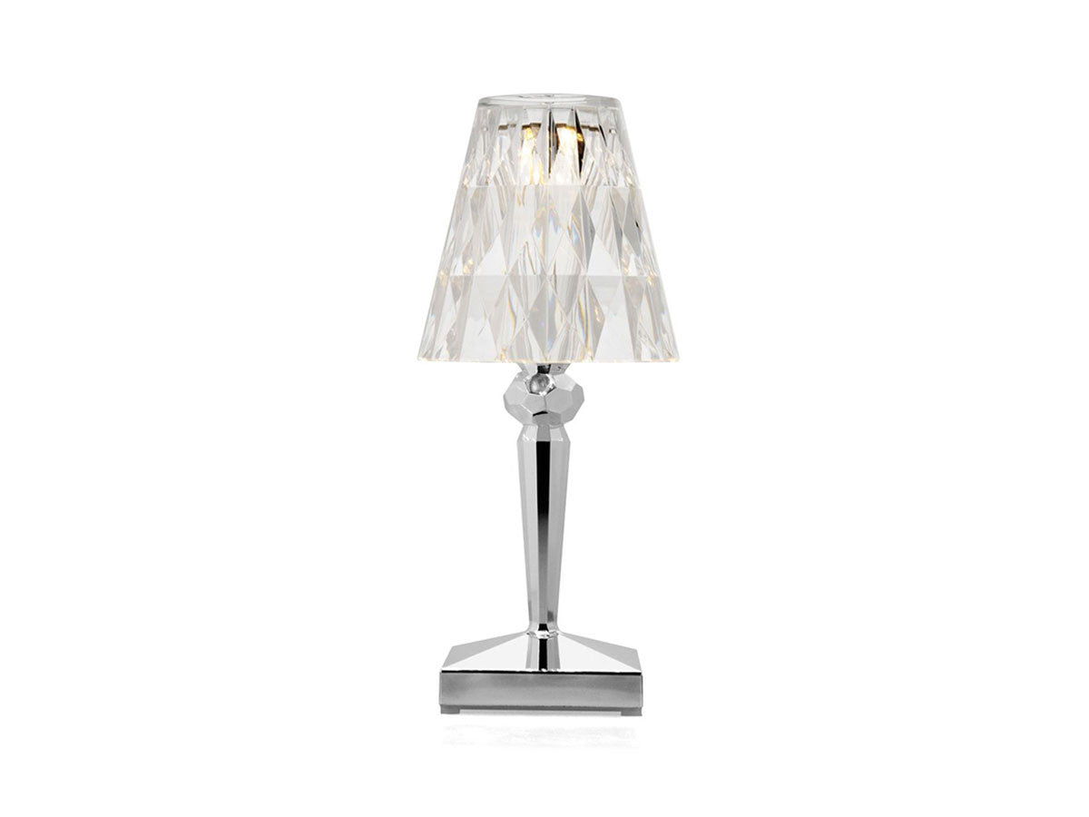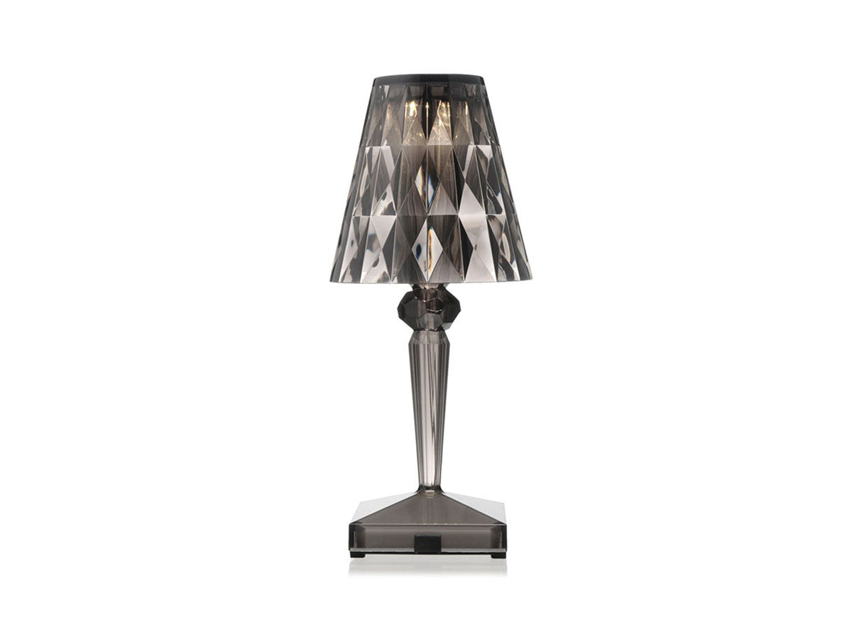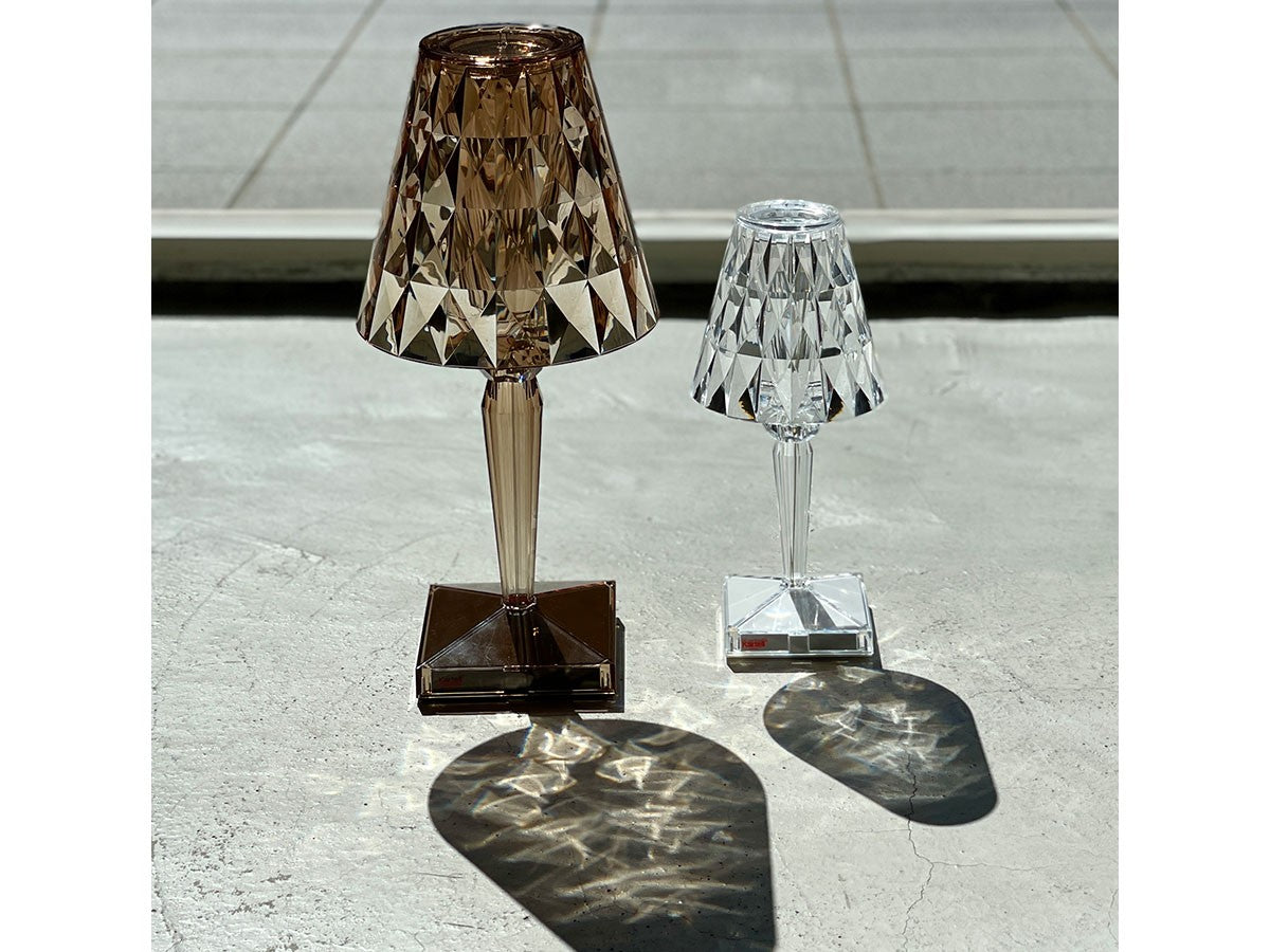 透明なPMMA製のアイコン的デザインのベッドサイドランプです。表面に切り子風の装飾が施されたランプシェードから、魅力に満ちた光を放ちます。USBケーブルで充電し、電源から外しても6時間持続します。電源コードを必要せずに簡単に持ち運べるため、室内だけでなく屋外のレストランやカフェでのご使用もおすすめです。