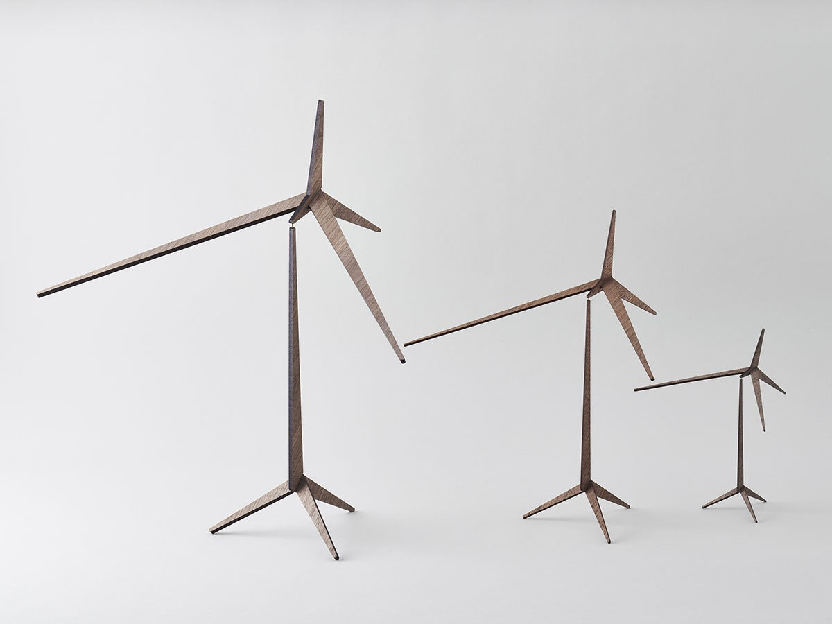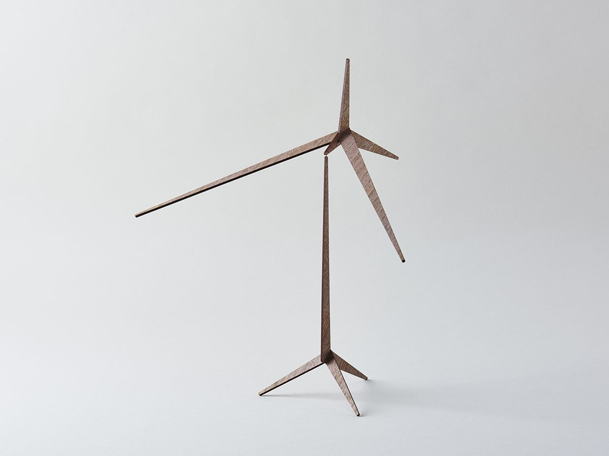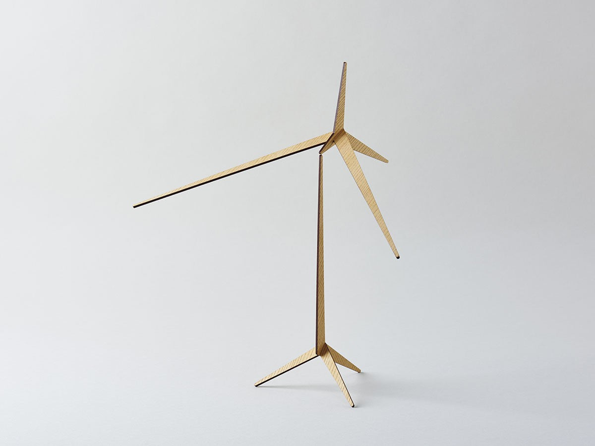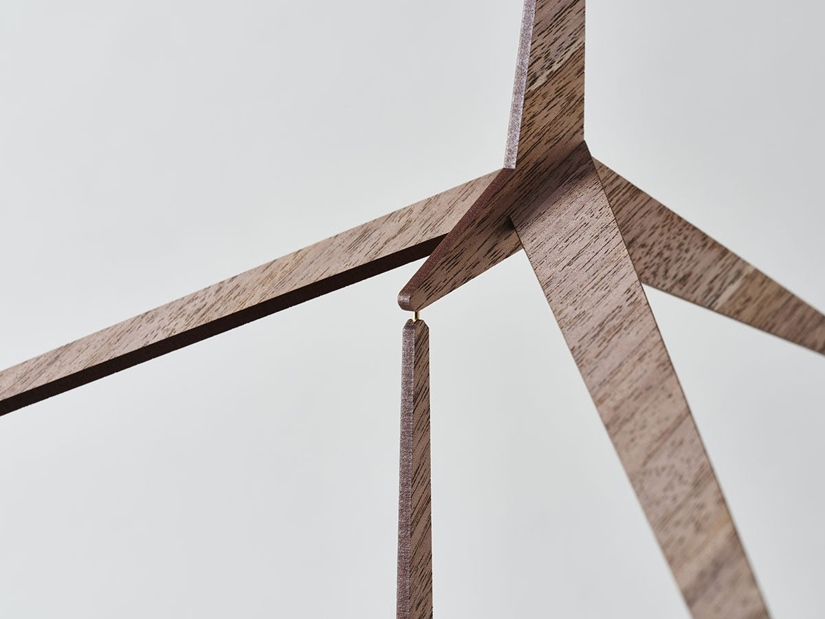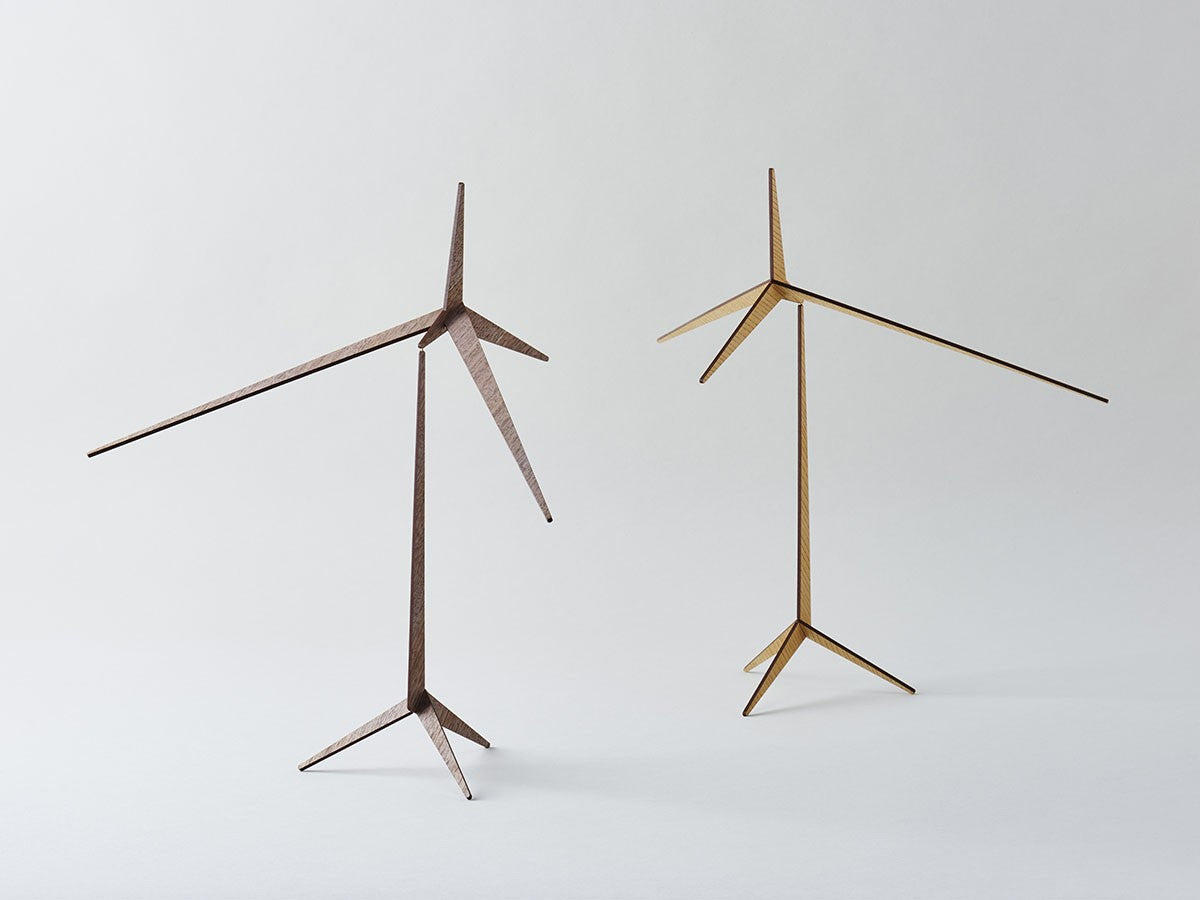 とても小さな一つの点で重力とつながるスタンドモビール。卓上型のモダンなやじろべえのような印象です。その存在感が空間と時間に豊かな表情を与えます。繊細なバランスゆえに、そっと触れるだけで不思議な動きが生まれ、エアコンや人の動きなどの風でゆっくりと動きます。S、M(本商品)、Lの3サイズ展開で、素材は黄味がかったケヤキと、濃い茶色のウォールナットからお選びいただけます。