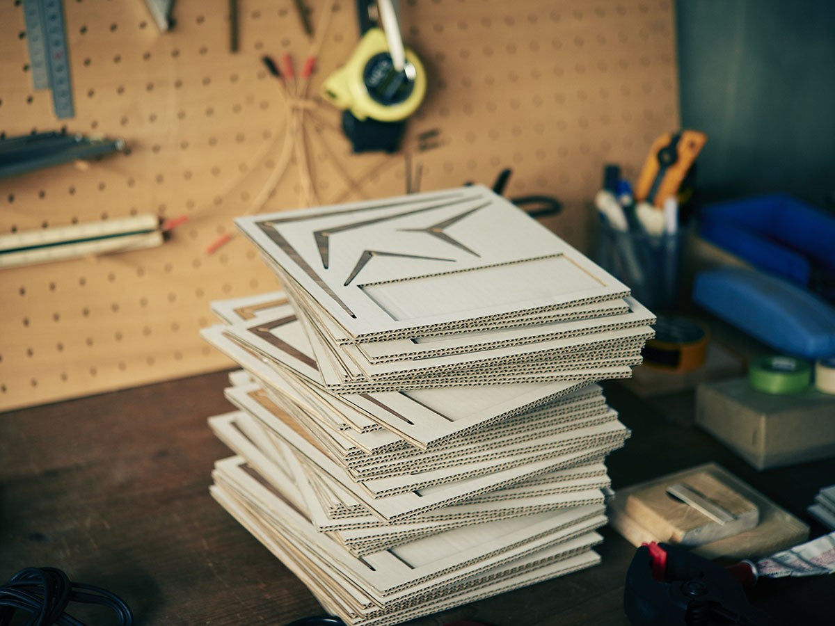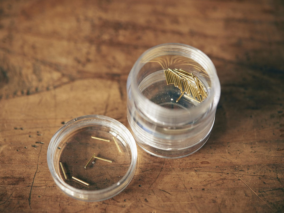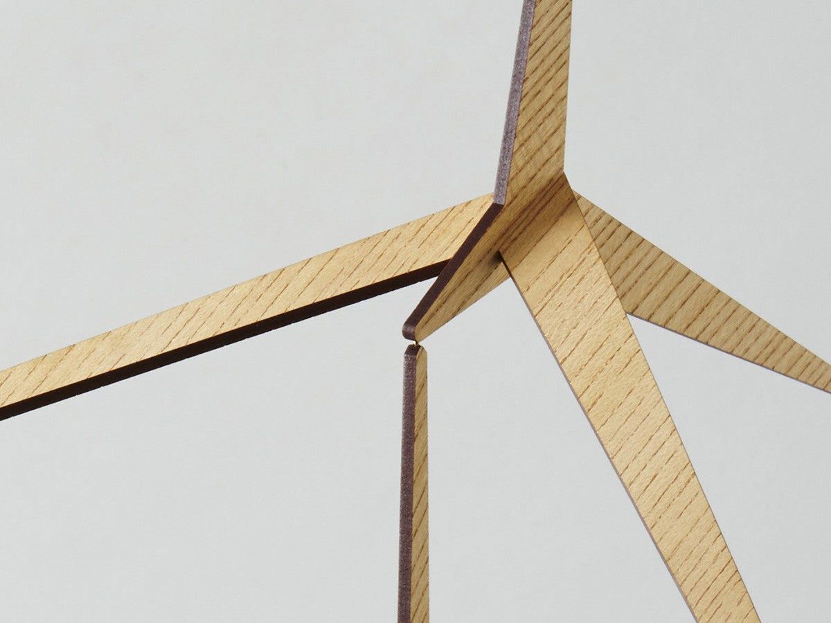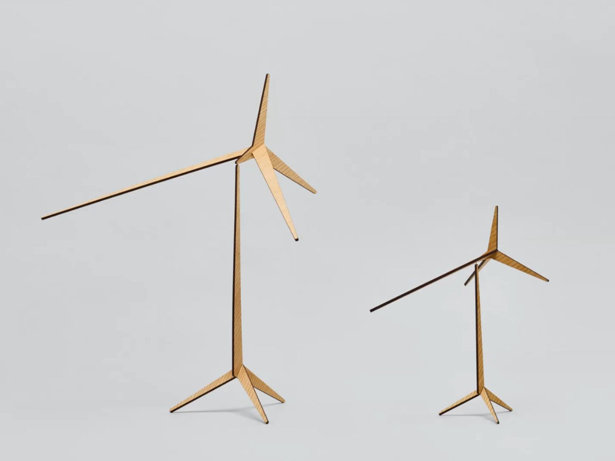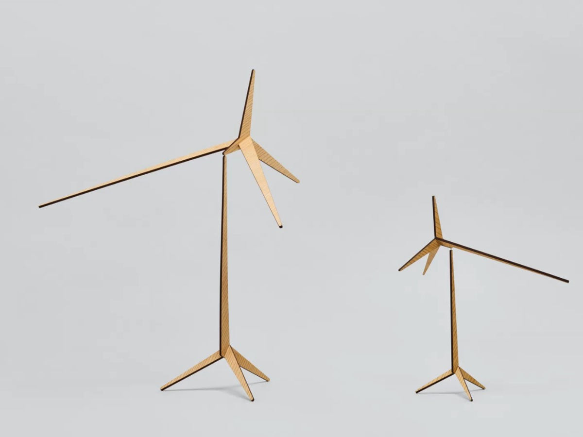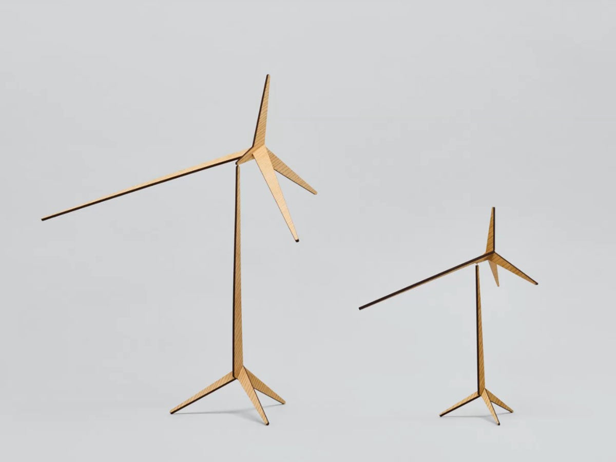 とても小さな一つの点で重力とつながるスタンドモビール。卓上型のモダンなやじろべえのような印象です。その存在感が空間と時間に豊かな表情を与えます。繊細なバランスゆえに、そっと触れるだけで不思議な動きが生まれ、エアコンや人の動きなどの風でゆっくりと動きます。S、M(本商品)、Lの3サイズ展開で、素材は黄味がかったケヤキと、濃い茶色のウォールナットからお選びいただけます。