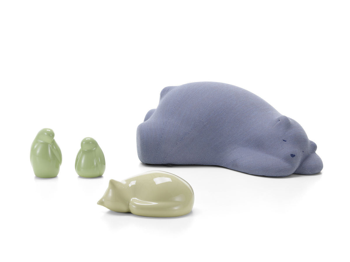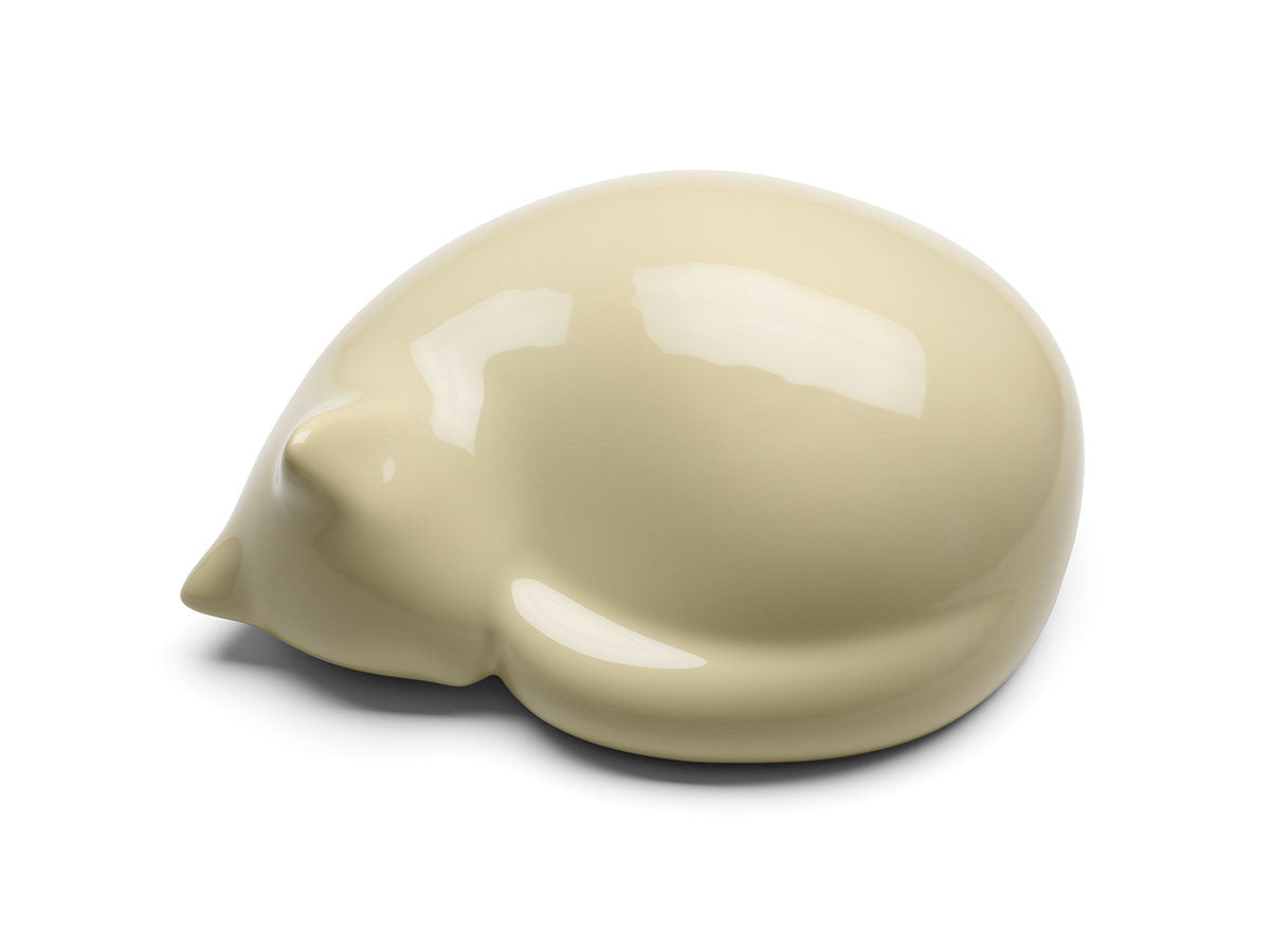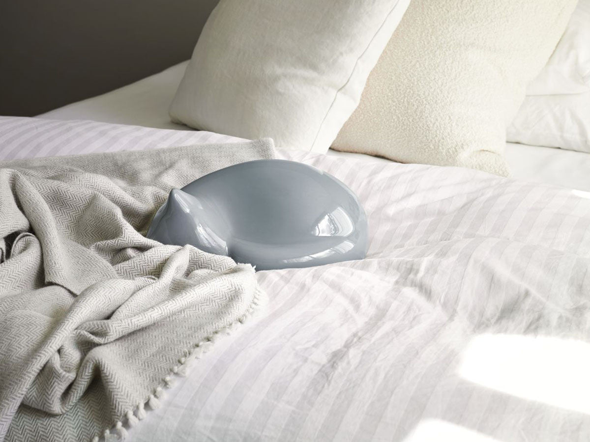 眠った生き物たちのシリーズ「レスティングアニマル」。猫を象ったセラミック製のオブジェです。すやすやと平和に眠る動物達を眺めることで、私達の暮らしと人生に心安らぐ時間を与えてくれます。「レスティング アニマル シリーズ」は、人間とオブジェの密接な繋がりにフォーカスした、デザインユニット「Front」のリサーチプロジェクトから生まれました。このリサーチでは、ランダムに選ばれた人たちに、彼らの暮らしの中でもっとも気持ちを豊かにしてくれるオブジェとはどんなものかを上げてもらいました。その回答の多くは動物の形をしたオブジェで、それらは人格があり、友達のように特別な愛情を持ち、共に大切な時間を過ごして来ていたことがわかりました。 Frontは以前から、動物がどのように眠りについたり、冬眠するのかということをリサーチし、これまでの作品にもそれが反映されていました。このような探求から生まれたのが、眠った生き物たちのシリーズ「レスティングアニマル」です。その姿からは穏やかな静けさが感じられます。