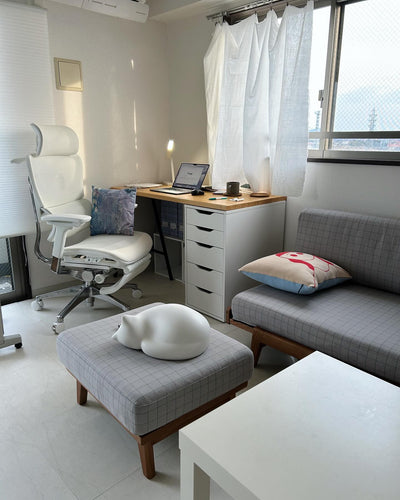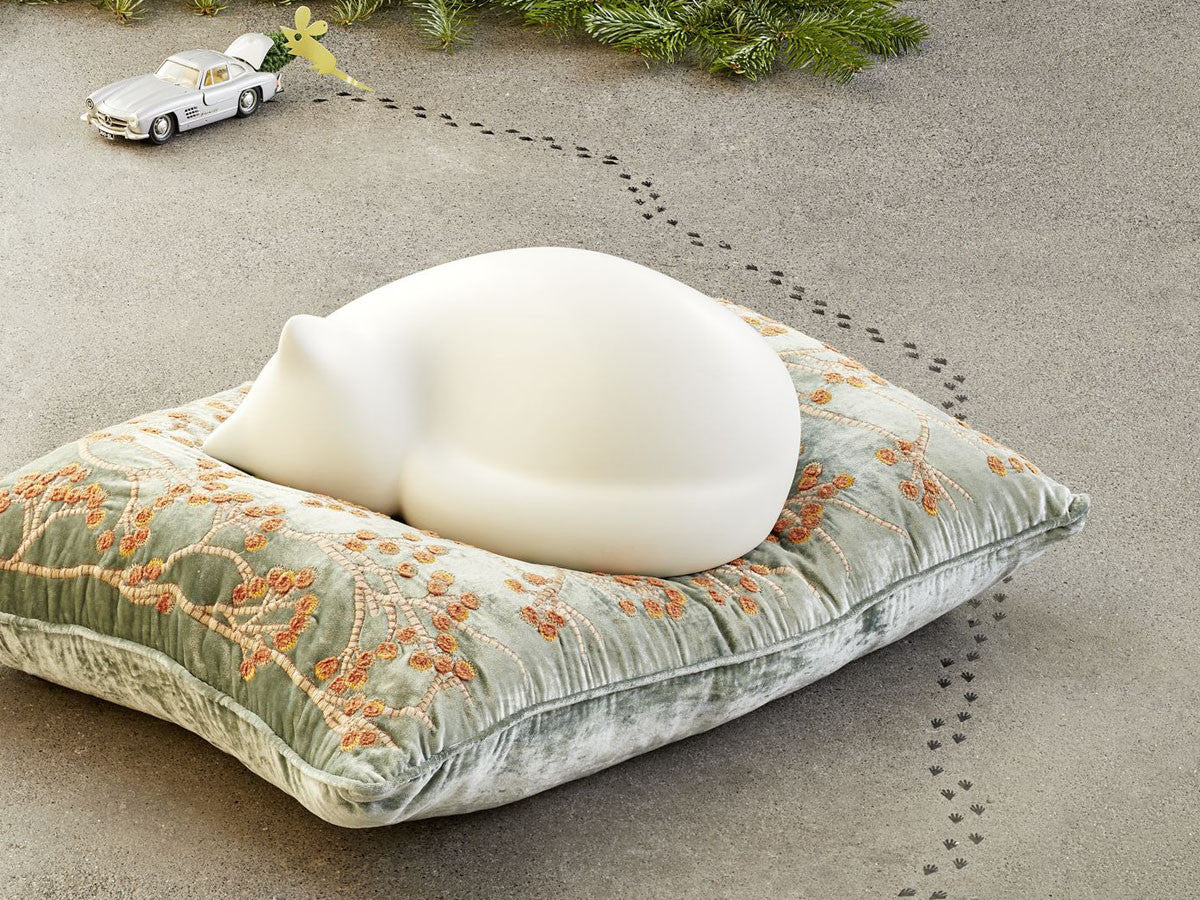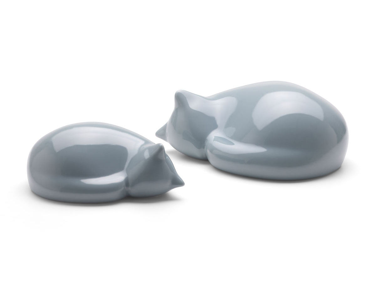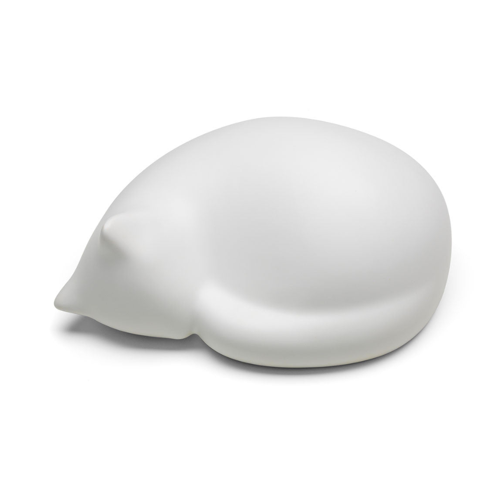 眠った生き物たちのシリーズ「レスティングアニマル」。猫を象ったセラミック製のオブジェです。すやすやと平和に眠る動物達を眺めることで、私達の暮らしと人生に心安らぐ時間を与えてくれます。「レスティング アニマル シリーズ」は、人間とオブジェの密接な繋がりにフォーカスした、デザインユニット「Front」のリサーチプロジェクトから生まれました。このリサーチでは、ランダムに選ばれた人たちに、彼らの暮らしの中でもっとも気持ちを豊かにしてくれるオブジェとはどんなものかを上げてもらいました。その回答の多くは動物の形をしたオブジェで、それらは人格があり、友達のように特別な愛情を持ち、共に大切な時間を過ごして来ていたことがわかりました。 Frontは以前から、動物がどのように眠りについたり、冬眠するのかということをリサーチし、これまでの作品にもそれが反映されていました。このような探求から生まれたのが、眠った生き物たちのシリーズ「レスティングアニマル」です。その姿からは穏やかな静けさが感じられます。