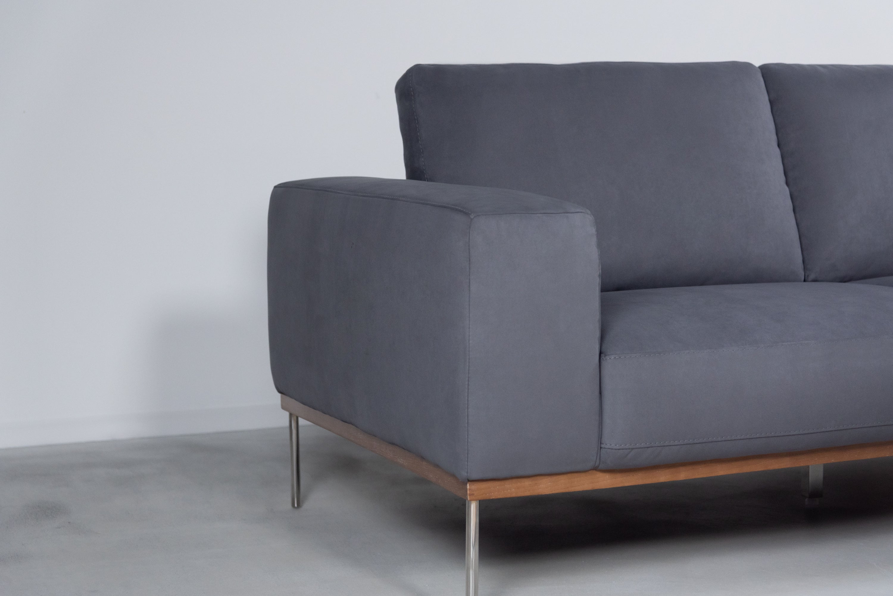 直線的で、スタイリッシュなフォルムの3人掛けソファです。下部にあしらわれた木フレームと、ステンレス製の脚のコントラストがデザイン性 を引き立てます。F1-102はスクラッチに強い生地の為、ペットがいるご家庭でも同じ時間を快適に過ごせます。F1-103は背面まで贅沢にイタリアンレザーを使用した総本革仕様です。