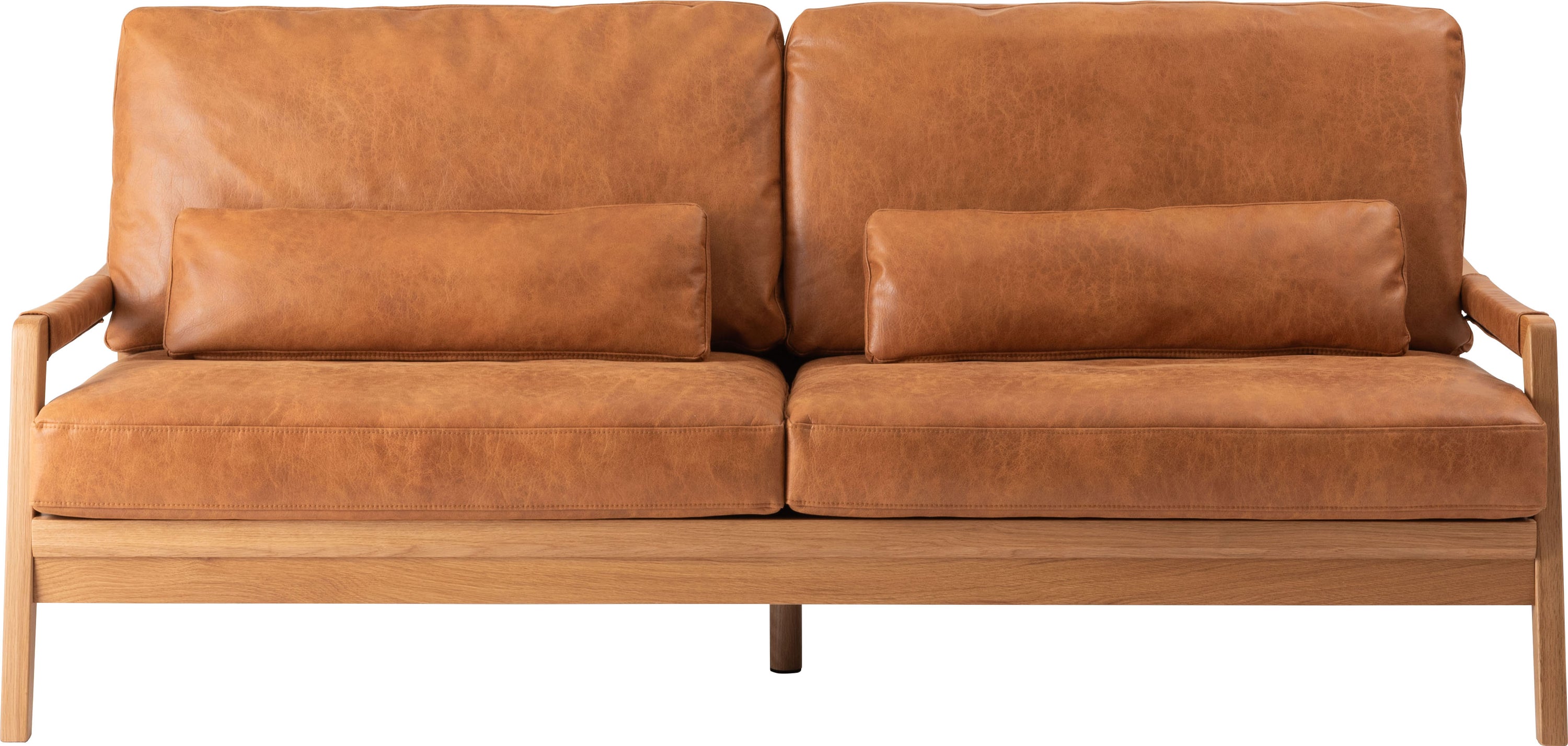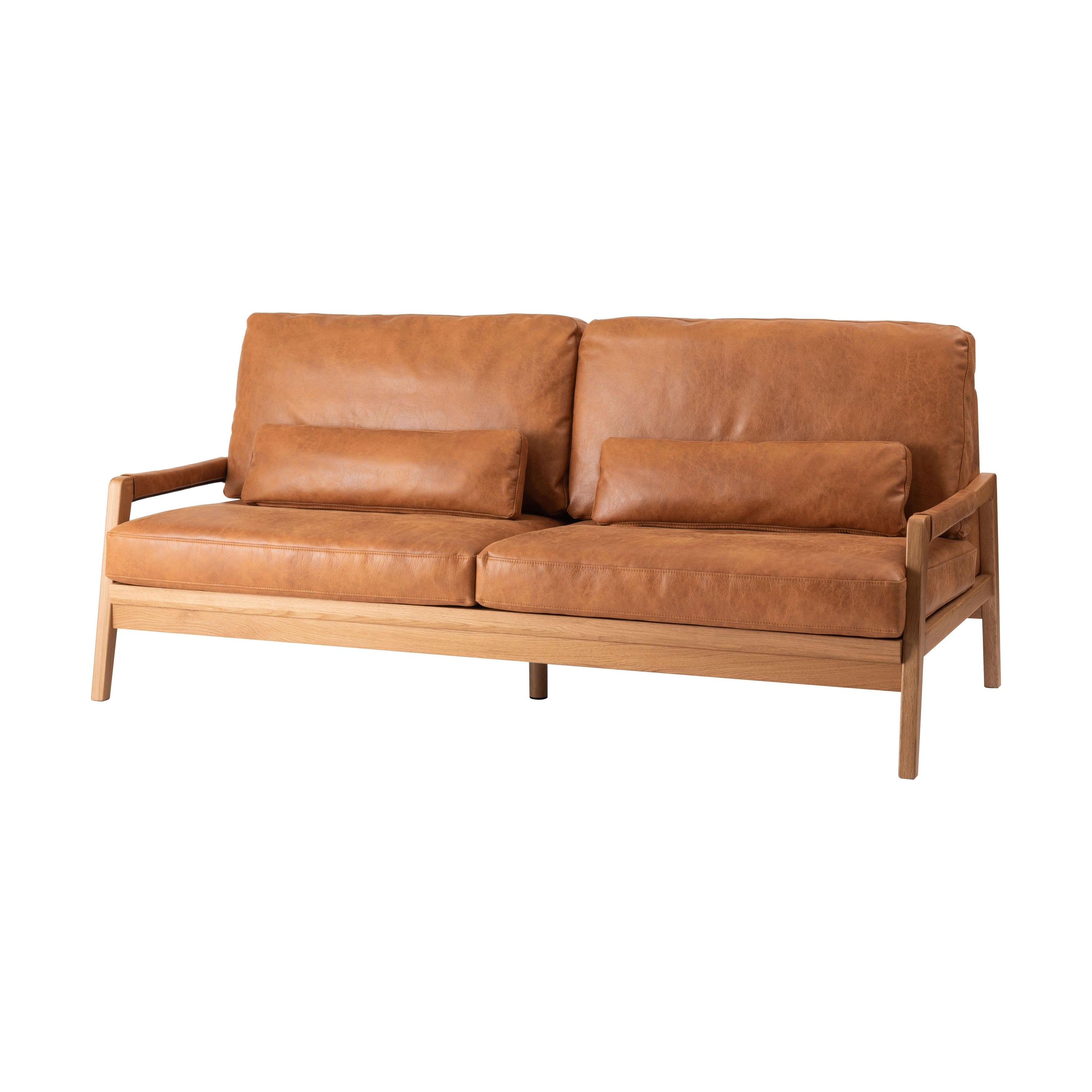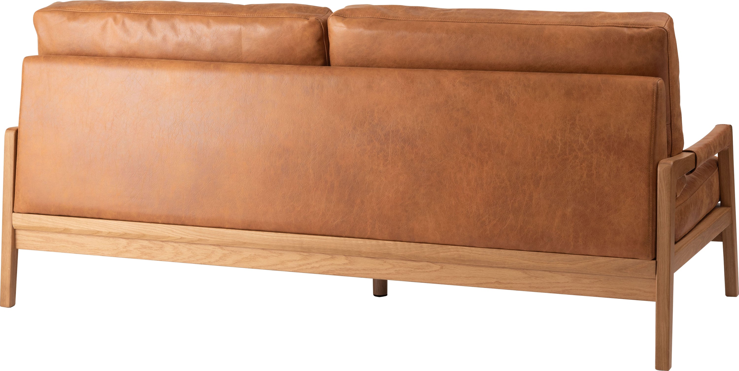 オーク材のフレームがあたたかみを演出するソファです。ゆったりとした座面でのびのび使えます。背・座ともに大ボリュームな設計でクッション性も抜群です。背面にも本体と同じ生地を使用し、後ろ姿にもこだわりました。BE/KHは人気のブークレ生地を、CAはクロスレザーを採用しています。