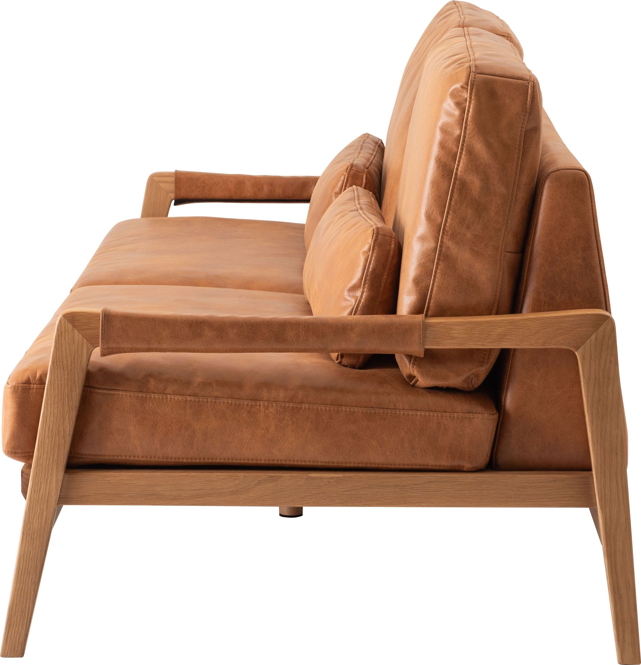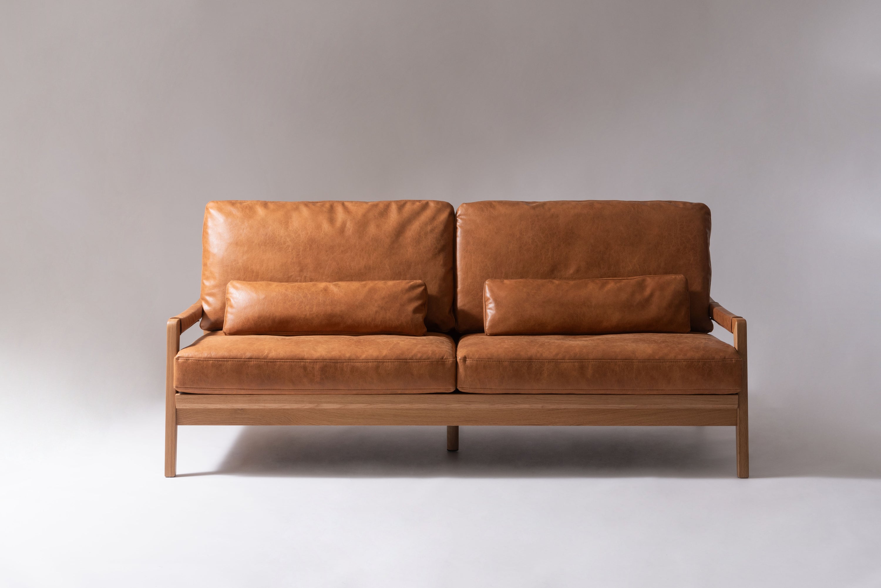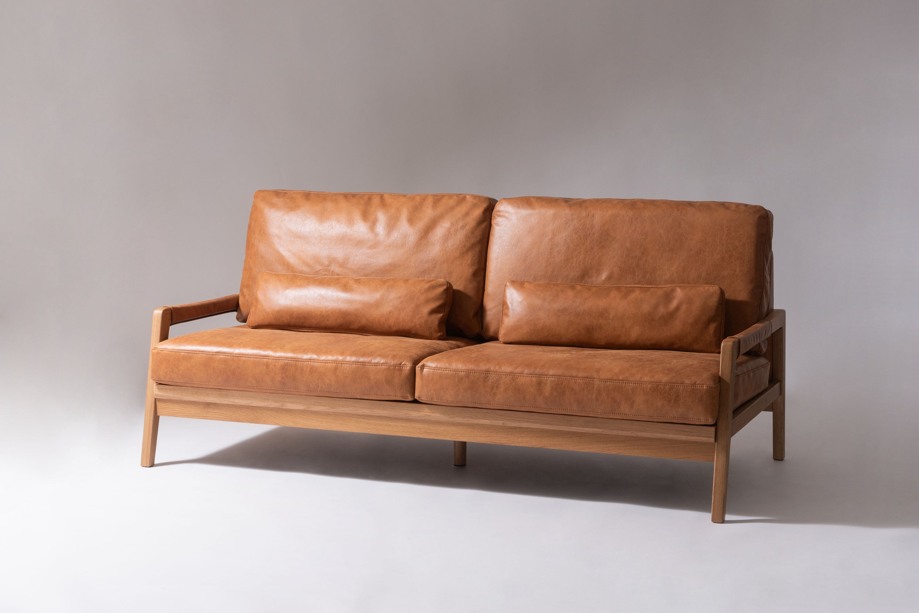 オーク材のフレームがあたたかみを演出するソファです。ゆったりとした座面でのびのび使えます。背・座ともに大ボリュームな設計でクッション性も抜群です。背面にも本体と同じ生地を使用し、後ろ姿にもこだわりました。BE/KHは人気のブークレ生地を、CAはクロスレザーを採用しています。