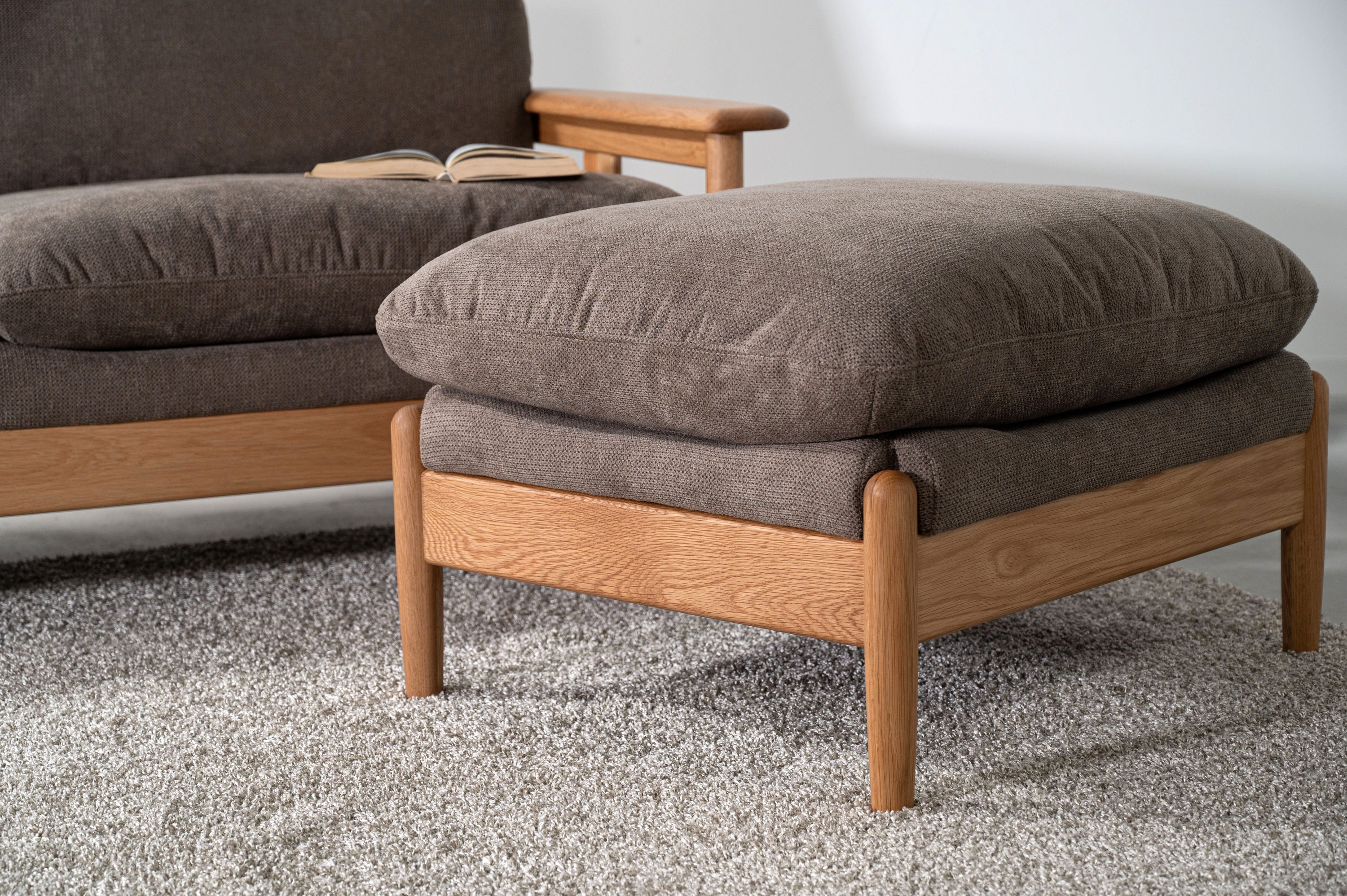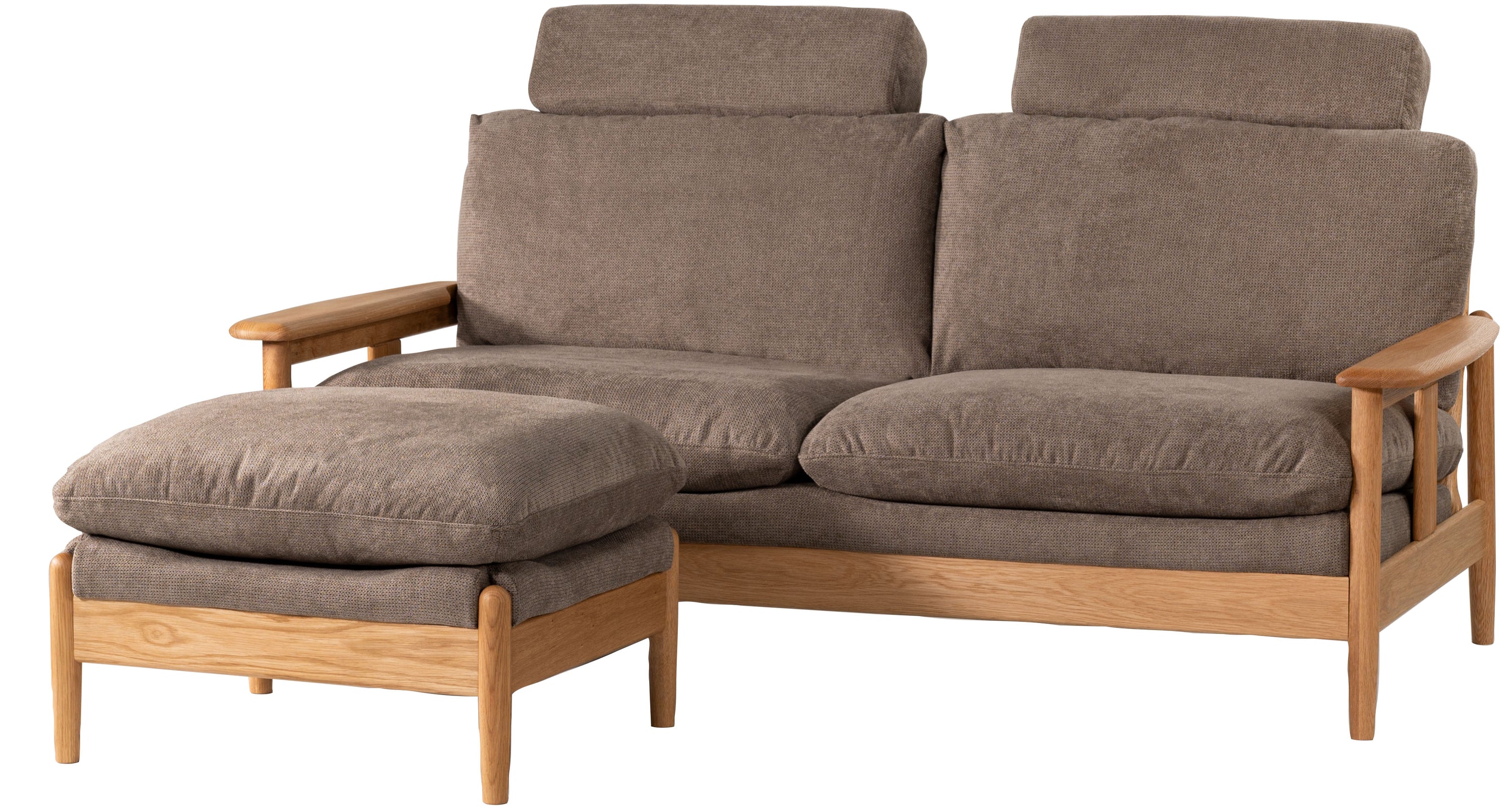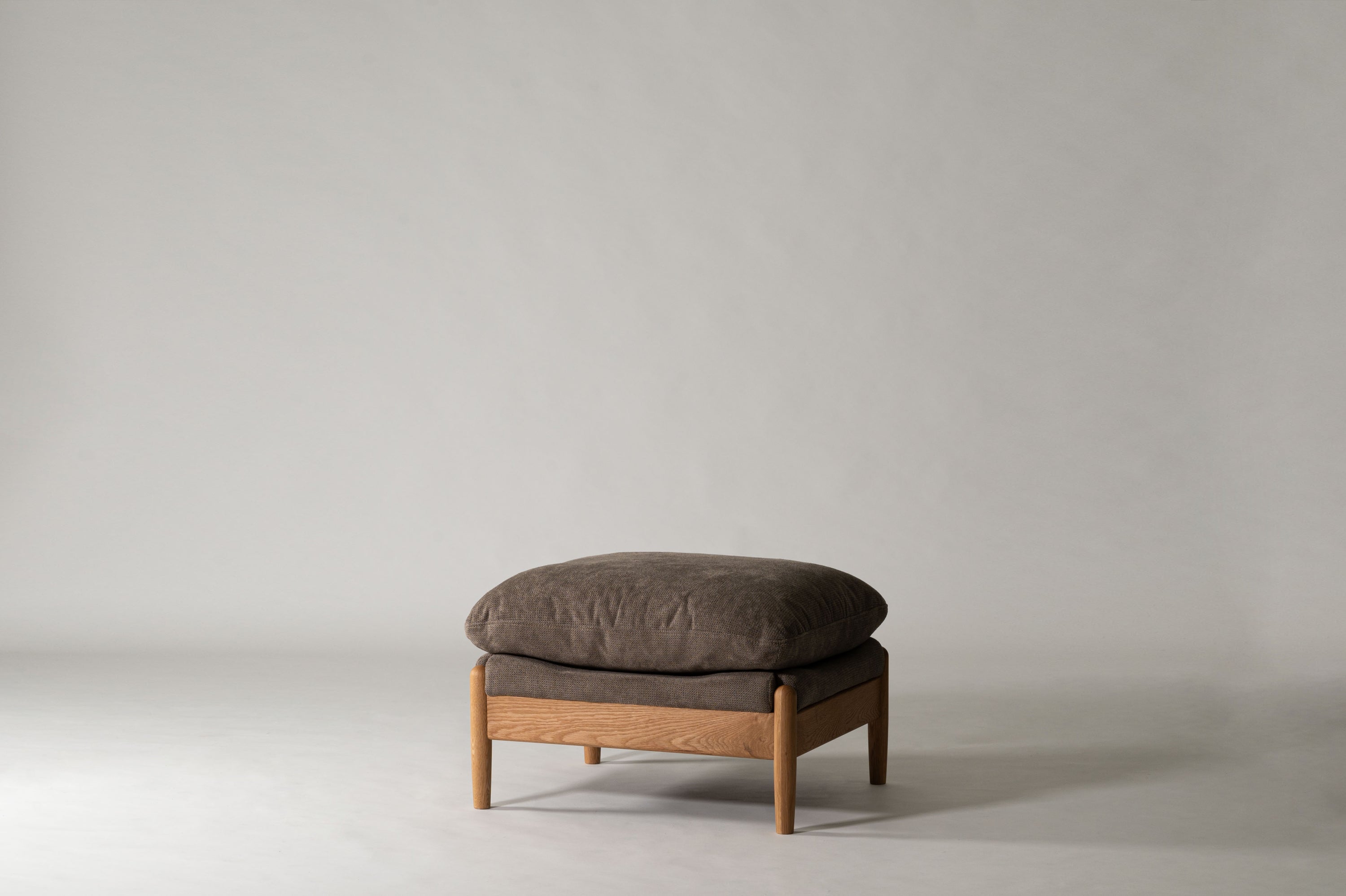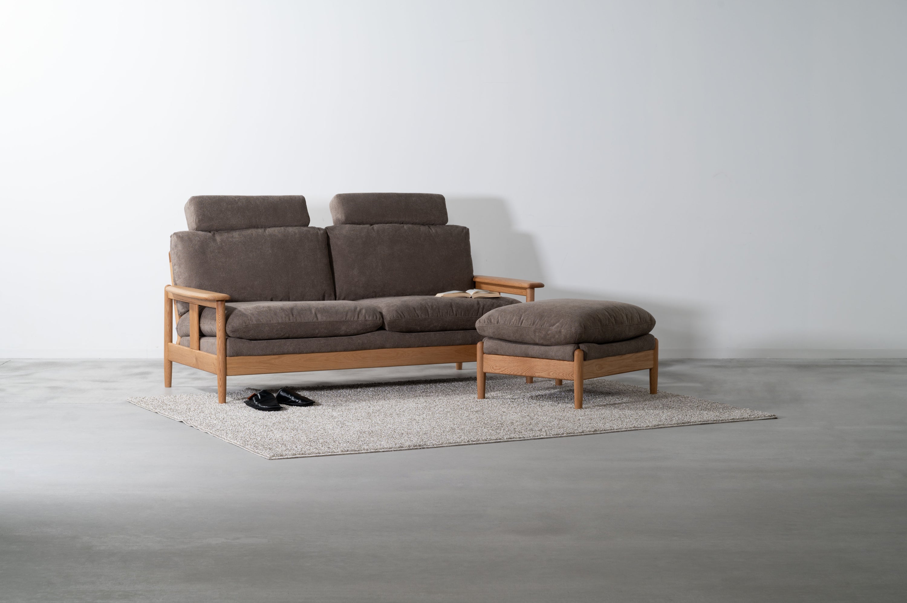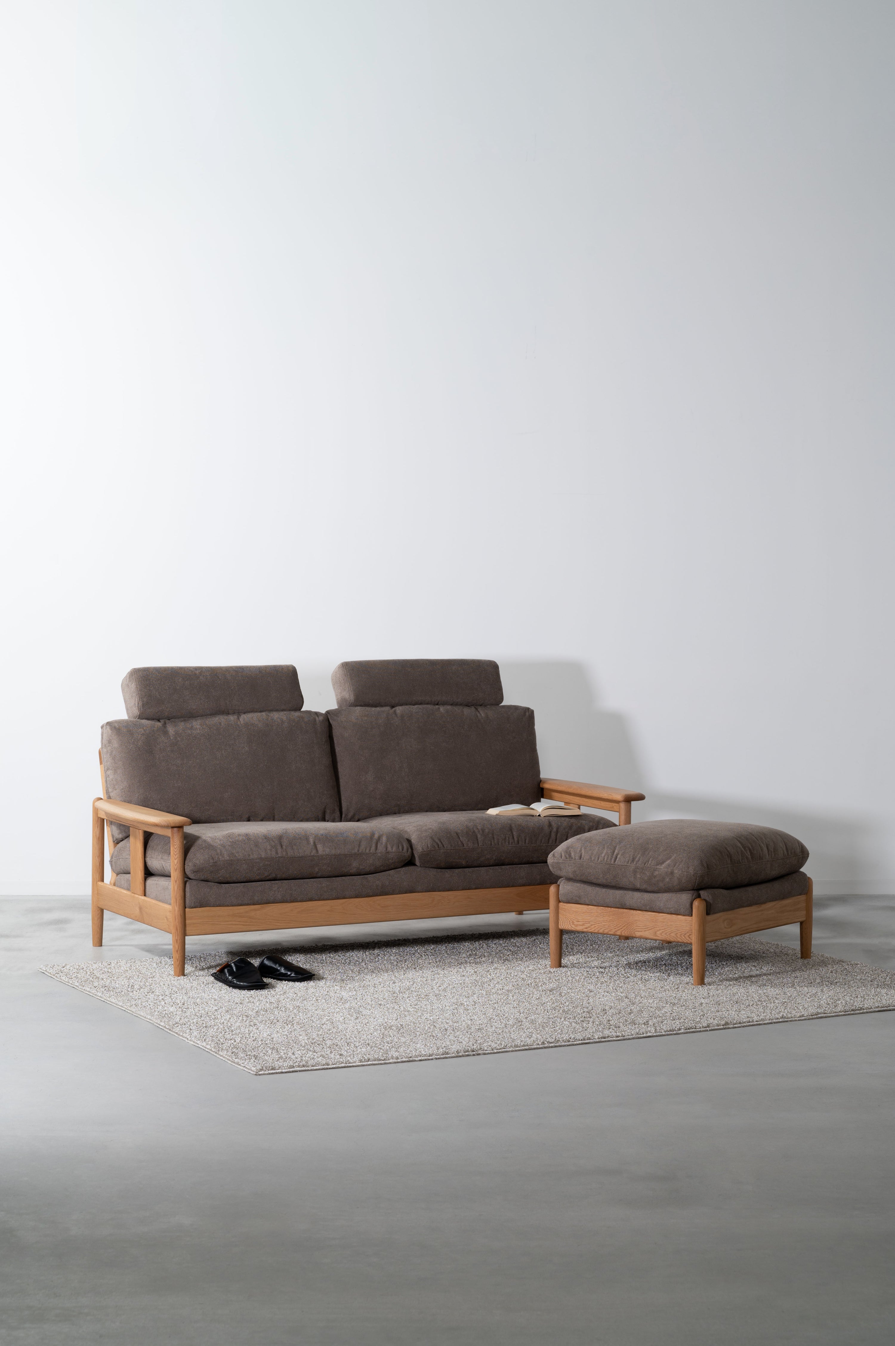 取り外し可能なヘッドレスト付きソファシリーズのオットマンです。ヘッドレストを取り付ければ頭をゆったりと預けられるハイバック仕様になっています。オットマンはソファと繋げてカウチに、単体ではスツールとして使用でき、用途多彩でレイアウトの幅も広がります。