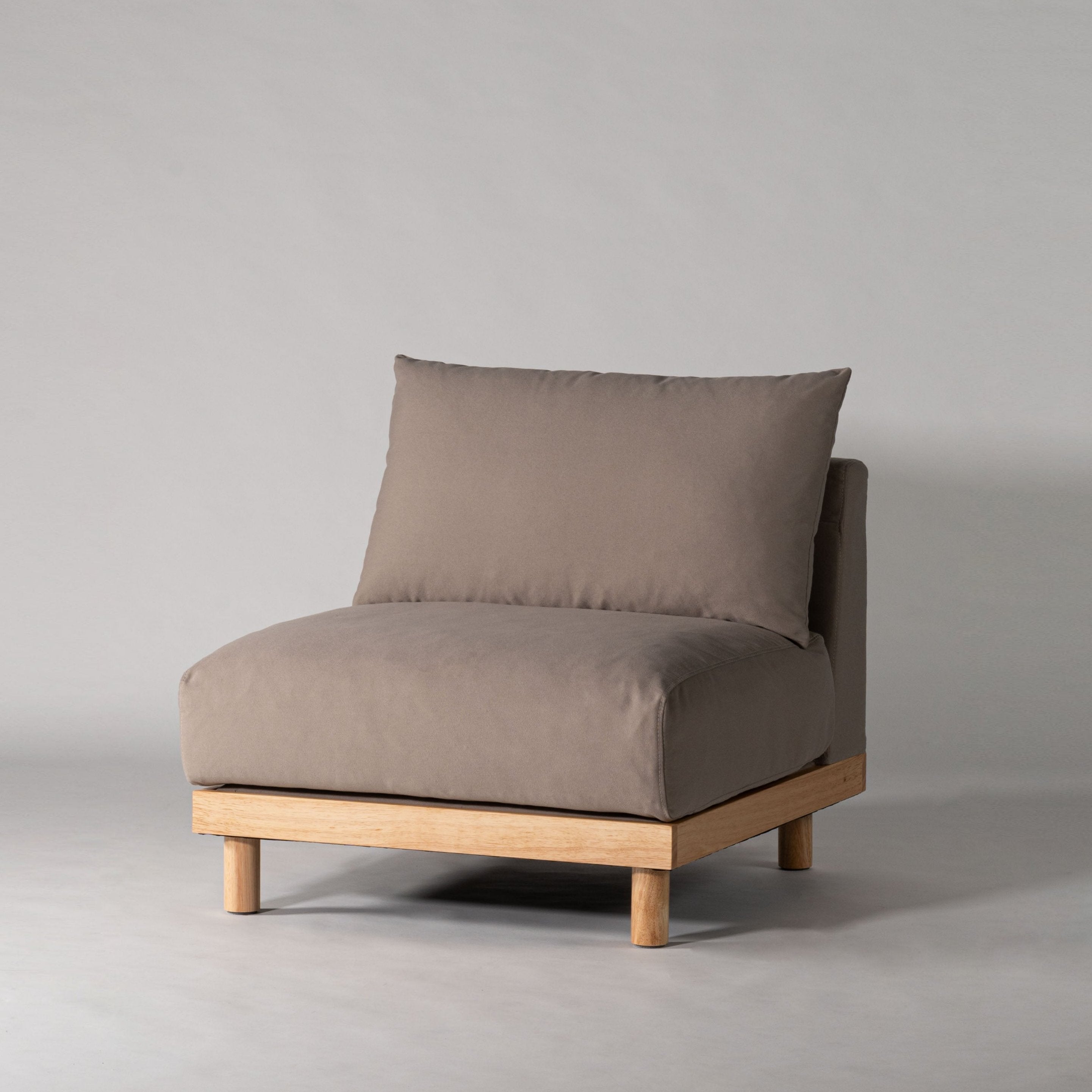 オットマン、一人掛けソファ、二人掛けソファを自由に組み合わせることでさまざまなレイアウトに対応するソファシリーズの一人掛けソファです。アームレスでソファ幅に対して座面を広く取ることができます。お好きな組み合わせをセレクトして生活様式に合ったレイアウトを楽しめます。