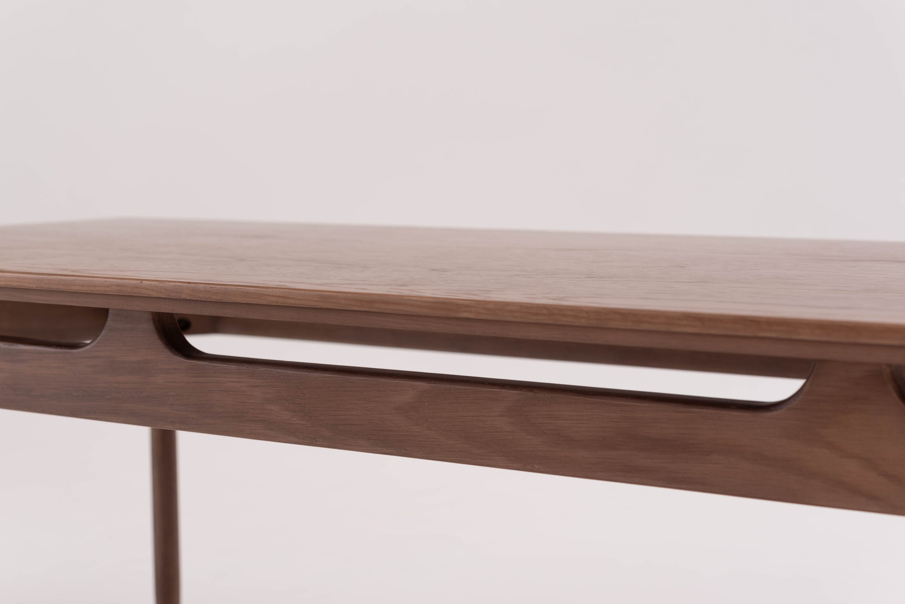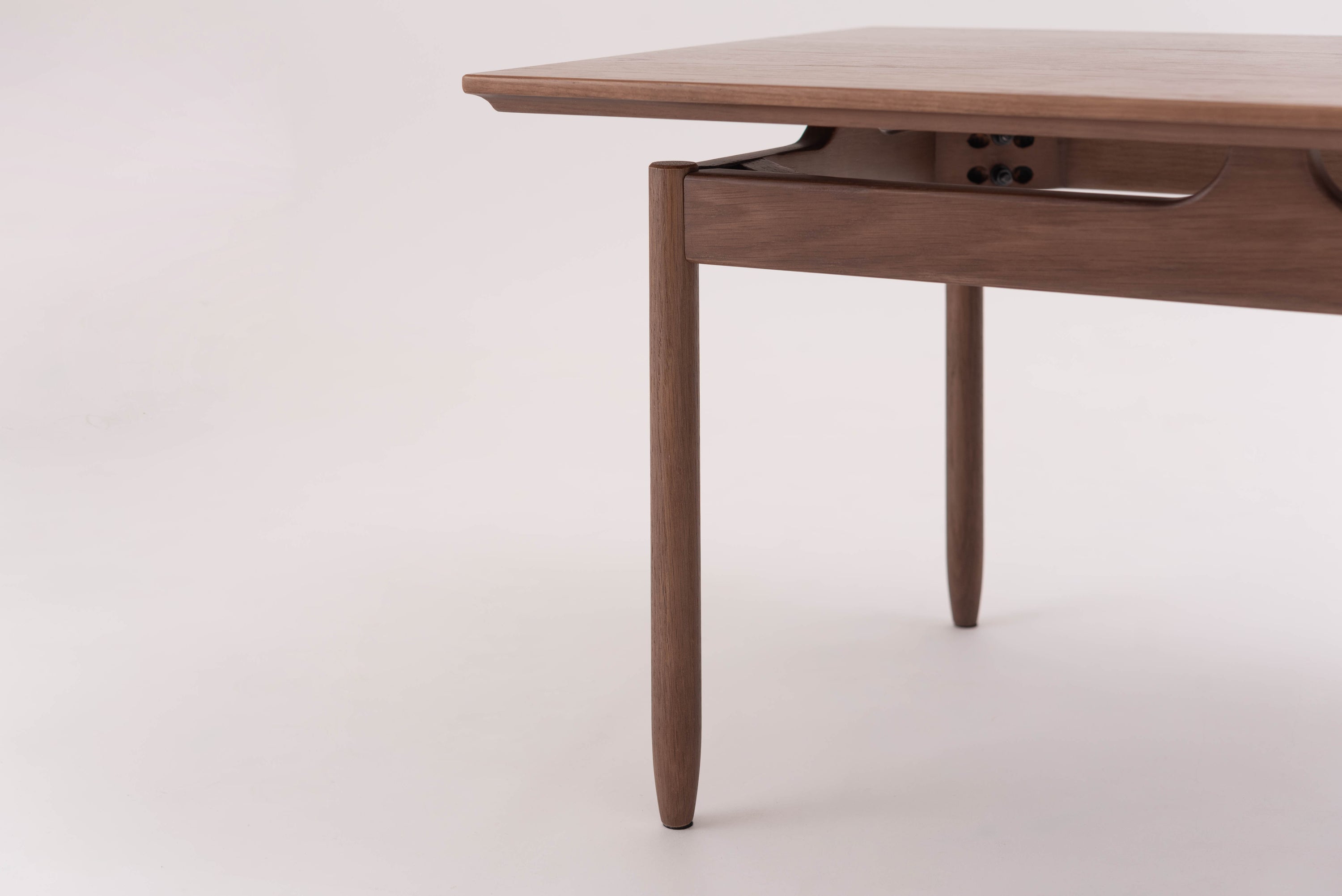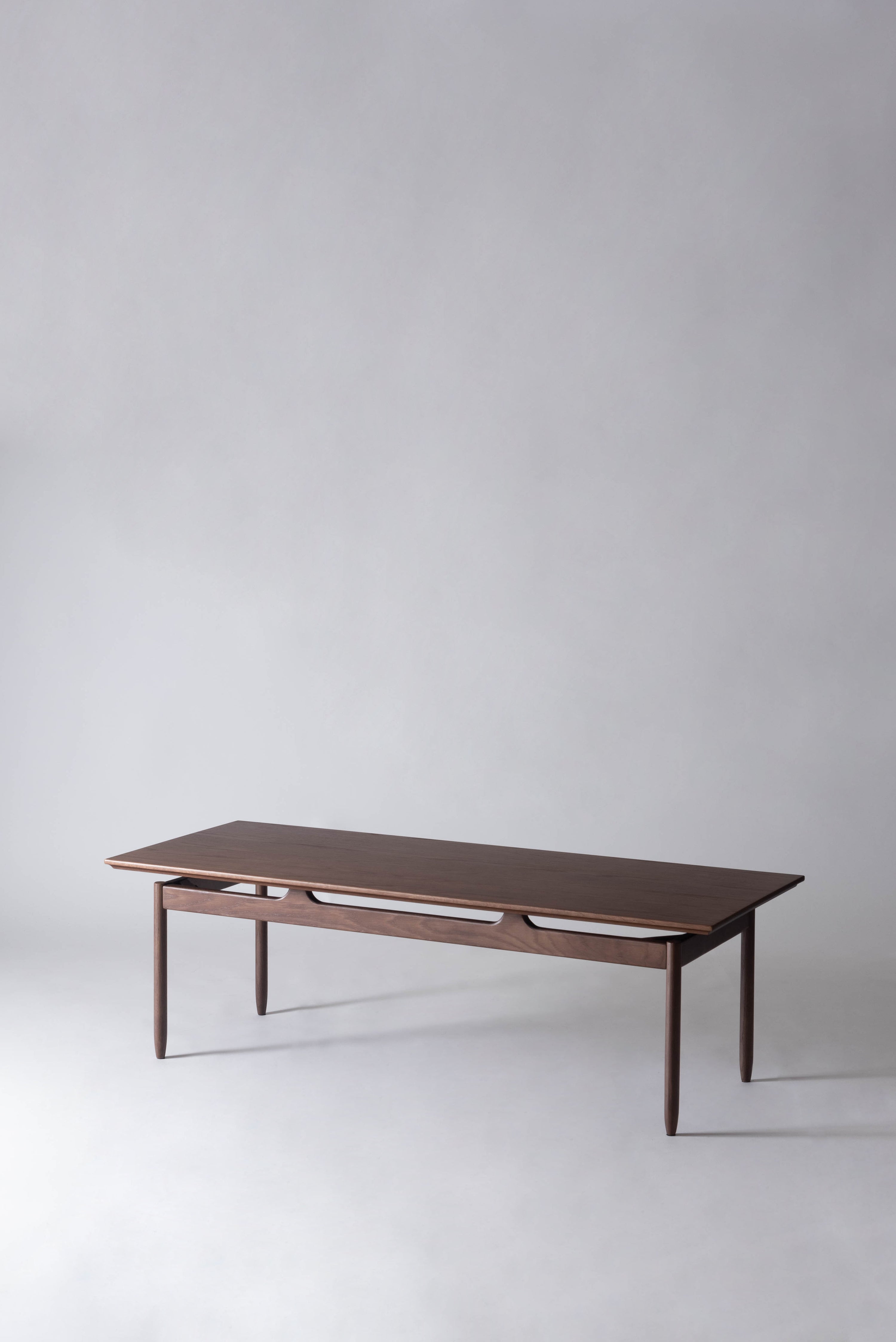 天板を浮いているように見せる特徴的な幕板デザインのリビングテーブルです。極限まで補足したレッグと、四辺にRを取った船底型の天板が、シンプルながらに拘りを感じさせる仕上がりです。 重厚感のあるオーク材を使用し、幅広で使用できる長方形と、カウチソファーにも合わせやすい正方形の2サイズを展開しています。
