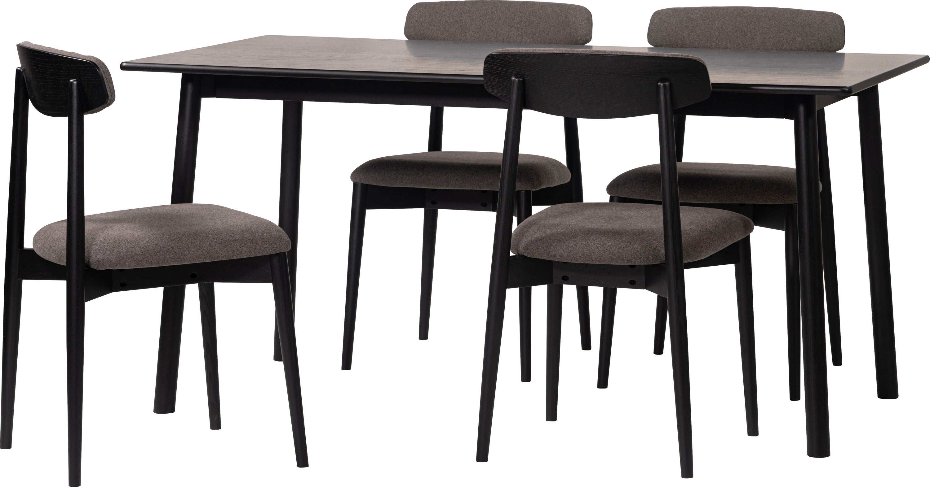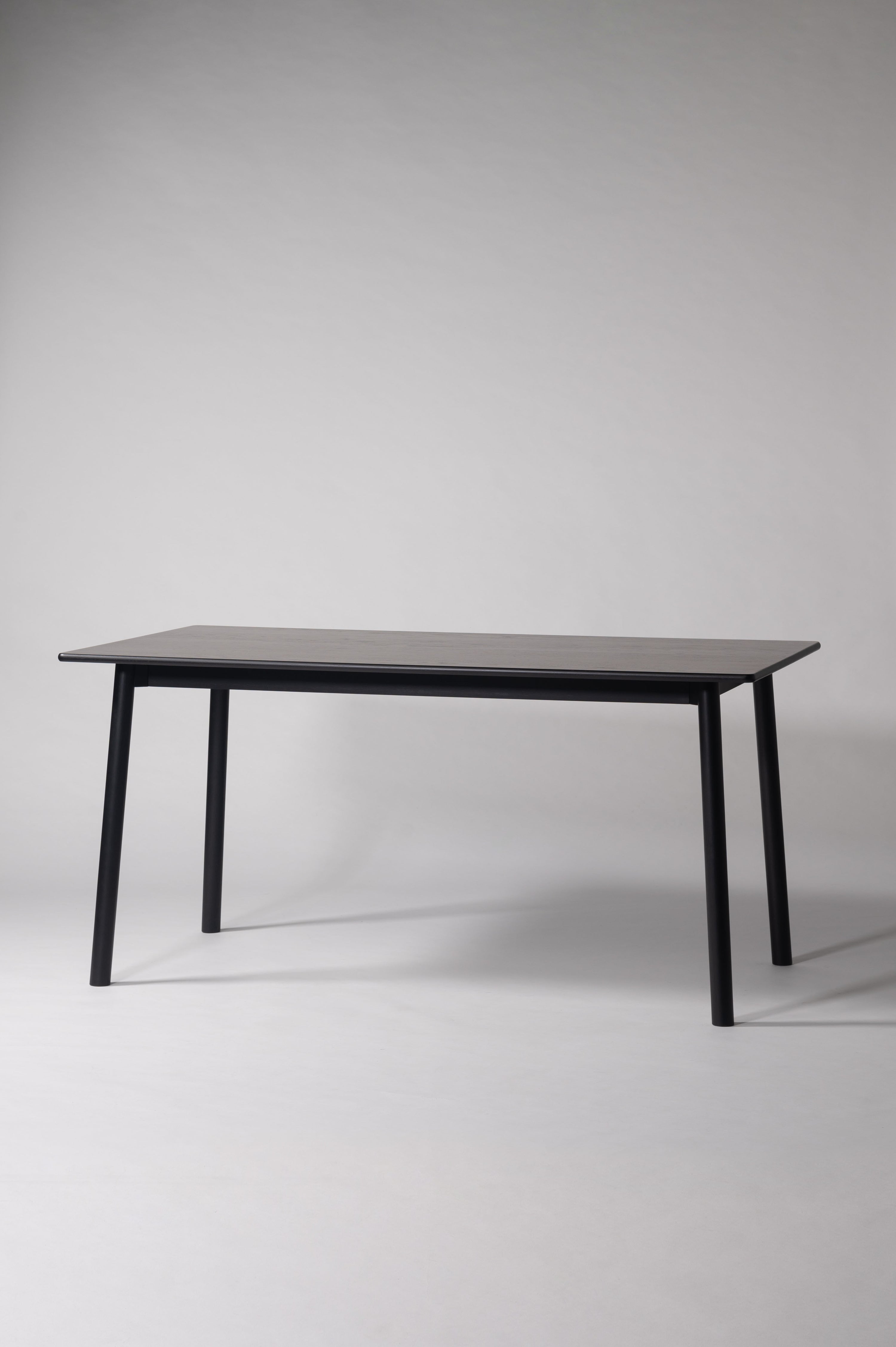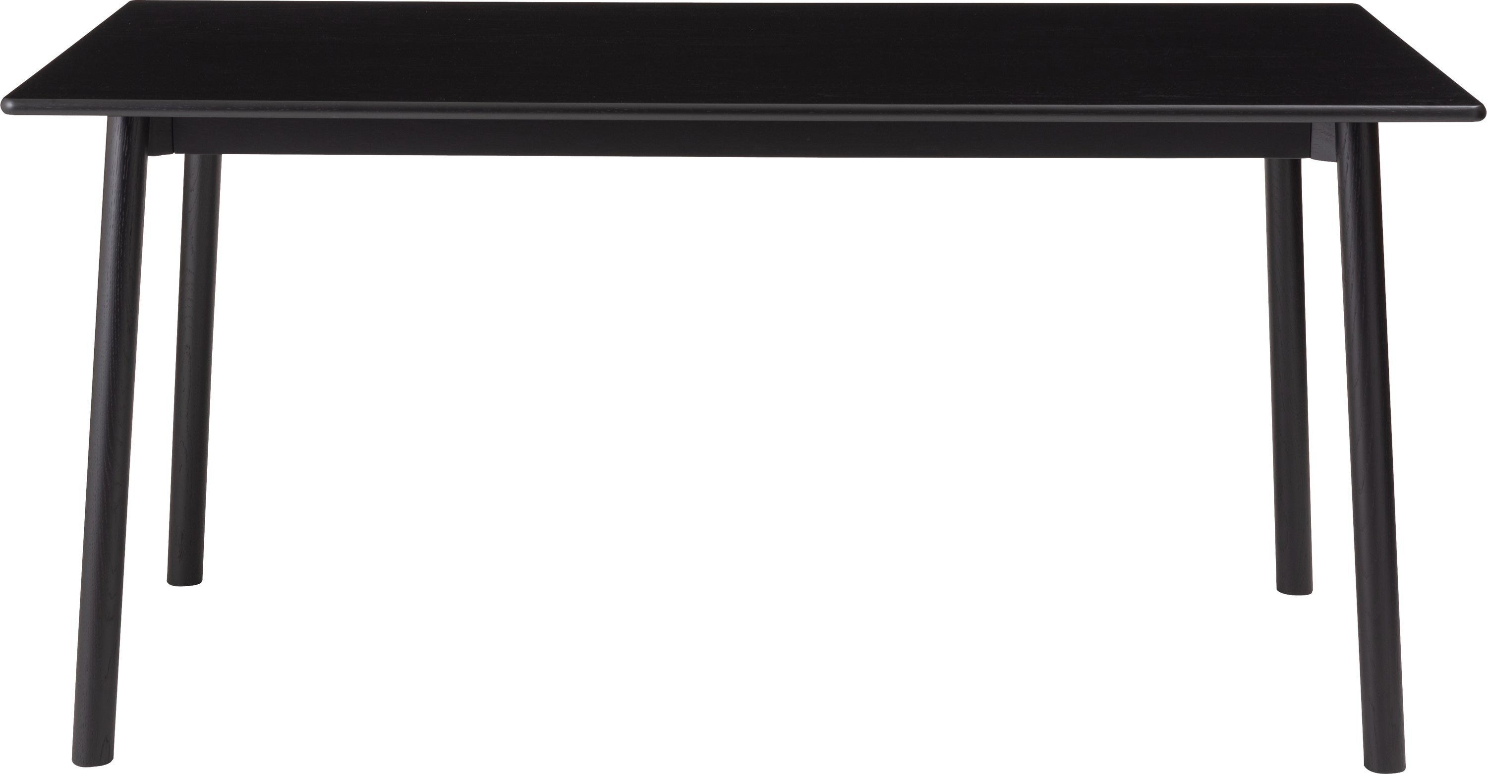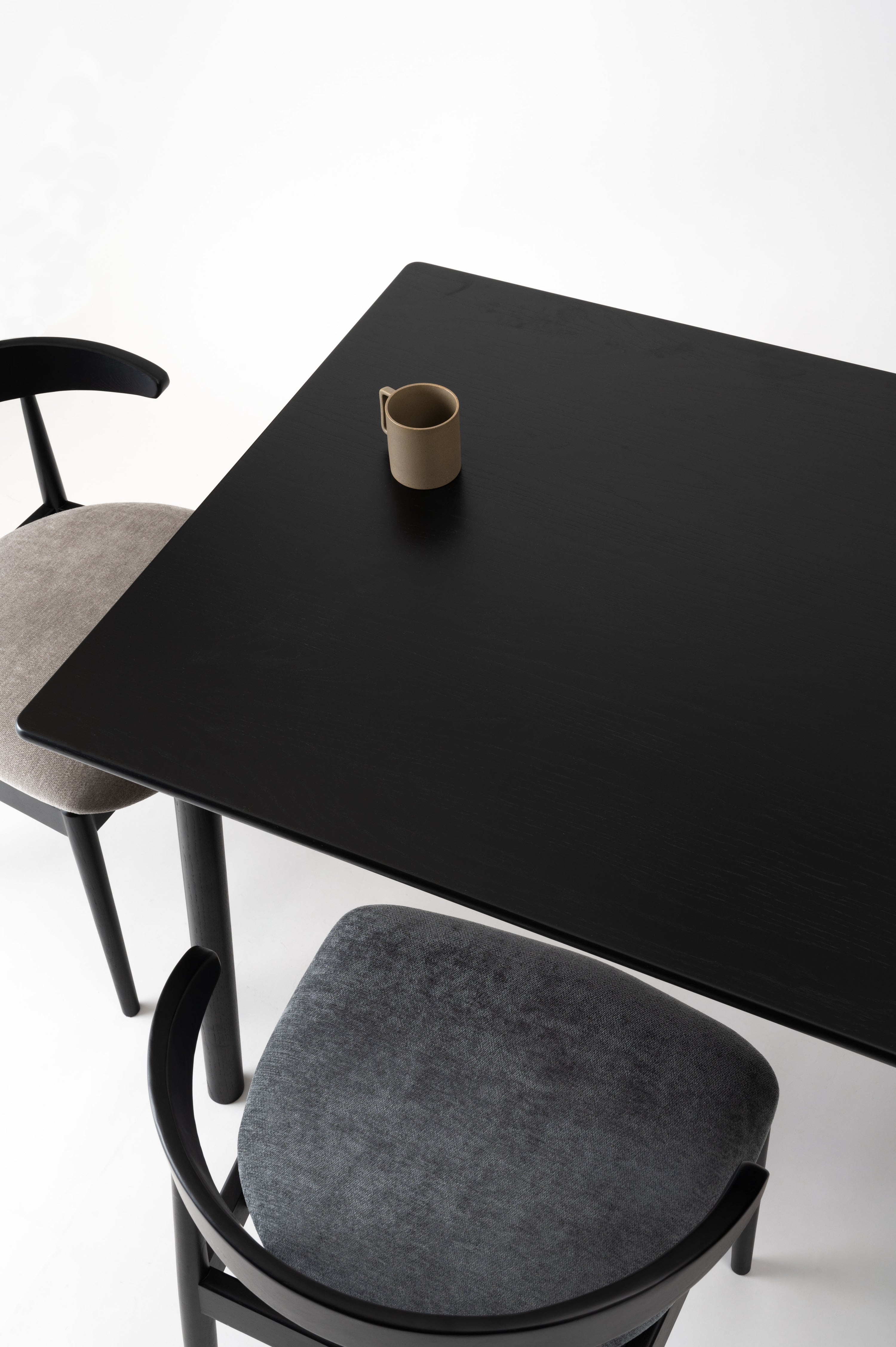 全体的に角をなくし、丸みを帯びたフォルムのダイニングテーブルです。幕板を少し内側に設置し、脚を外側に出すことで、すっきりとした印象と脚間を広く確保できるデザインになっています。少し角をつけて八の字に設計された脚は、垂直脚と比べ、ぐらつきを抑え安定した使い心地を実感することができます。