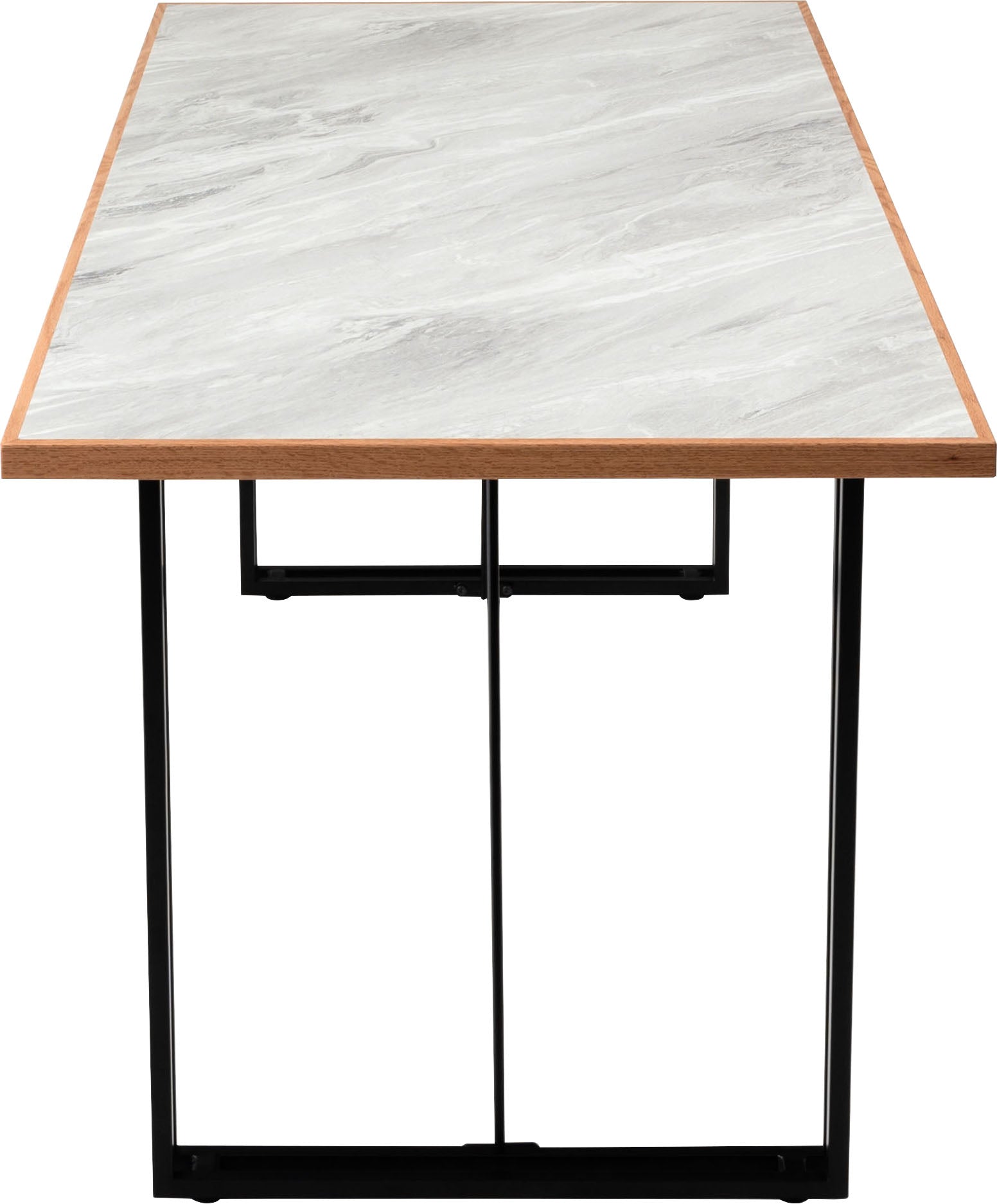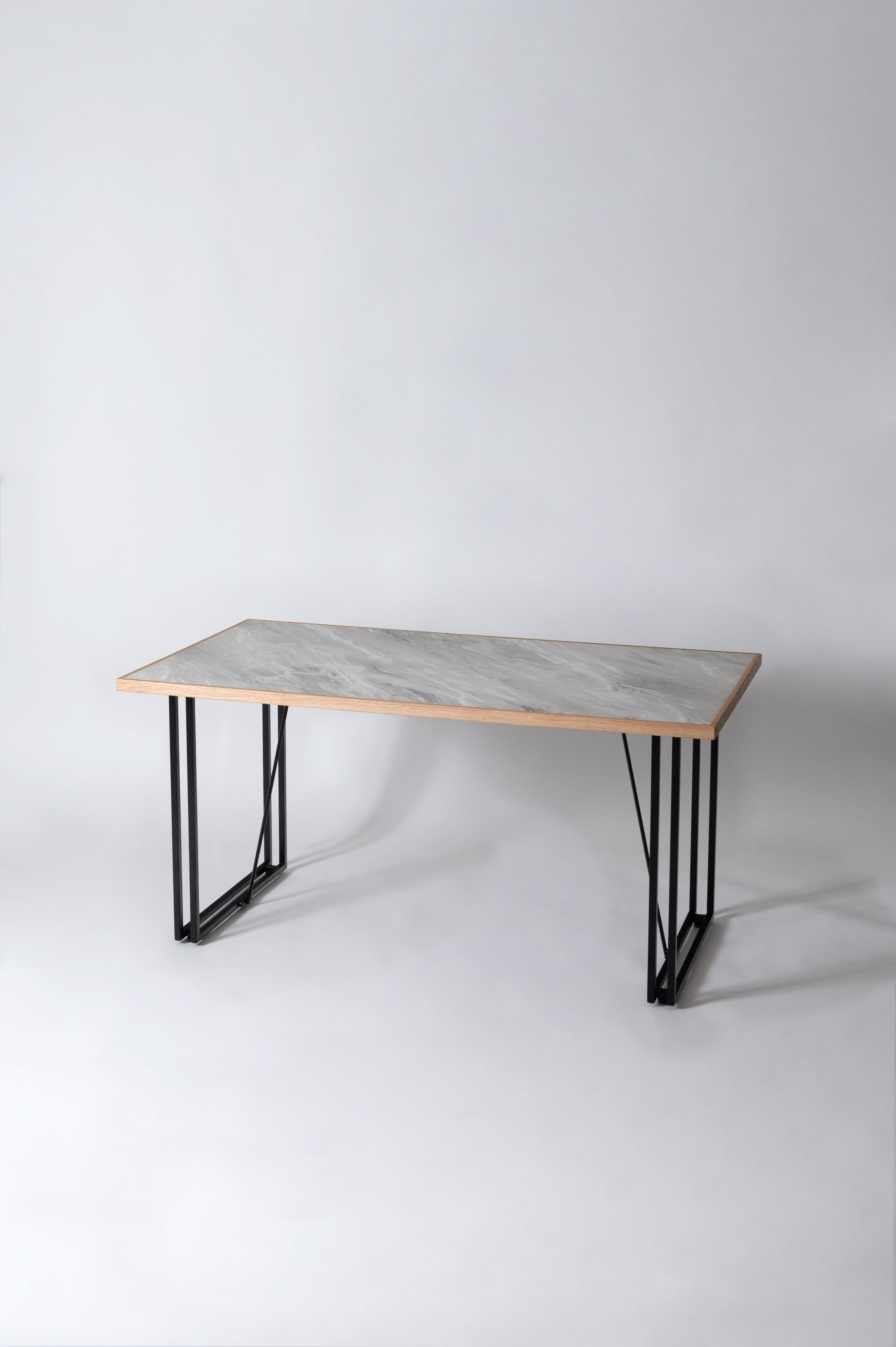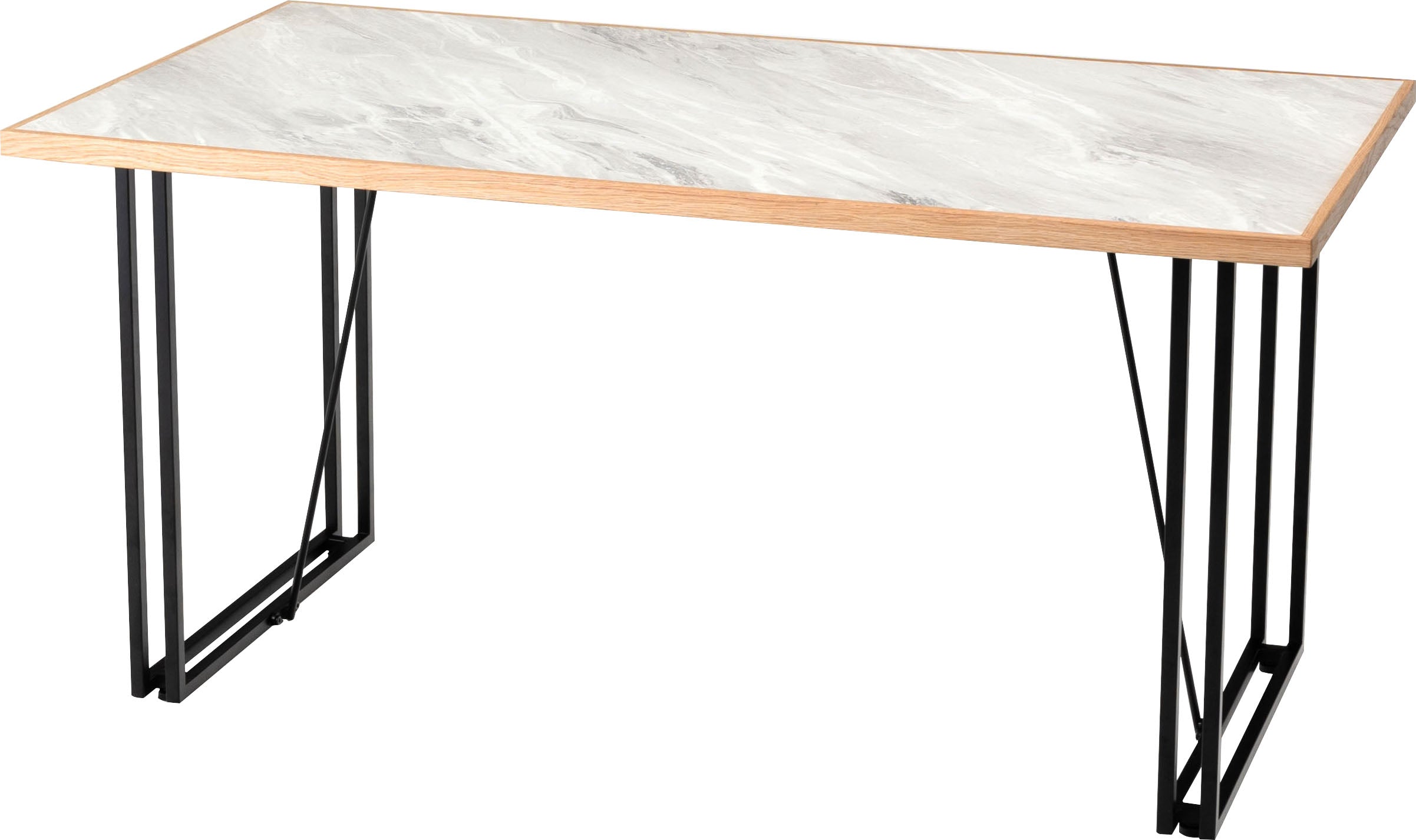 石目調のデザインを施した、シンプルでモダンな雰囲気の天板です。素材には、傷や汚れに強いメラミン化粧繊維板を採用しています。更に、オーク材で周りを縁取る事で、デザイン性が高まりスタイリッシュな雰囲気を演出しています。別売りの商品脚と合わせてカスタマイズをお楽しみください。