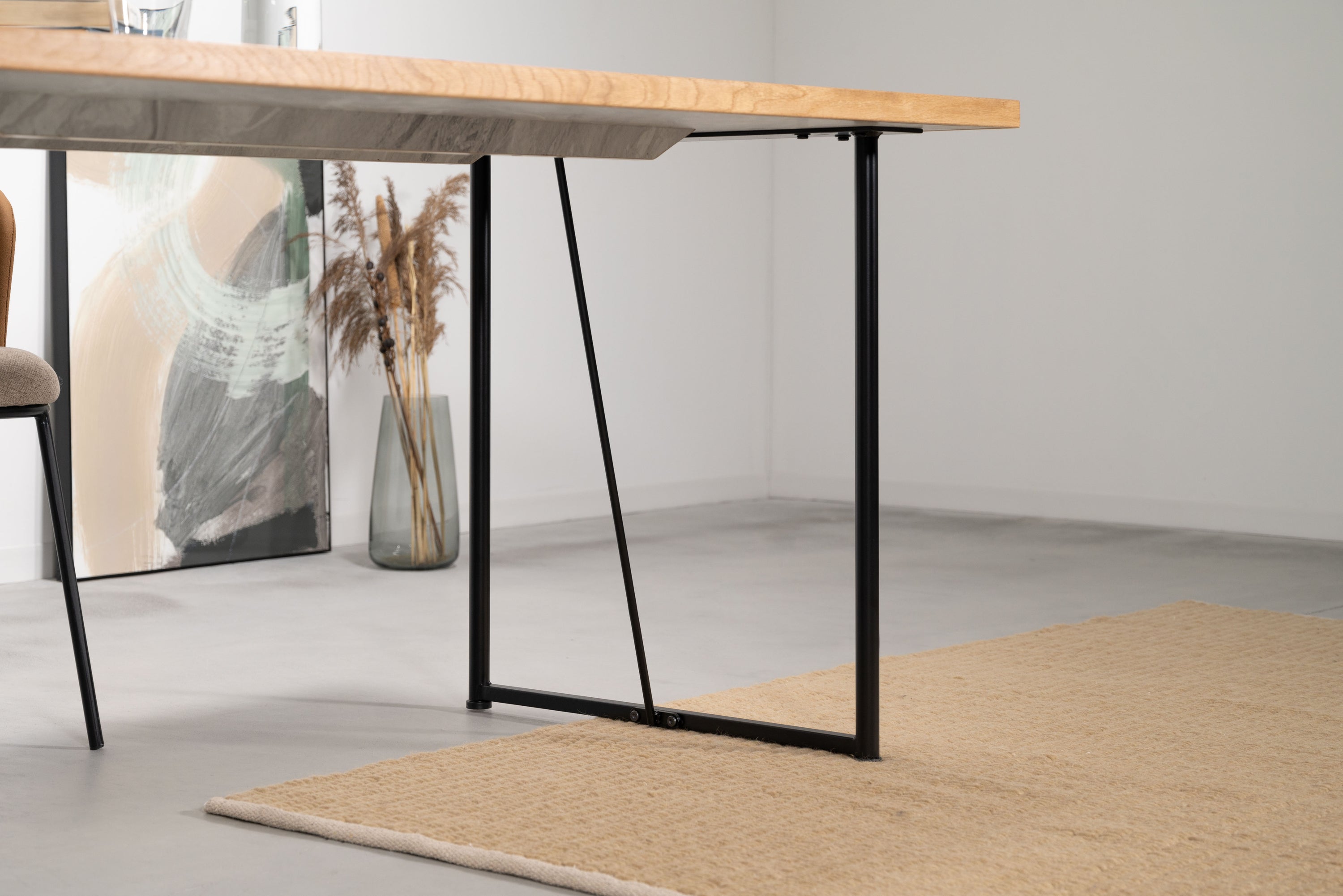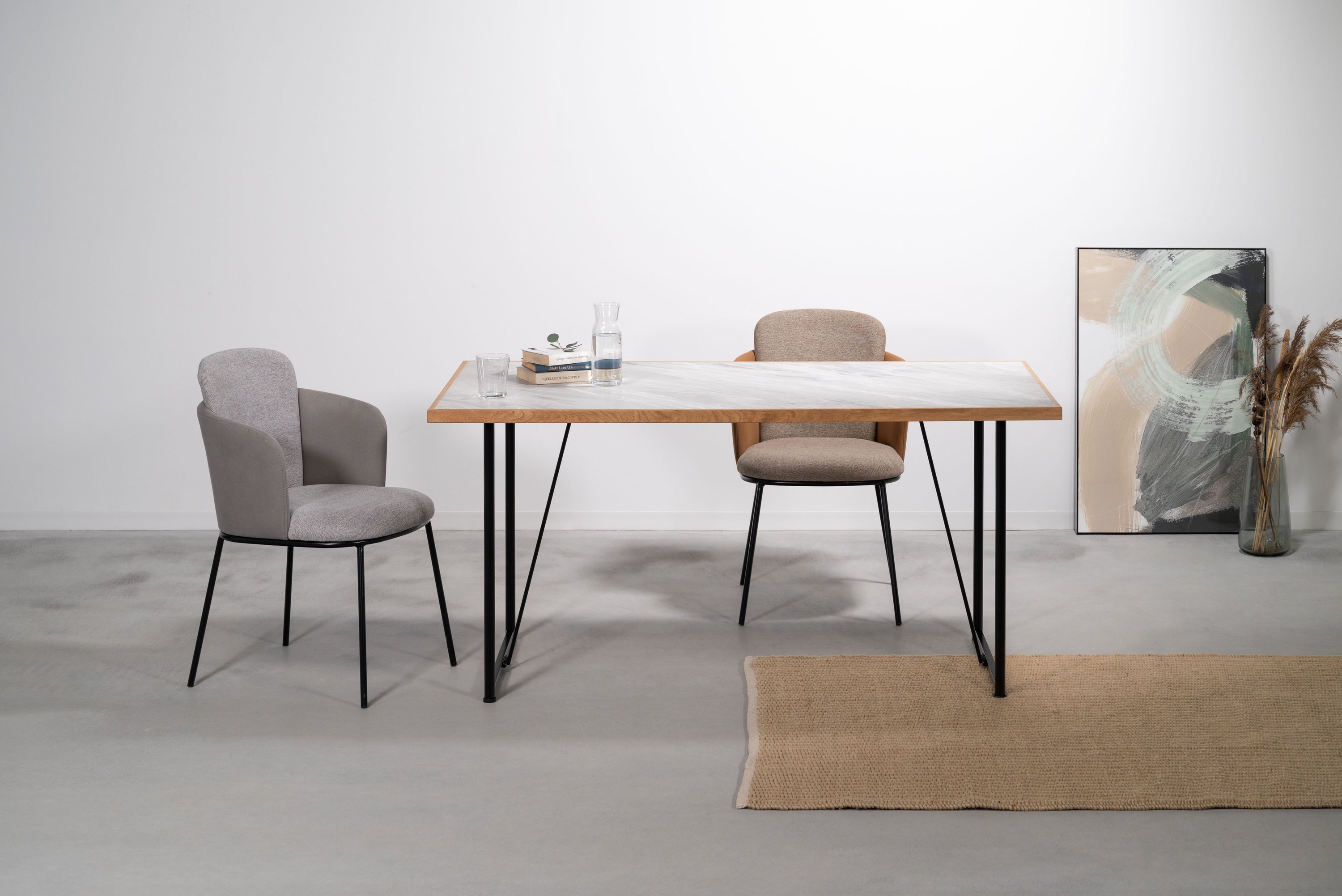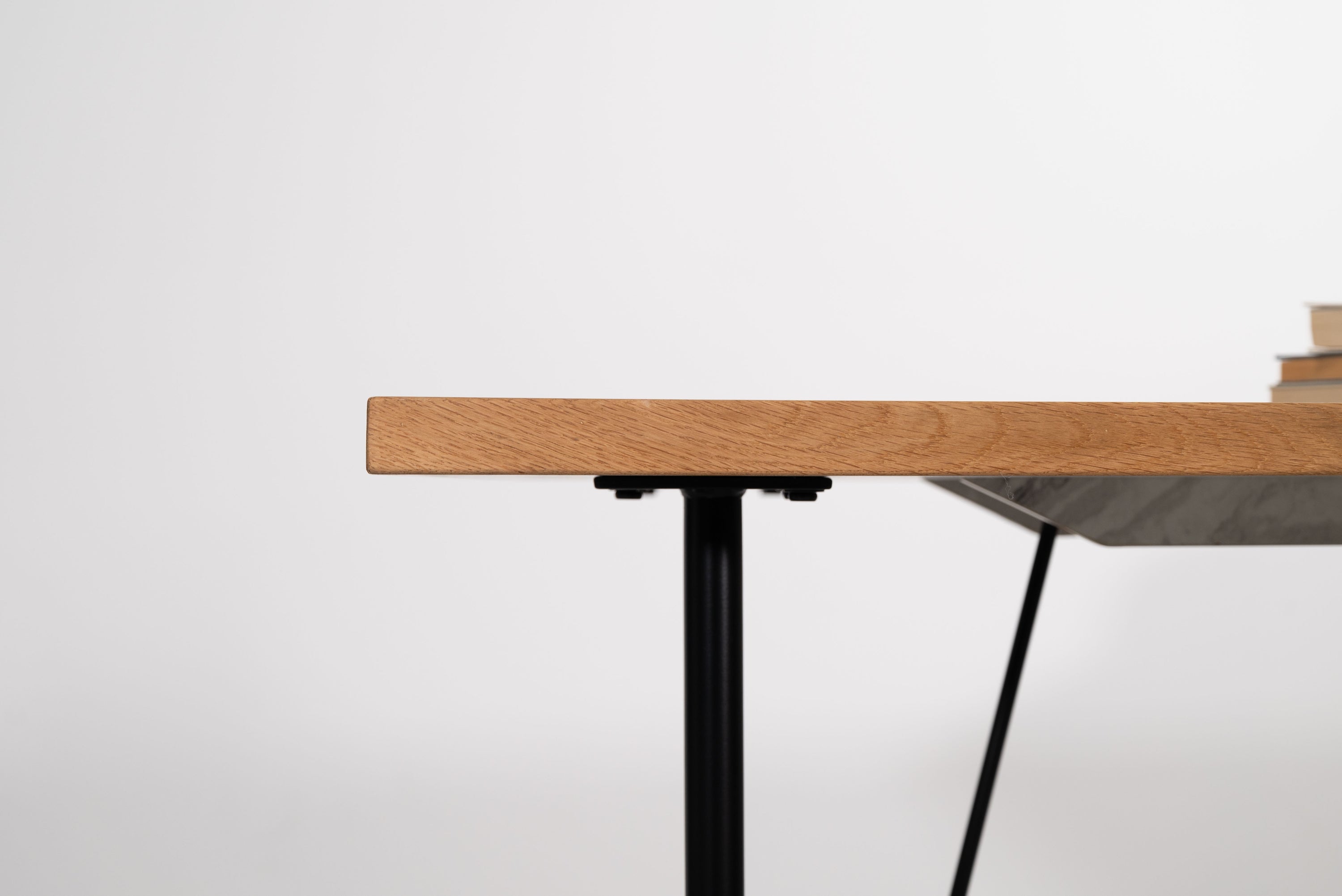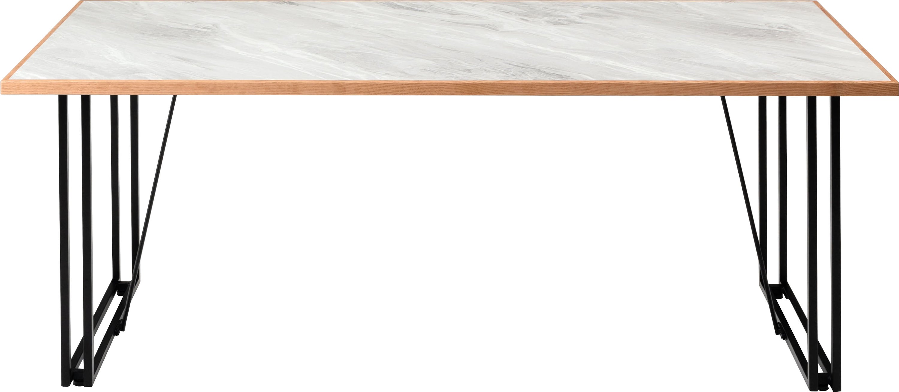 石目調のデザインを施した、シンプルでモダンな雰囲気の天板です。素材には、傷や汚れに強いメラミン化粧繊維板を採用しています。更に、オーク材で周りを縁取る事で、デザイン性が高まりスタイリッシュな雰囲気を演出しています。別売りの商品脚と合わせてカスタマイズをお楽しみください。