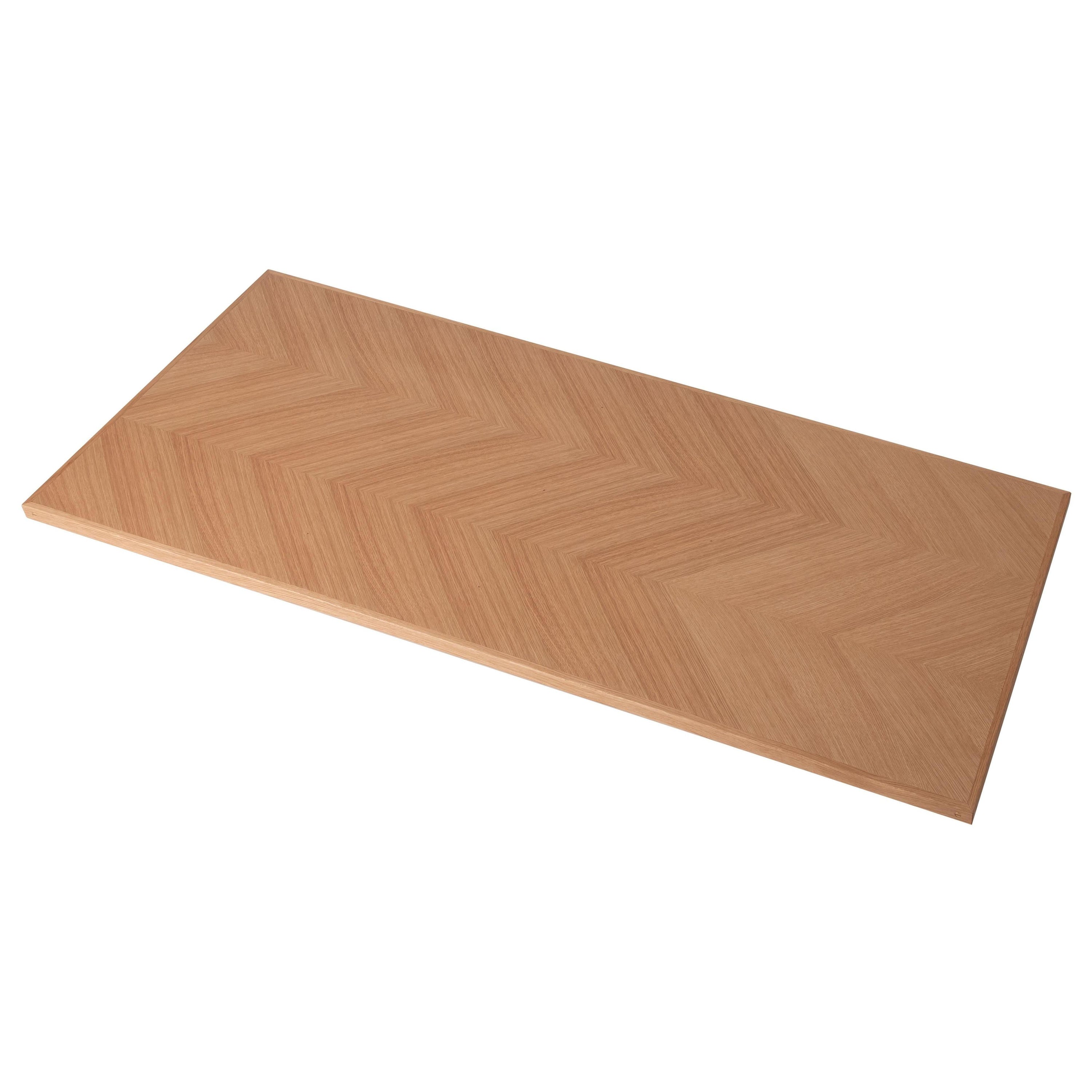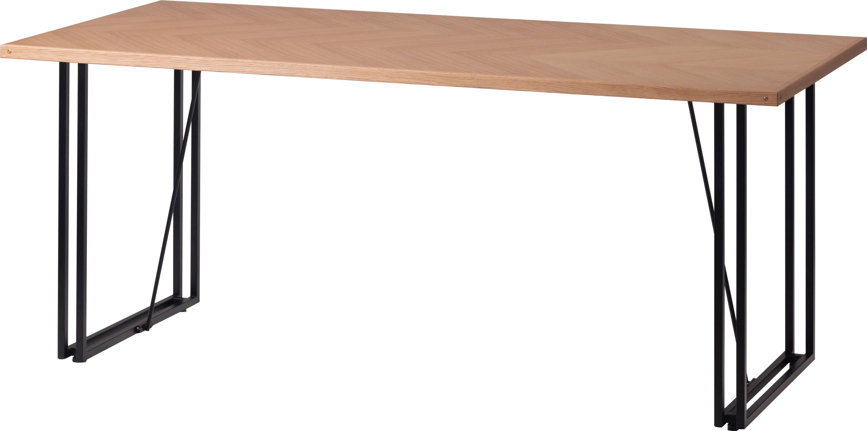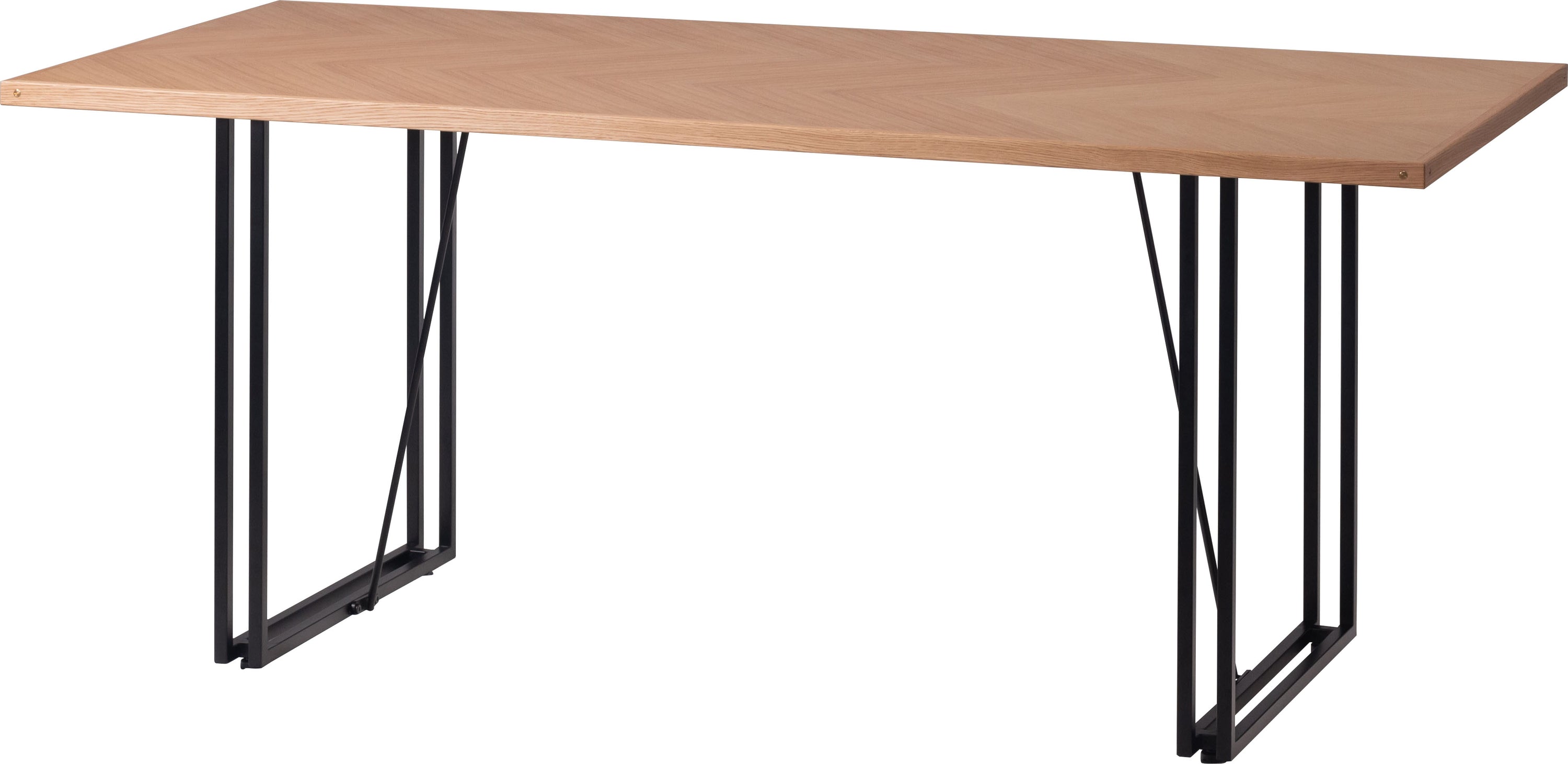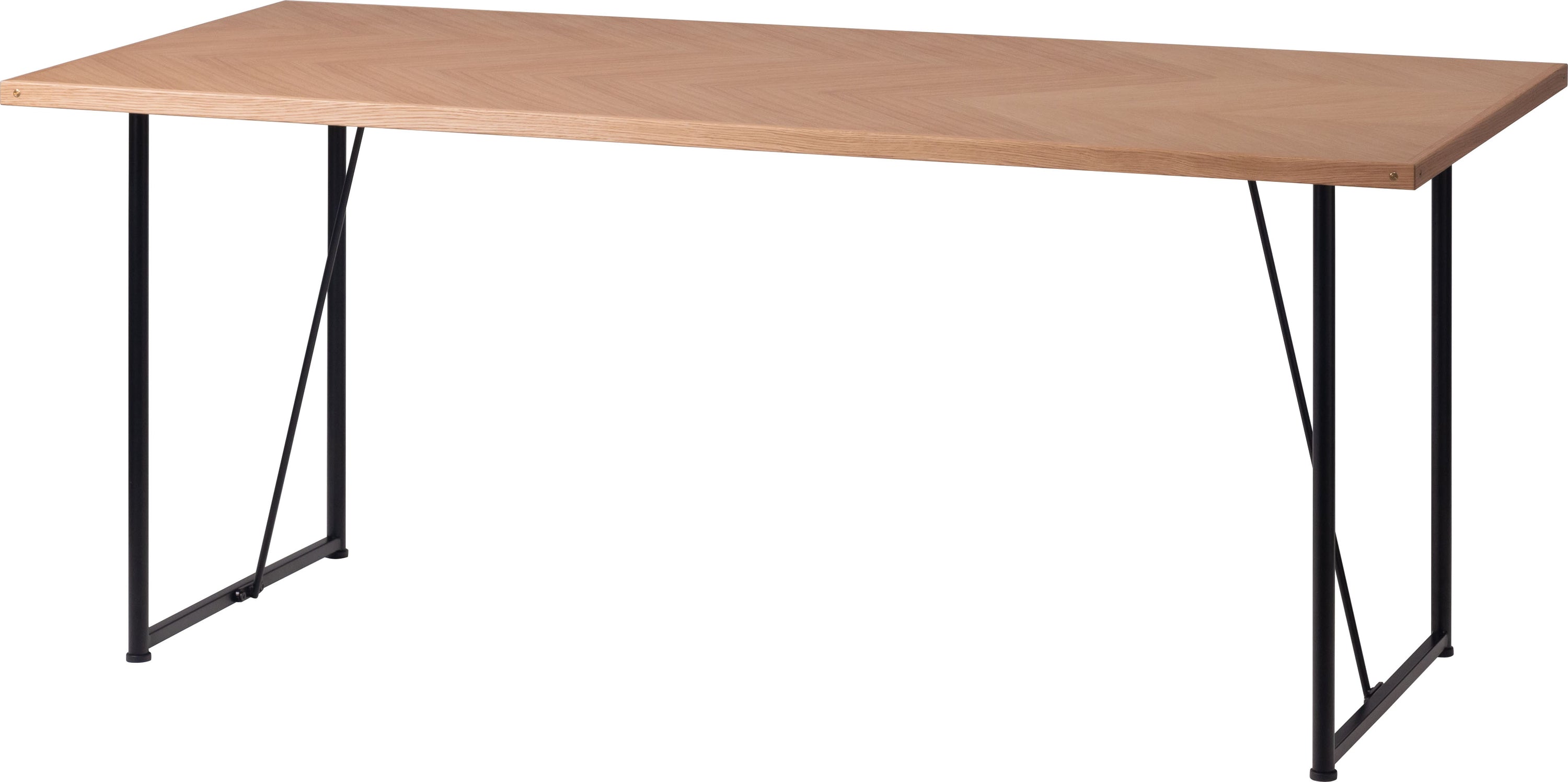 木目の向きを変えて貼り合わせた矢張りデザインが特徴できなテーブル天板です。側面に施した真鍮がアクセントになっています。さまざまなテイストに合わせやすいナチュラルとブラウンの2色展開です。別売りの脚と組み合わせてカスタマイズできます。