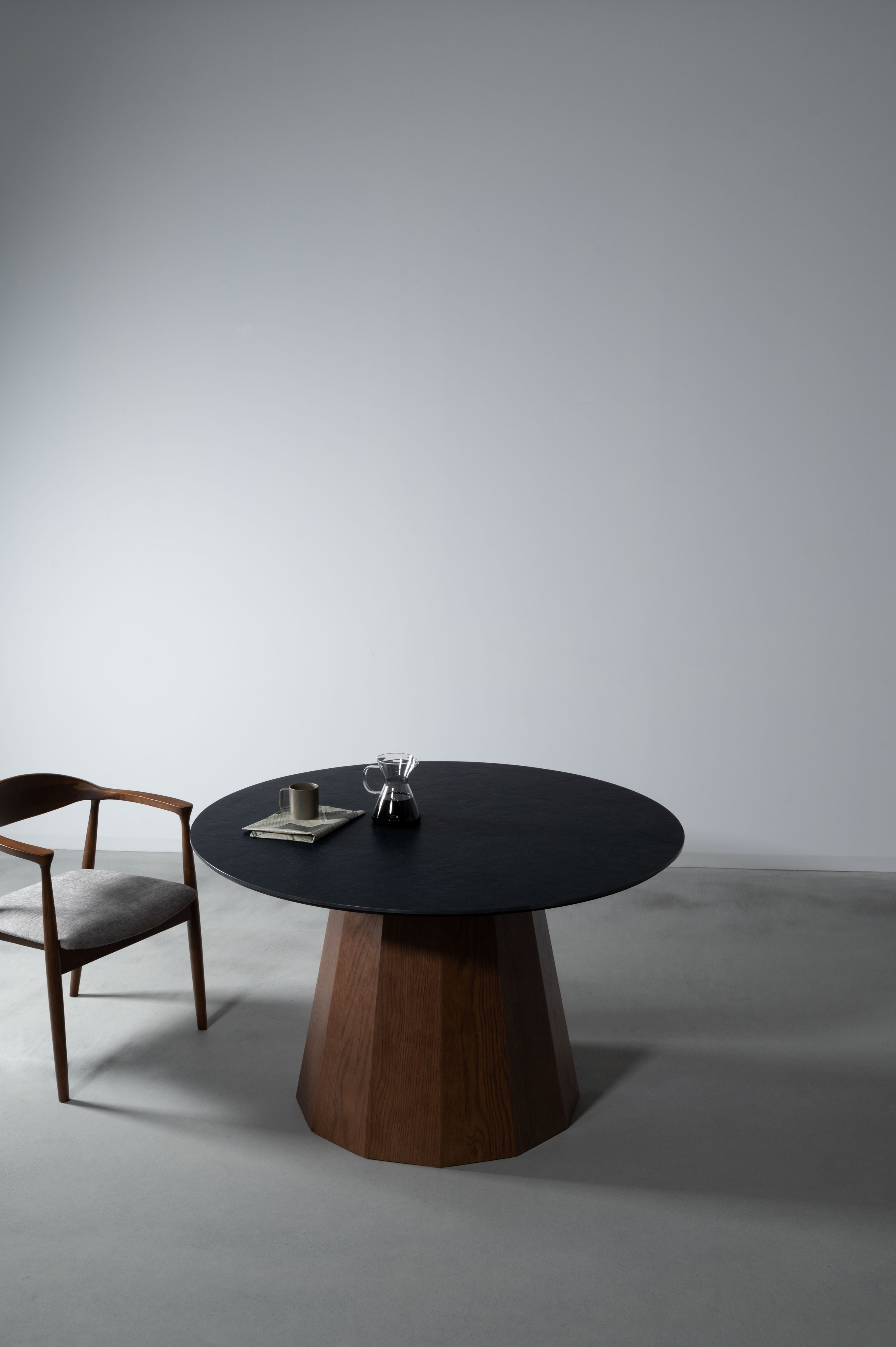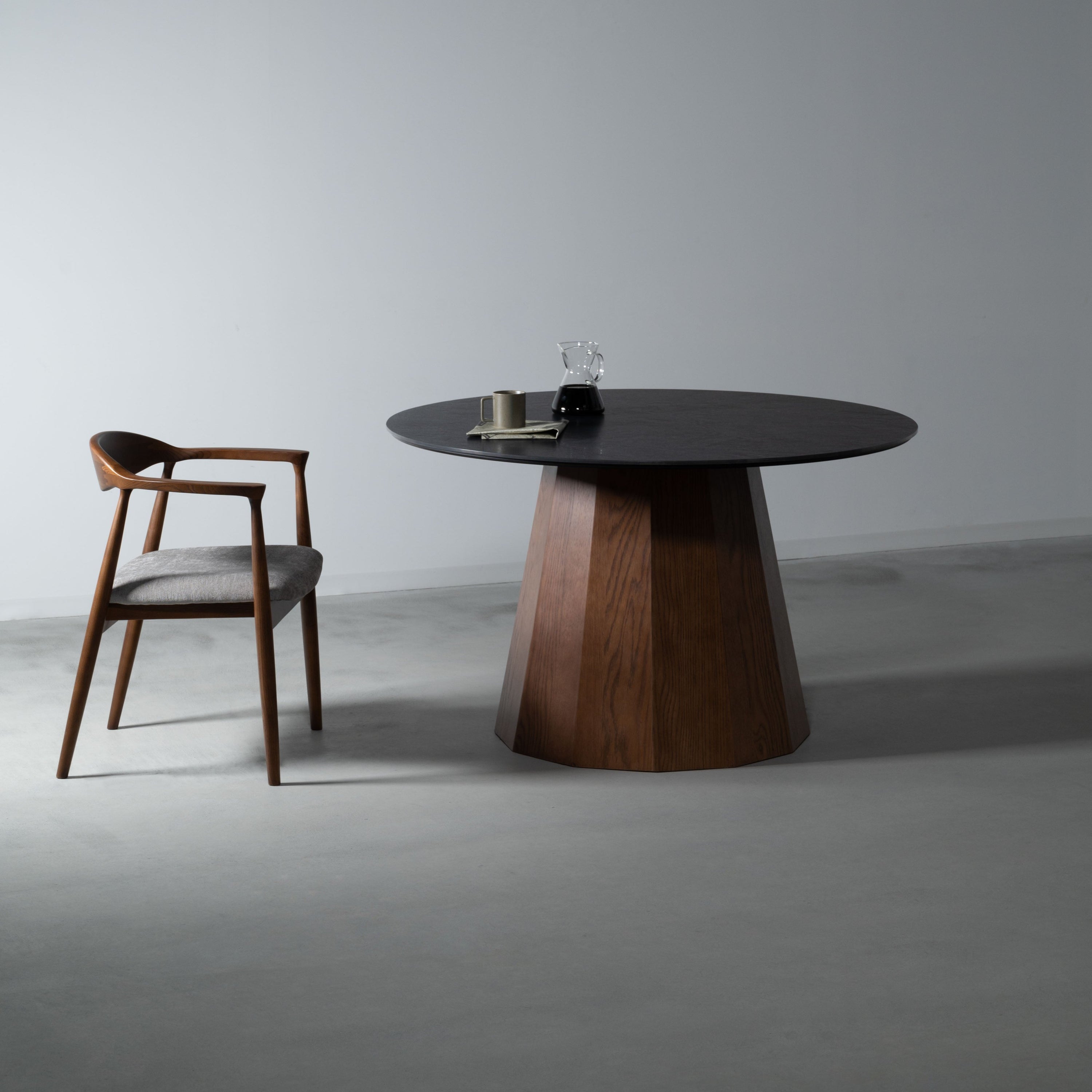 重厚感のあるブラックストーン調とホワイトの優雅な大理石調のセラミック天板を使用したダイニングテーブルです。脚位置に左右されない中央脚のデザインは、椅子を6脚配置しても快適にご使用できます。傷に強く耐熱防水の機能が日常のお手入れを楽にしてくれます。