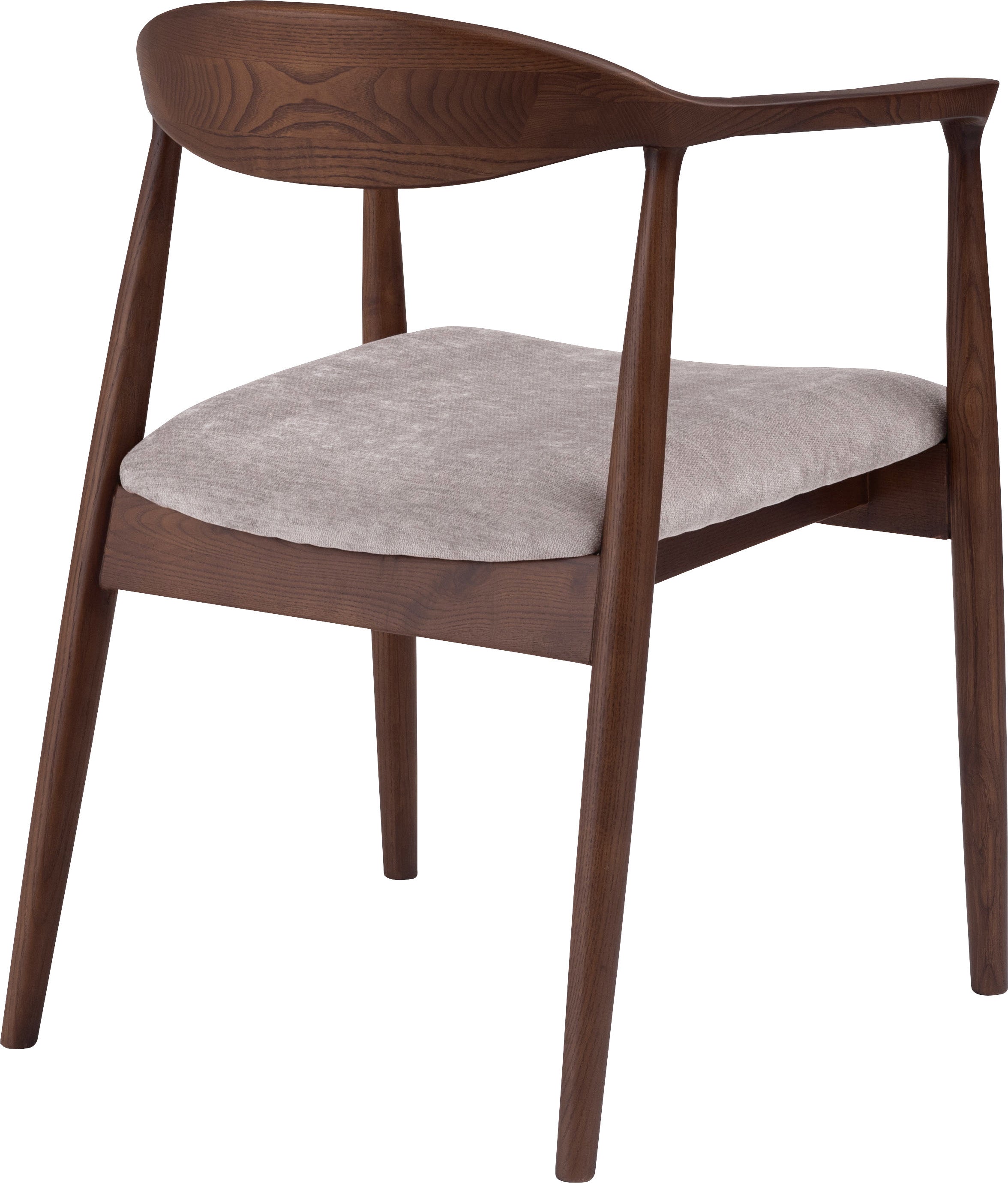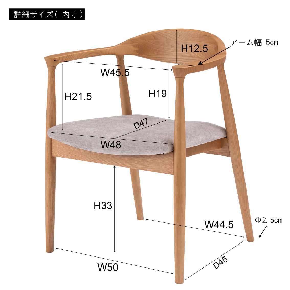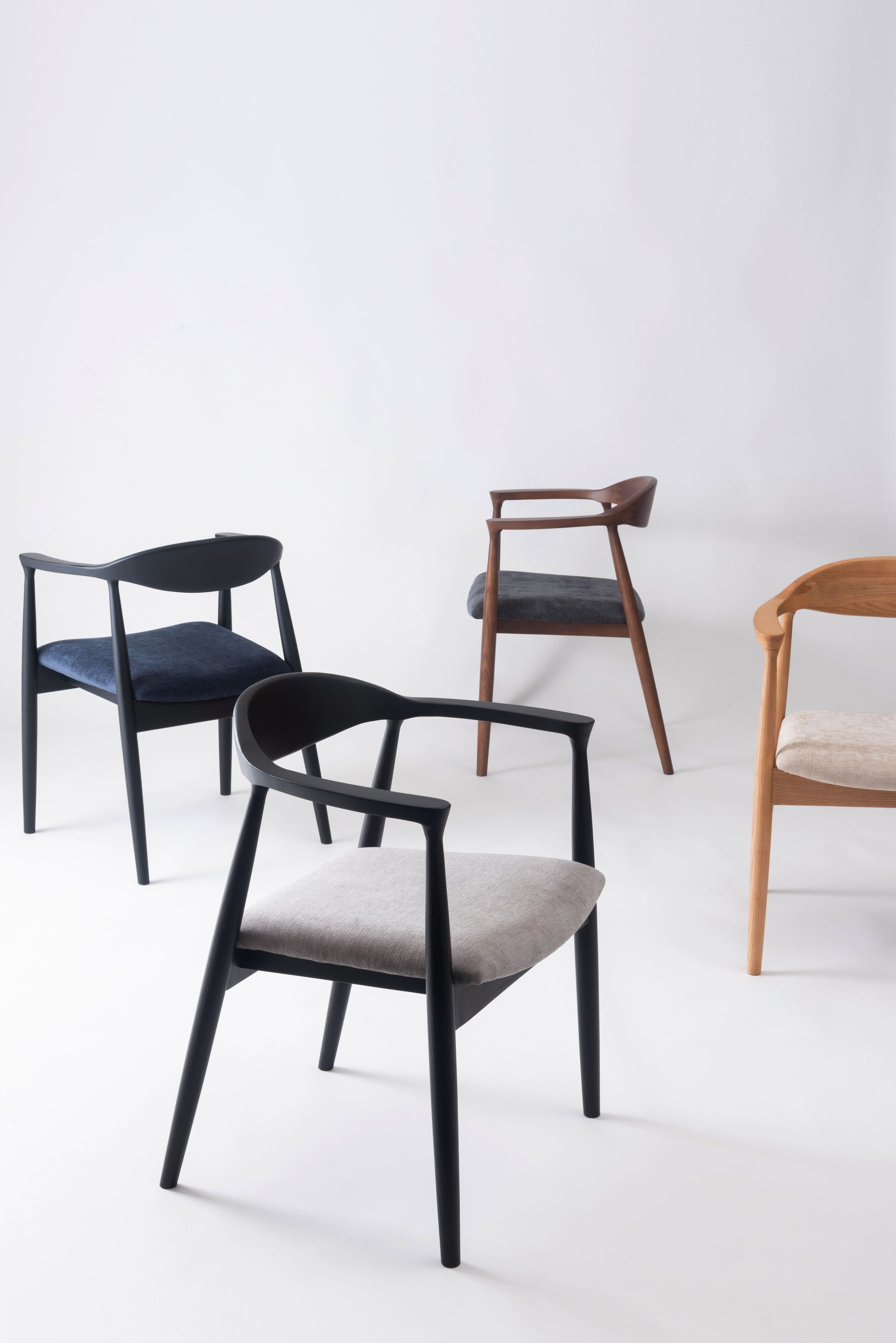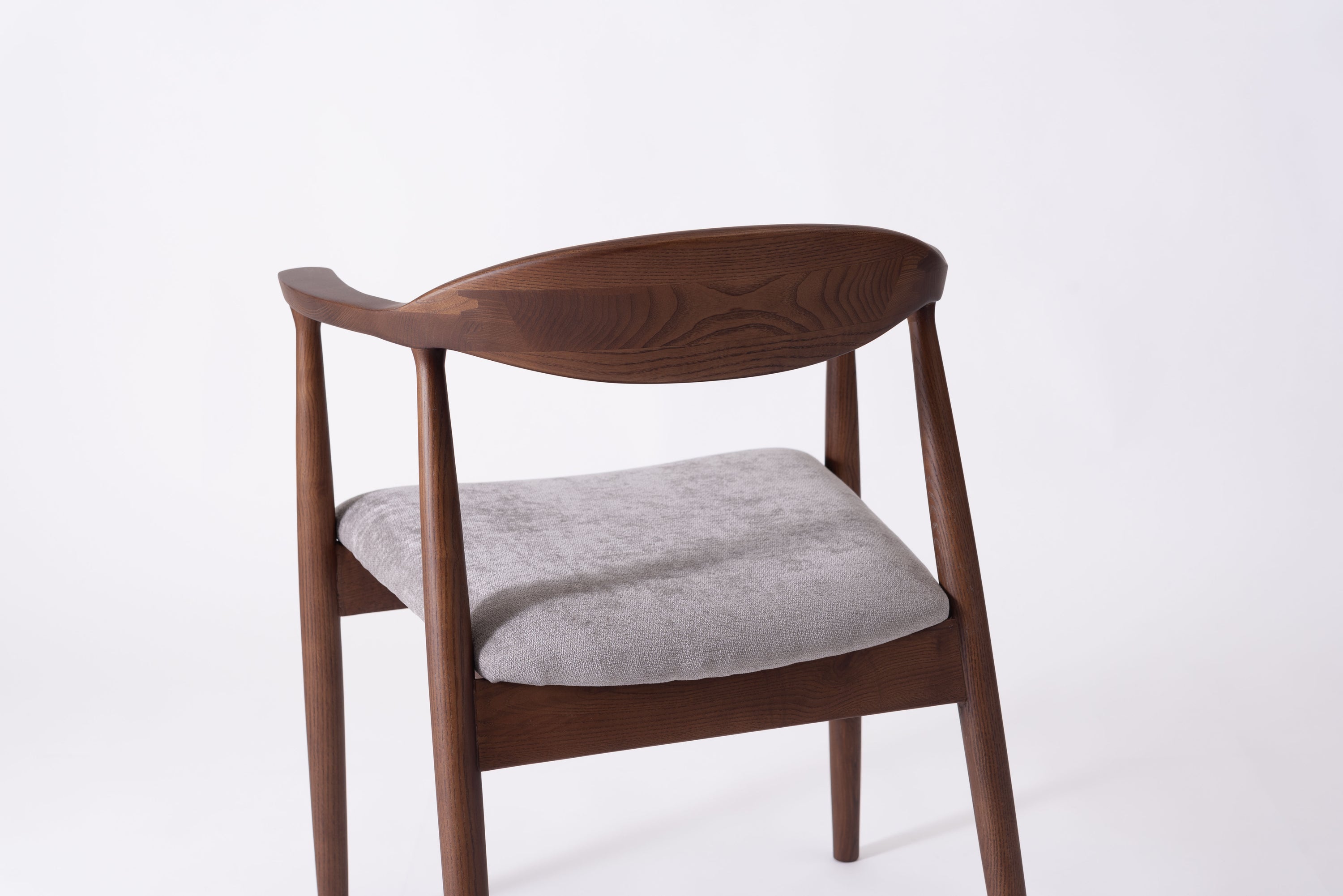 背面とアームが美しいアーチを描き、丸みを帯びたフォルムが特徴のチェアです。天然木のあたたかみとファブリックのディテールが相まって、優しい印象を与えてくれます。座面は混色生地で絶妙な色合いが唯一無二でダイニングテーブルと合わせても、一脚でお部屋のアクセントにしても、その存在感を感じられます。