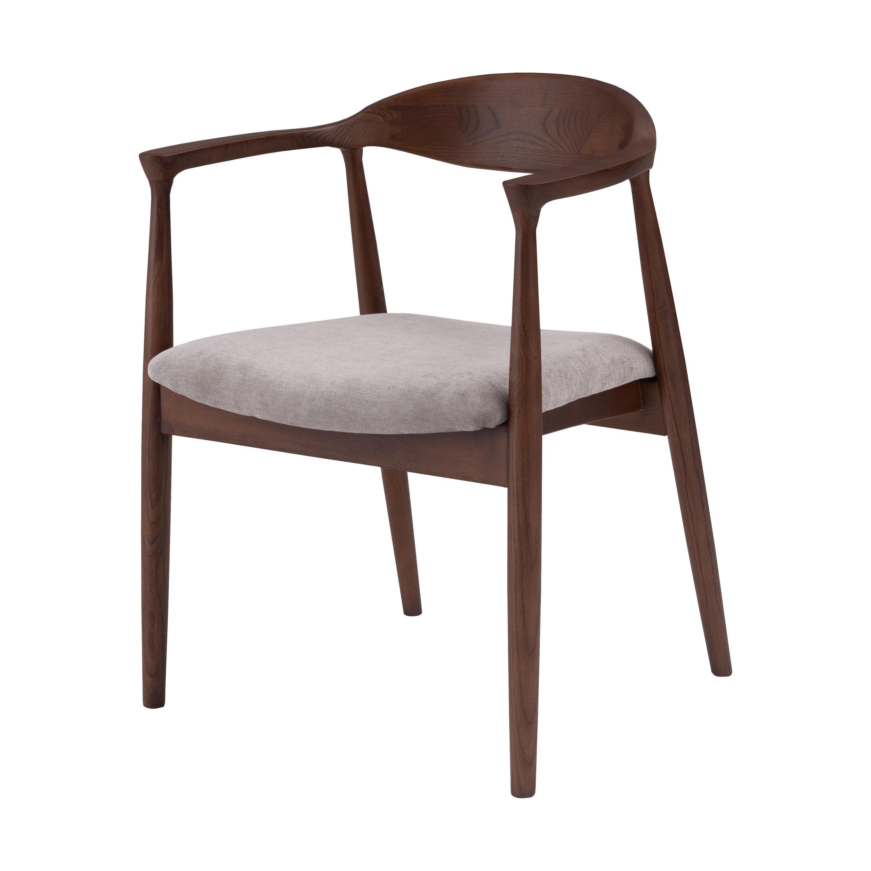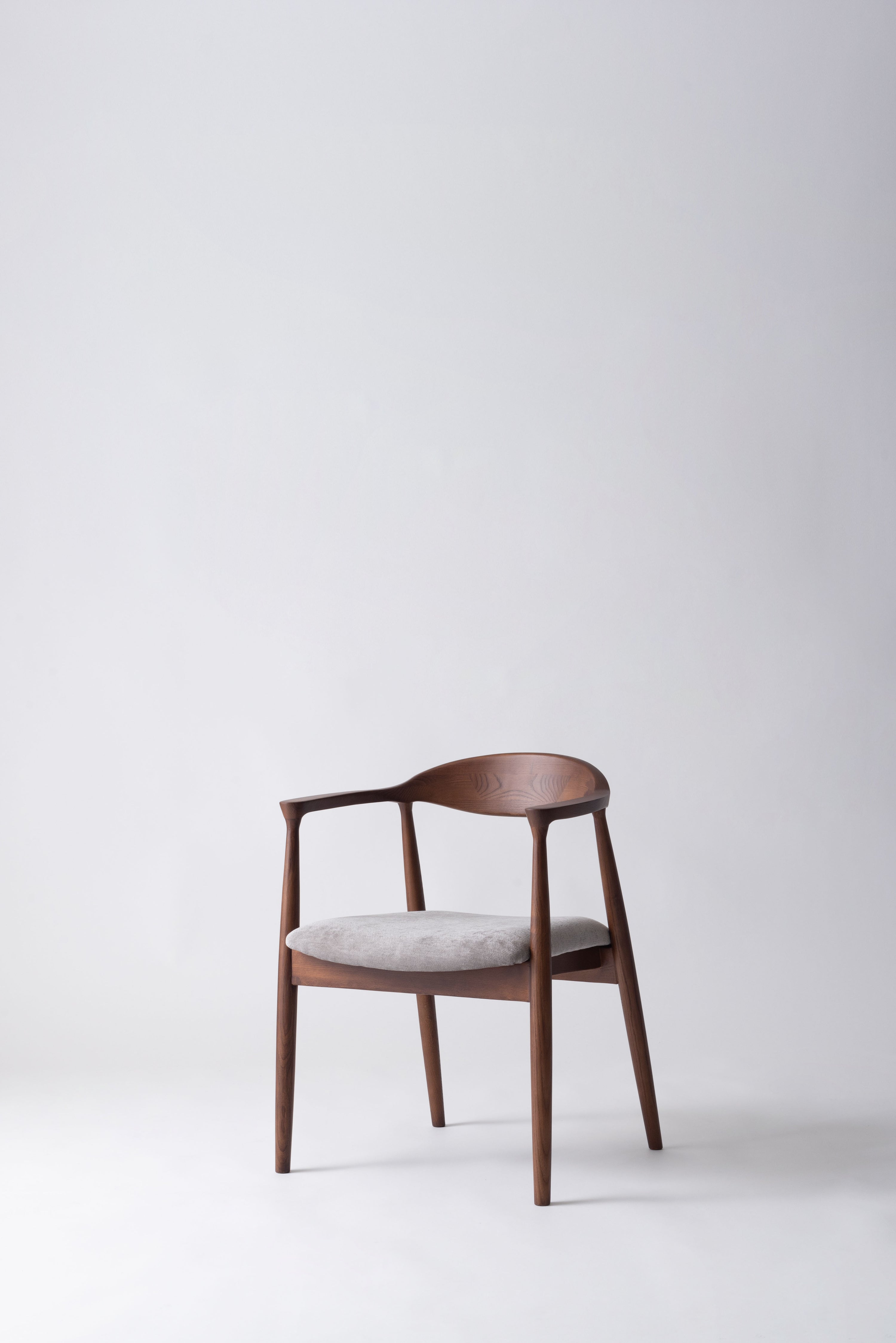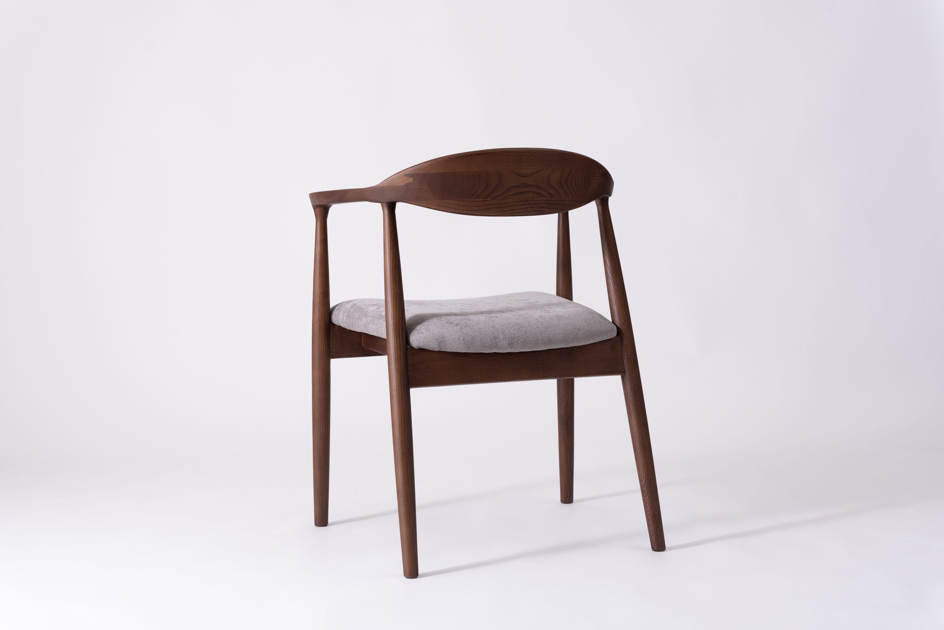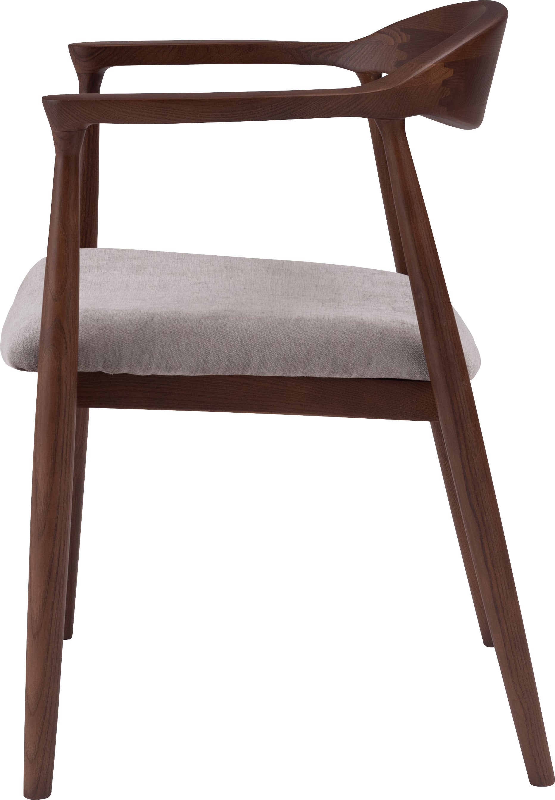 背面とアームが美しいアーチを描き、丸みを帯びたフォルムが特徴のチェアです。天然木のあたたかみとファブリックのディテールが相まって、優しい印象を与えてくれます。座面は混色生地で絶妙な色合いが唯一無二でダイニングテーブルと合わせても、一脚でお部屋のアクセントにしても、その存在感を感じられます。