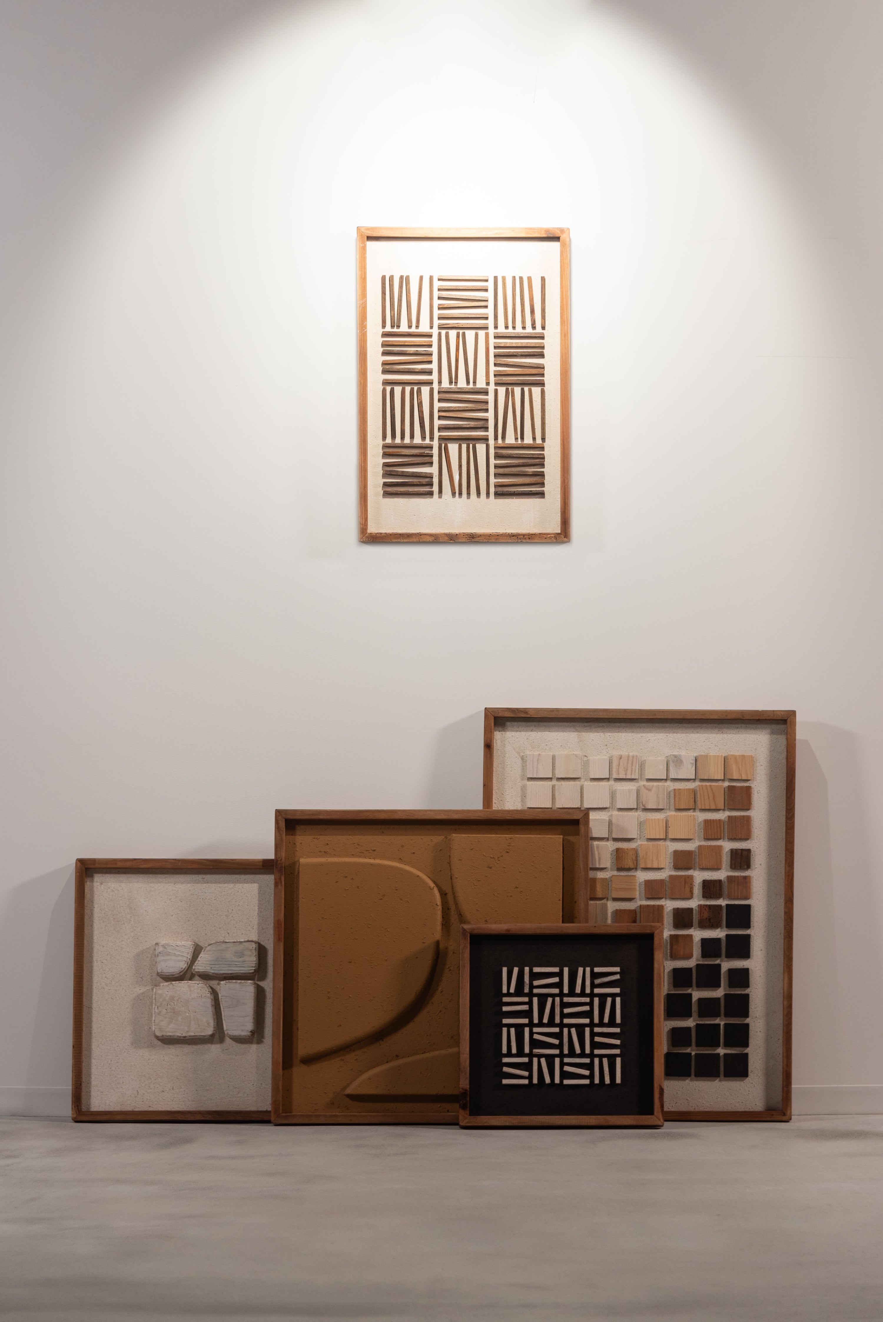 ライティングや日の当たり方で、立体的なアートが影を映し、表情豊かに部屋を彩るアートボードです。アートのベースには塗りを施したコットン素材の帆布を使用しています。立体的に貼り付けられた古材や生地が存在感を放ちます。壁に掛けるのはもちろん、立て掛けて飾るのもおススメです。