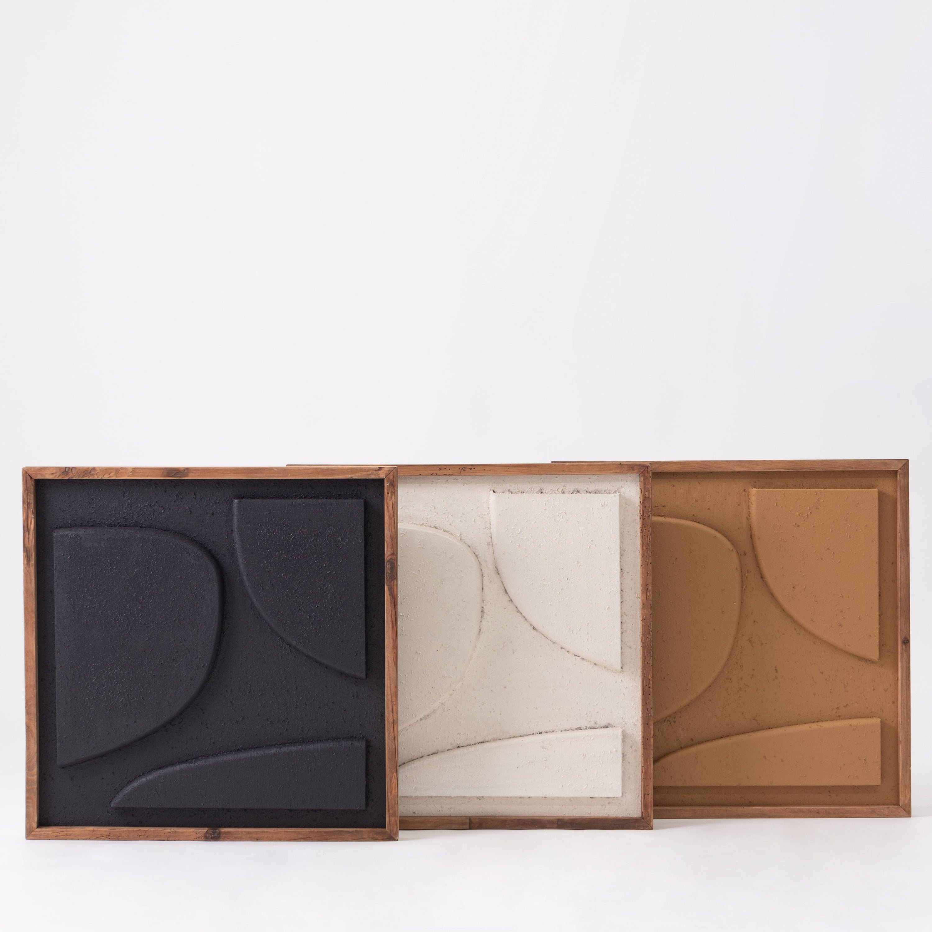 ライティングや日の当たり方で、立体的なアートが影を映し、表情豊かに部屋を彩るアートボードです。アートのベースには塗りを施したコットン素材の帆布を使用しています。立体的に貼り付けられた古材や生地が存在感を放ちます。壁に掛けるのはもちろん、立て掛けて飾るのもおススメです。