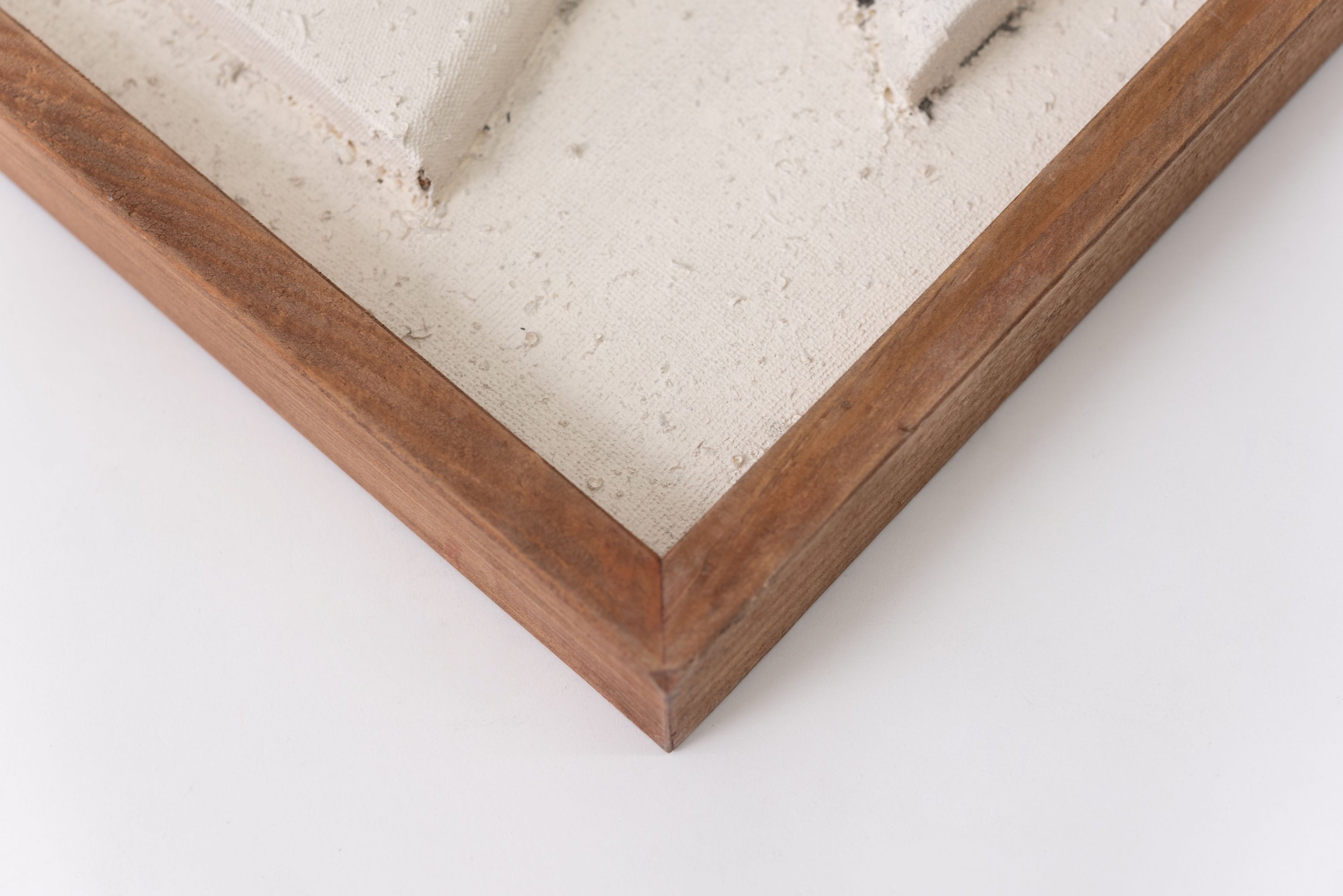 ライティングや日の当たり方で、立体的なアートが影を映し、表情豊かに部屋を彩るアートボードです。アートのベースには塗りを施したコットン素材の帆布を使用しています。立体的に貼り付けられた古材や生地が存在感を放ちます。壁に掛けるのはもちろん、立て掛けて飾るのもおススメです。