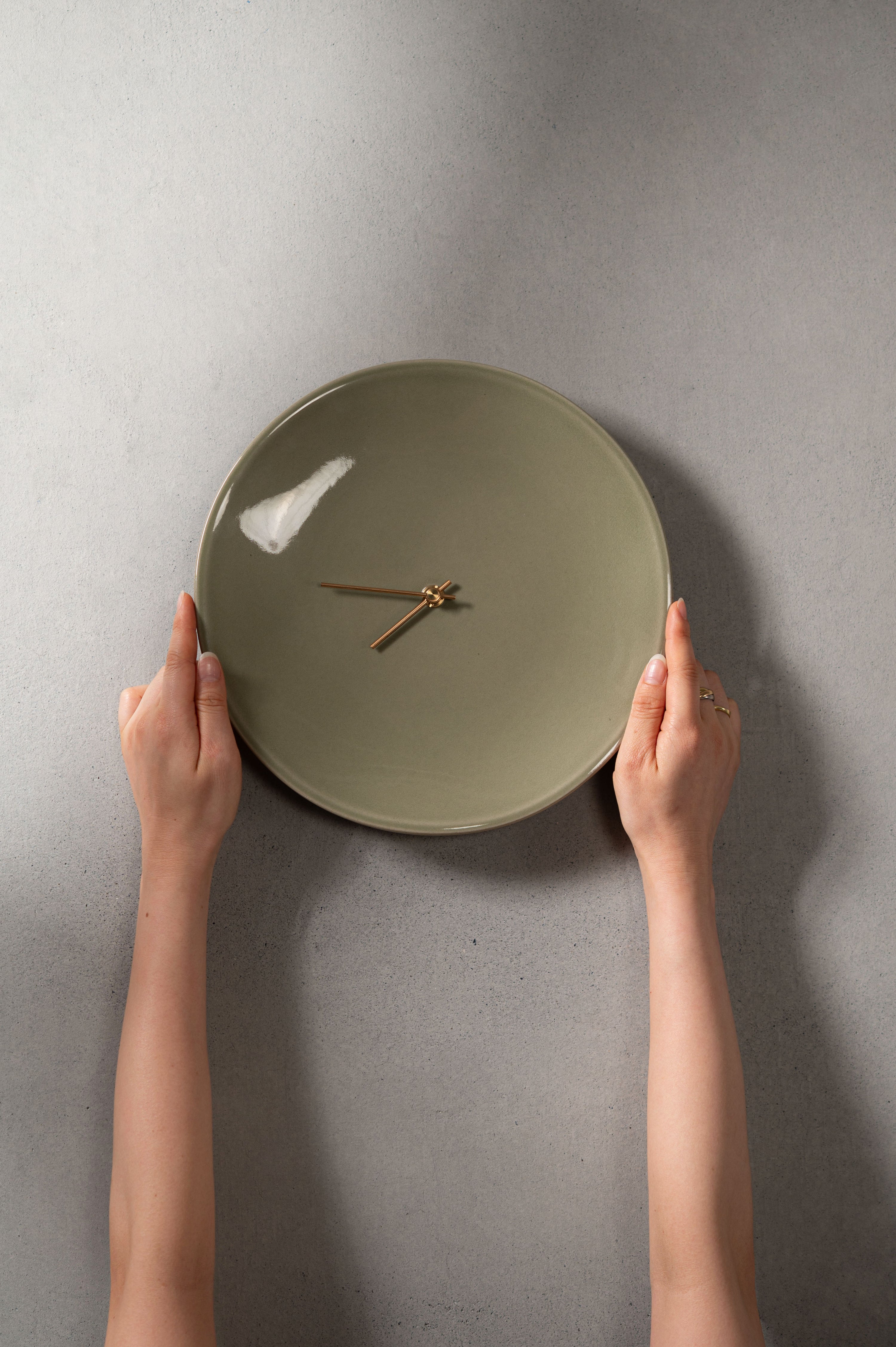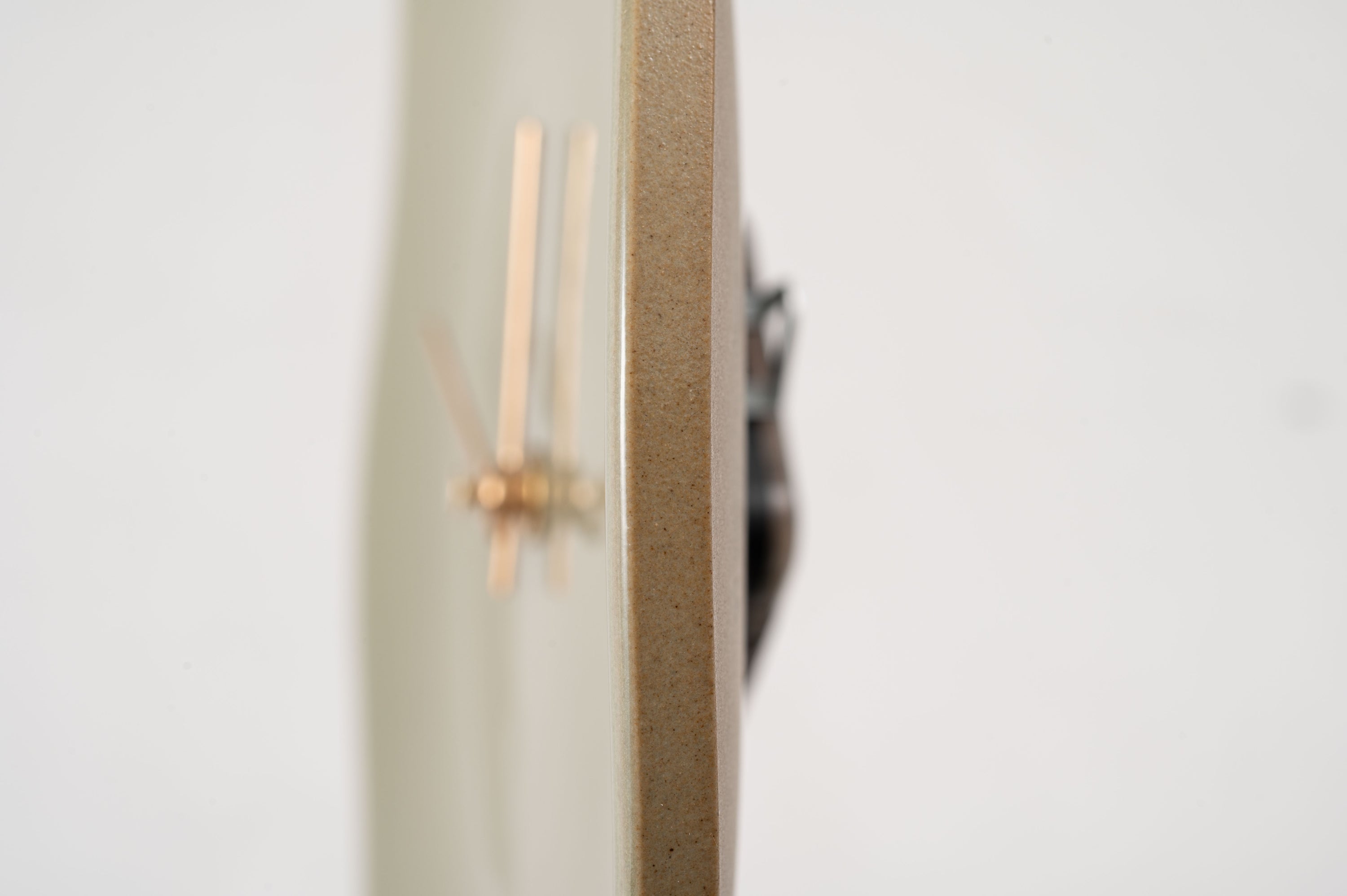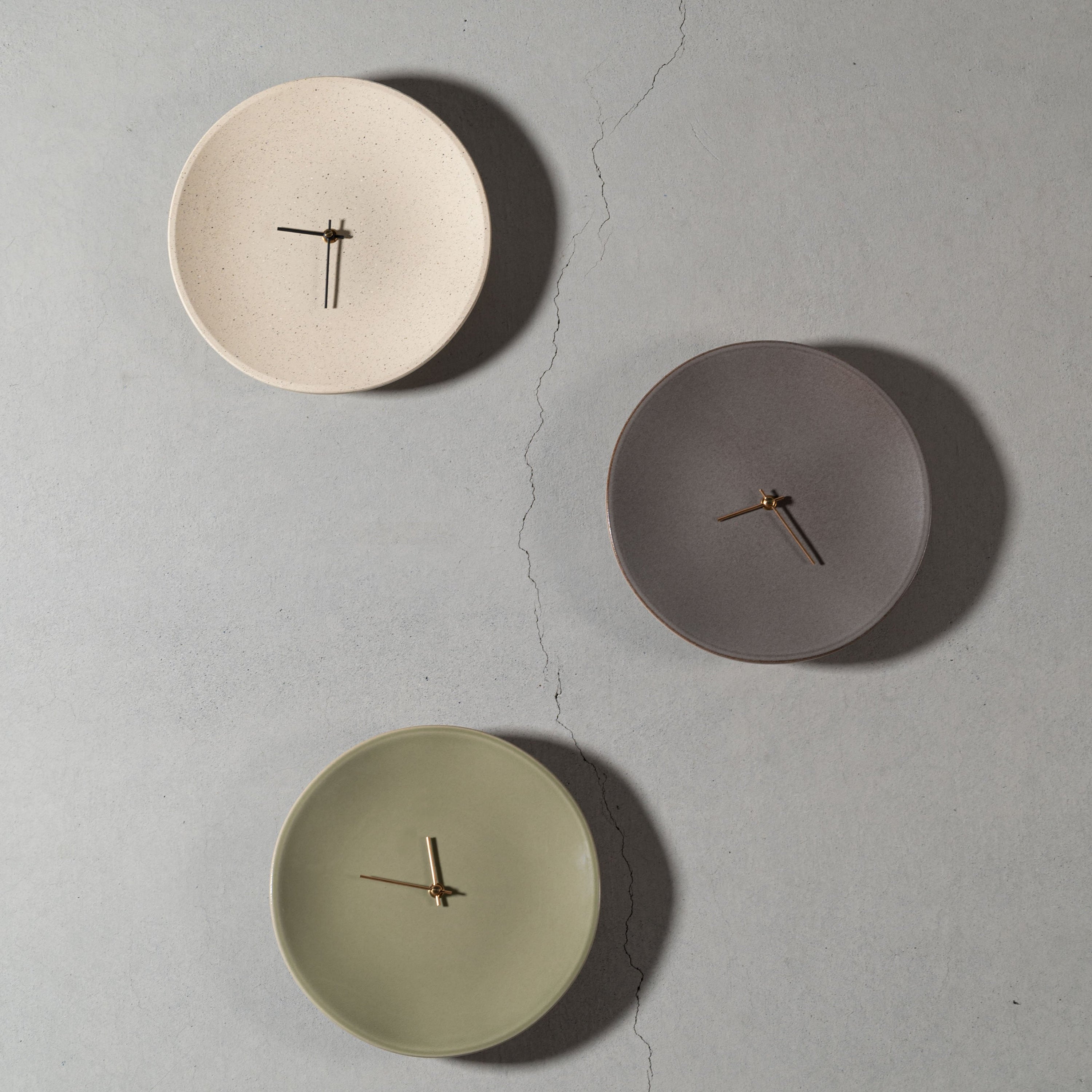 陶磁器やタイルで有名な岐阜県多治見市にて、一つひとつ職人の手により丁寧に作り上げられたこだわりの壁掛け時計です。陶磁器の質感が感じられるお皿の様なフォルムとシンプルな細身の針のコントラクトが美しい一品です。