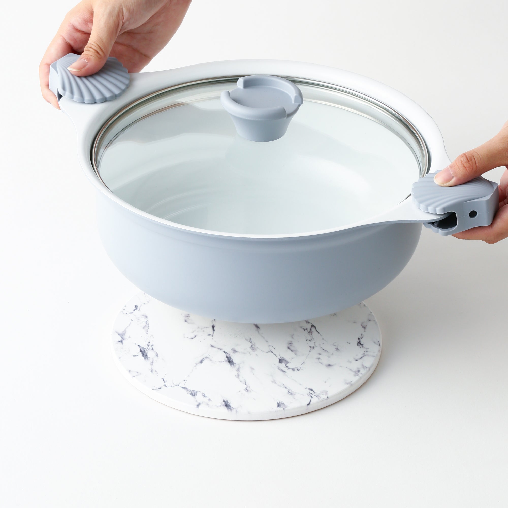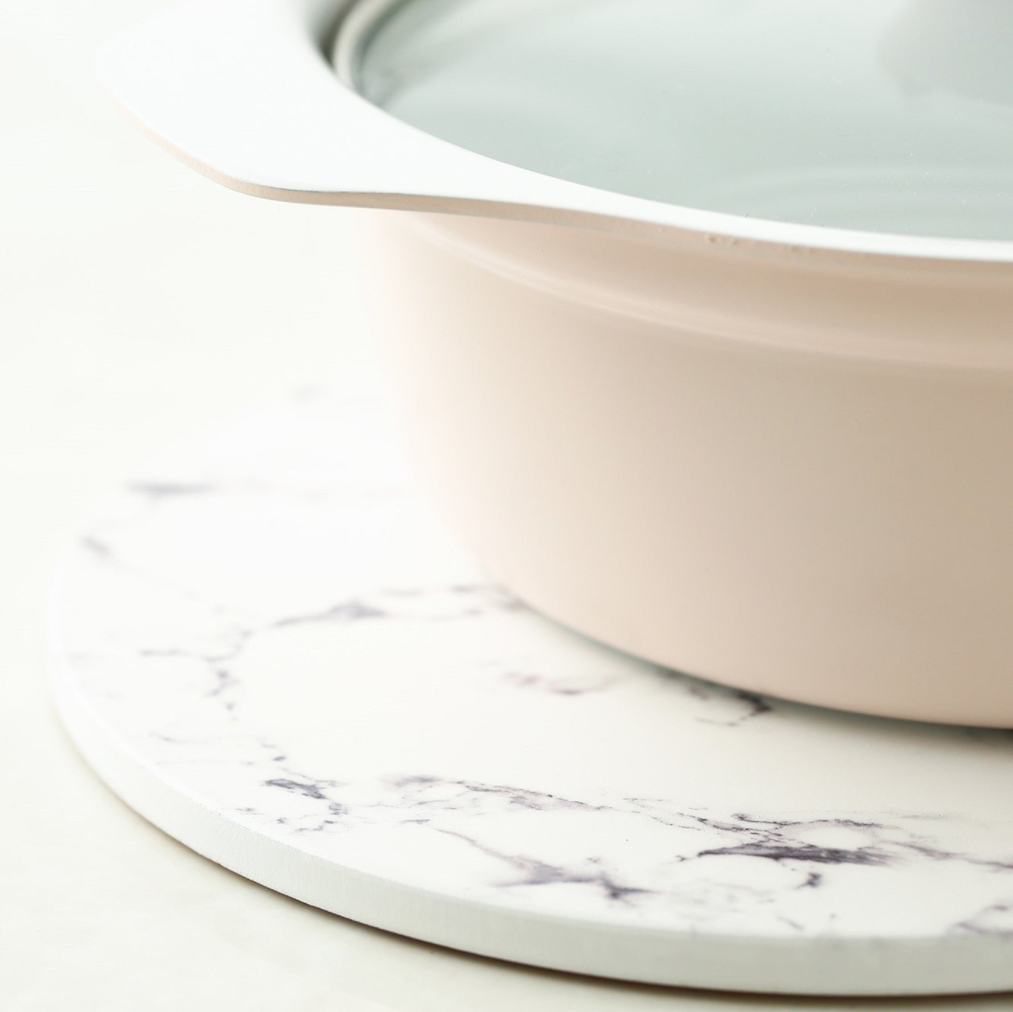 ナチュラルカラーでやわらかい雰囲気が、どんなイテンリアにも馴染むオシャレな鍋敷きです。カラーバリエーションが豊富なため、好みのデザインが見つかります。ホワイトカラーはシンプルで、どのようなコーディネートとも合わせやすいです。ご飯の時間がより楽しくなります。W200×D200×H8mmと大きめのサイズのため、さまざまな利用用途に対応できることも魅力です。また表面にはドロマイトと呼ばれる耐久性の優れた素材を使用しています。鍋を置く際にスープを零しても、水を弾くためシミになることはありません。さらに裏面にはコルクの素材を使用しているため、テーブルに傷が付く心配もありません。そのため、お気に入りのテーブルを傷つけたくない方も安心して使用できます。機能性にこだわった鍋敷きですが、お買い求めやすい価格帯となっています。Francfrancのキッチングッズとの相性が抜群に良いため、その他のキッチングッズを組み合わせて、まるごとかわいくコーディネートを楽しんでみてください。 お友達へのちょっとしたギフトにもおすすめです。