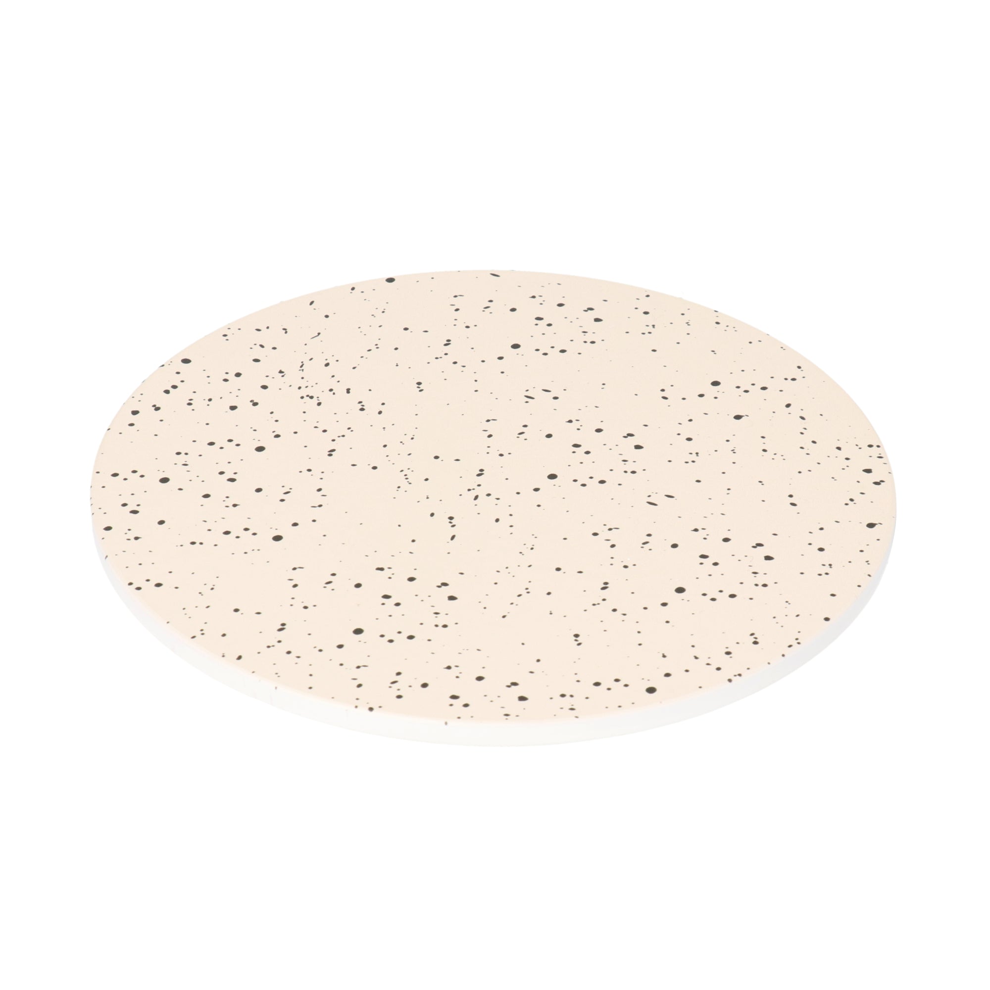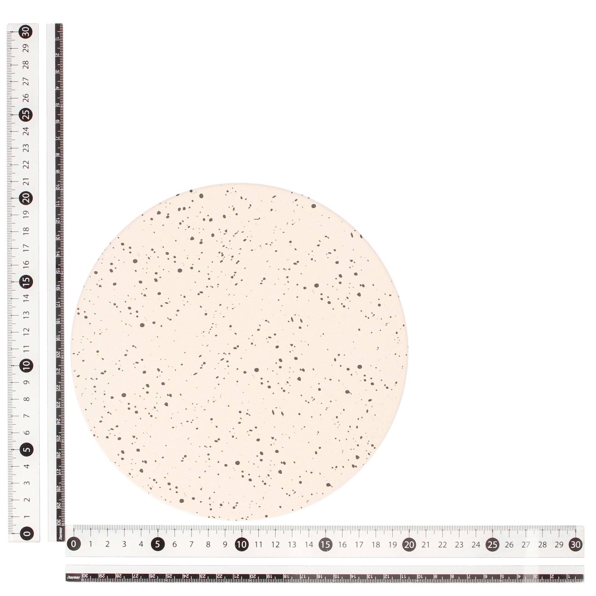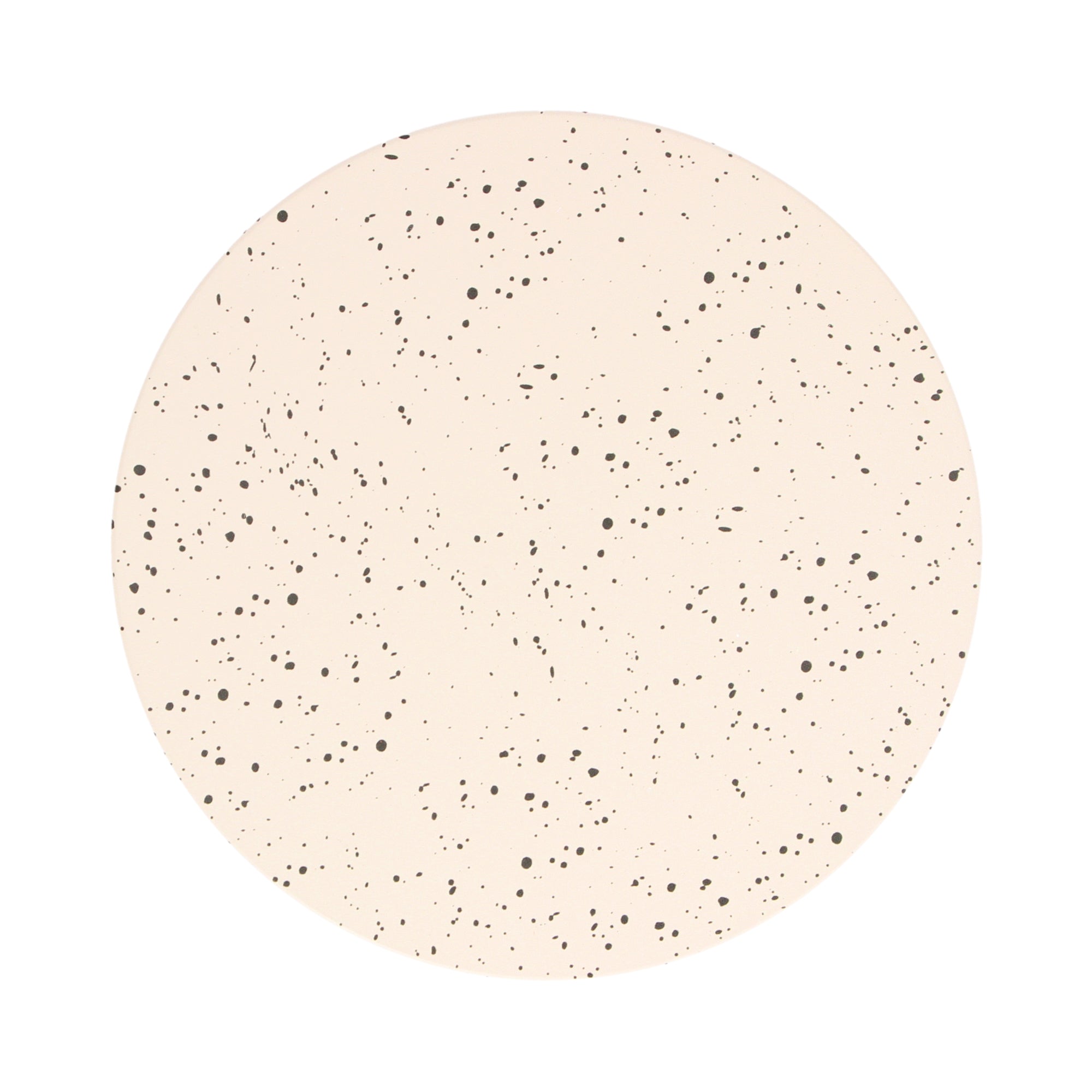 ナチュラルな雰囲気がどんなインテリアにも馴染むおしゃれな鍋敷きです。テーブルなどにキズを付きにくくするため、裏面はコルク素材で仕上げました。コルクとはコルクガシという樹木の皮から作られた天然素材です。ドットの模様が高級感があり、置いているだけで普段の食卓の風景をランクアップさせてくれます。表面にはドロマイトという素材が使われています。ドロマイトとは岩石の一種なので固く、少し重みのある鍋敷きになっています。色はシンプルなだいだい色を基調としています。形は鍋の形に合わせたきれいな円形です。大きさは横20cm、縦20cm、高さ0.8cmと一般的な鍋敷きのサイズです。