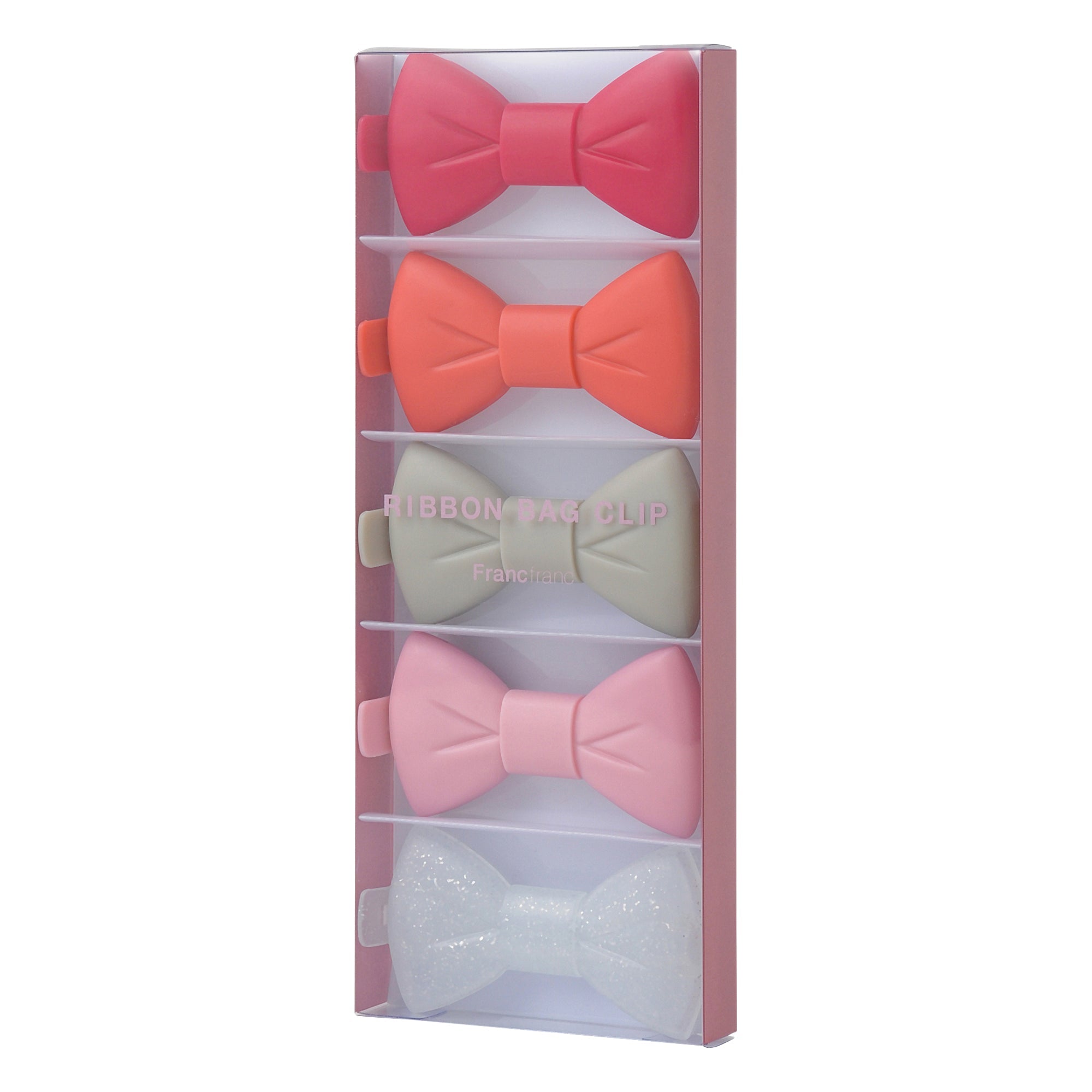 カラフルなリボン型のバッククリップです。ポップなカラー、かわいらしいデザインなので食べかけのお菓子やパンの袋などに封をしてテーブルやキッチンに置いておいてもキュートな見た目に。手作りお菓子の袋につけてプレゼントするのもおすすめです。5個ぜんぶ違う色なので用途や使う人別で使い分けることもできて便利。5個のうち1個がラメ入りなのもポイントです。大きめのサイズなので使い勝手がよく、ポリプロピレン製なので軽量で強度があるのも魅力です。