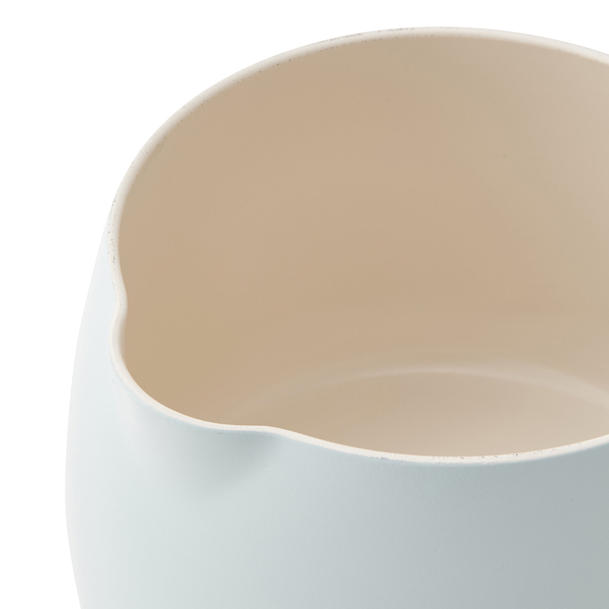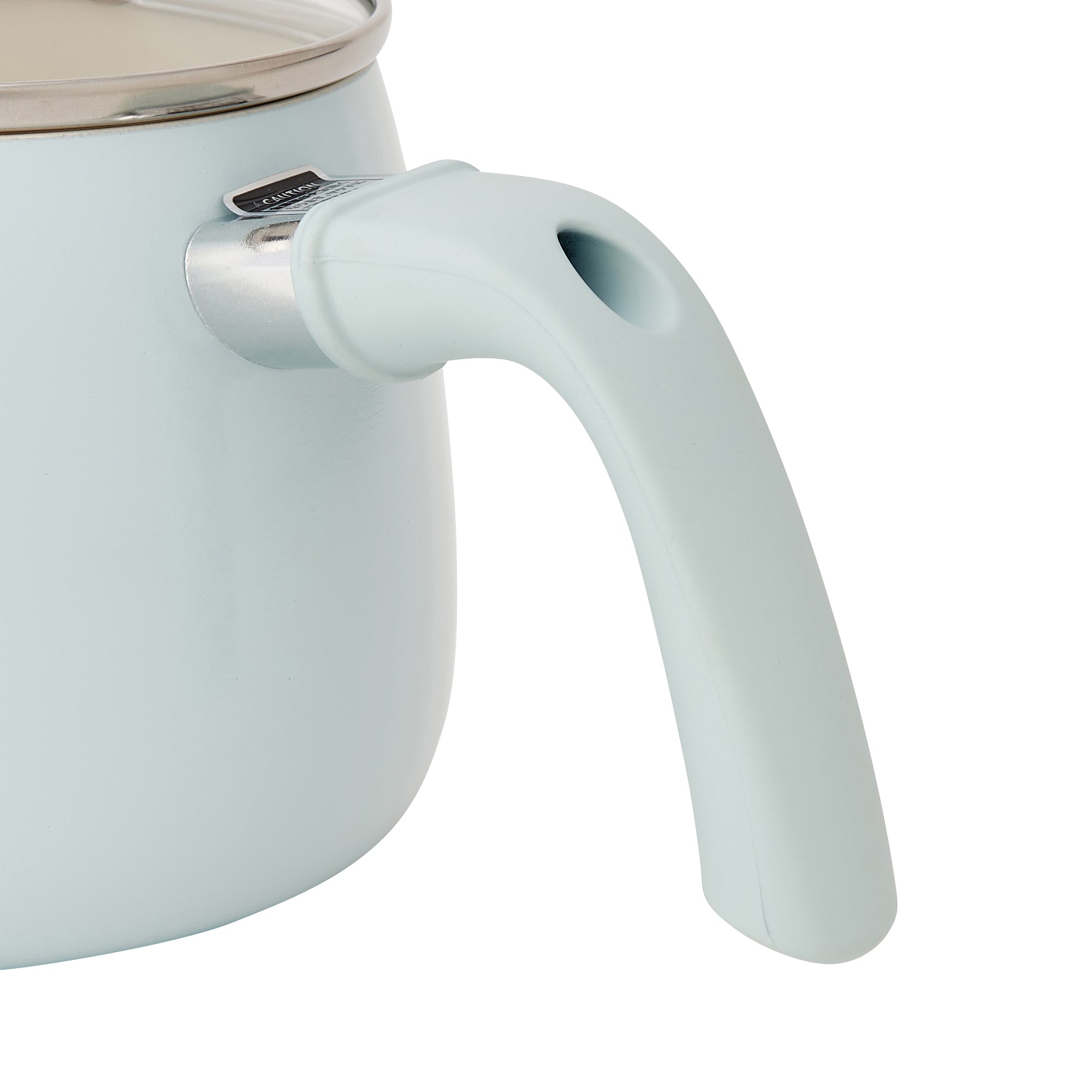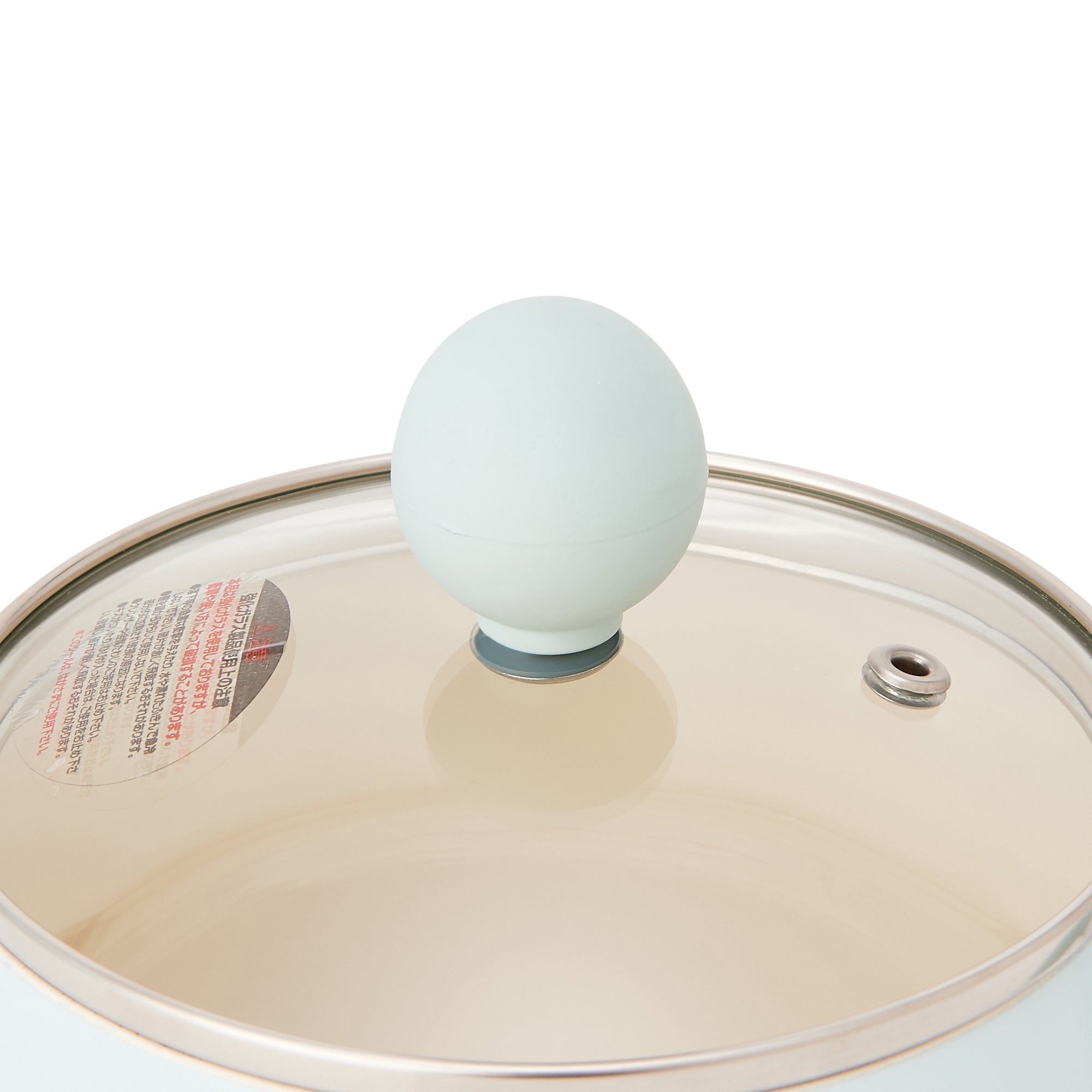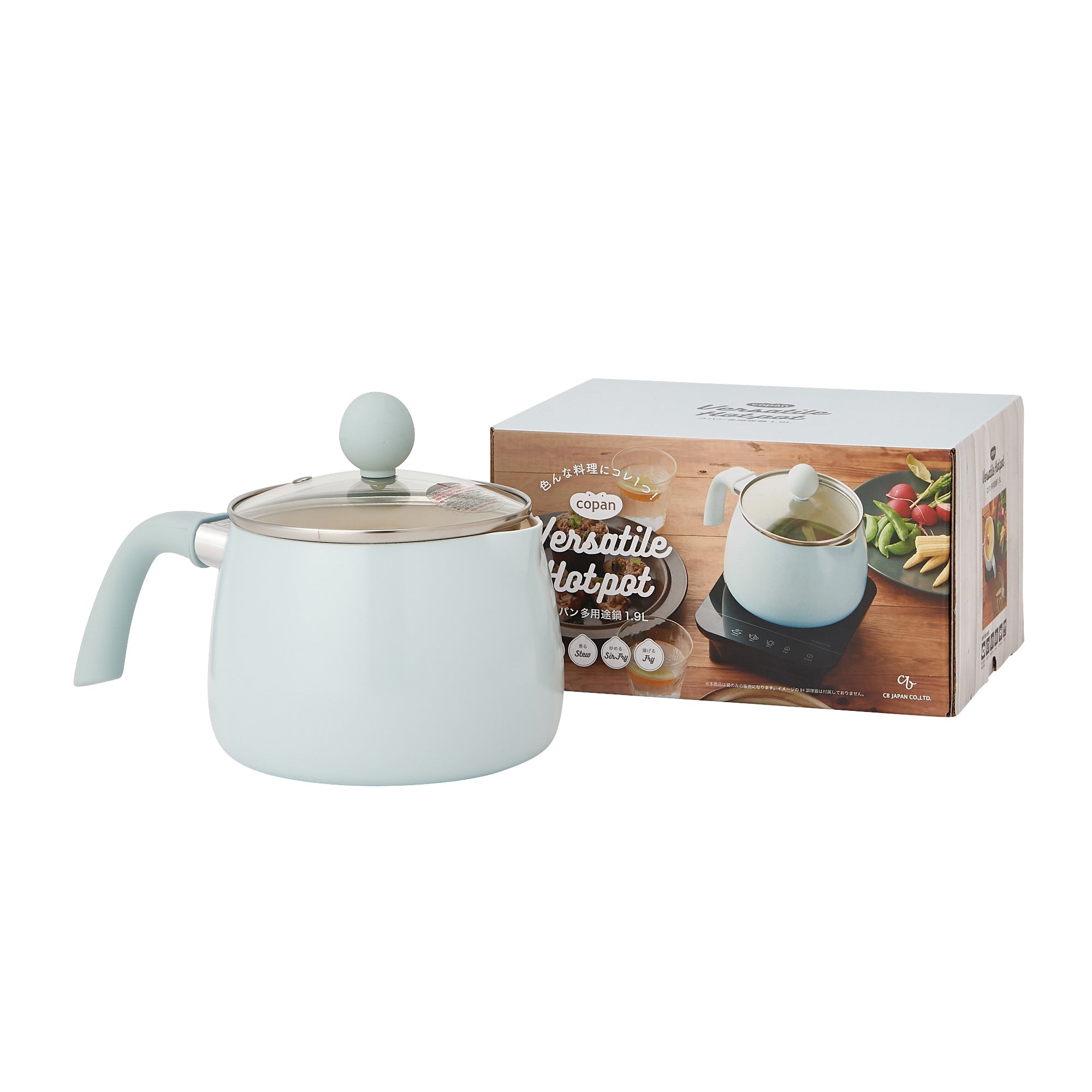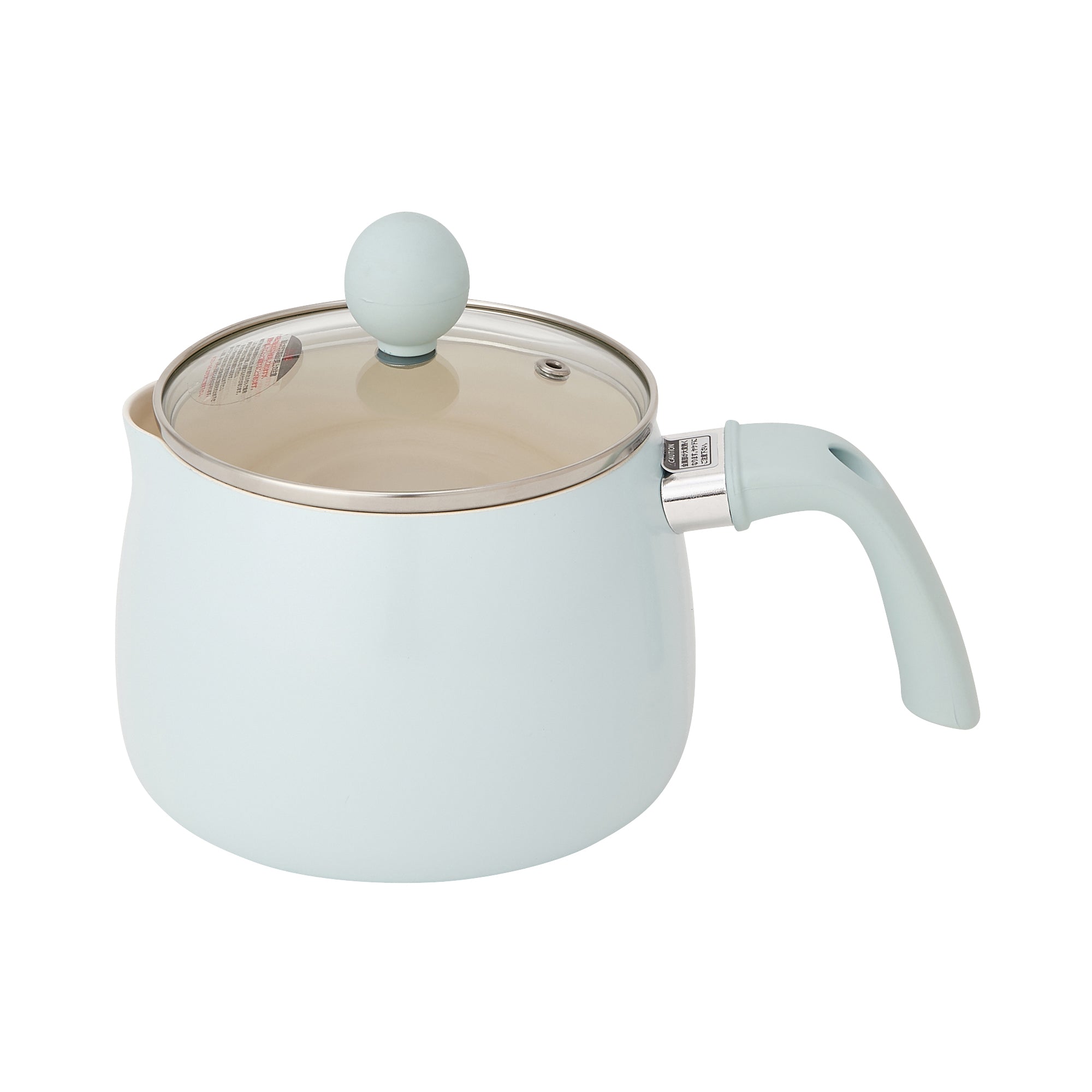 茹でる・煮る・炒める・揚げるが全部できる多用途鍋です。新生活の準備や、キッチンアイテムの買い足しにおすすめのアイテム。一つあるだけでお料理のバリエーションが広がる便利なクッキングツールです。ころんとかわいいデザインで一人分の量を作るのにちょうどいいサイズ。直火もIHも対応しており、セラミック塗装加工でお手入れしやすく丈夫で長持ち。深さのある鍋なのでカレーやシチューなどの調理もしやすく、一つあると大活躍するアイテムです。蓋の取手のまあるいシルエットや、全体的に柔らかいころんとしたフォルムが可愛らしくギフトにもおすすめ。優しいベビーブルーのカラーは、そのまま食卓に出してもテーブルに映える落ち着いた色味です。ブルー系のキッチン雑貨とコーディネートすれば、お家のお料理時間が楽しくなりそう。箱に入っているので、結婚や引っ越しなどのフォーマルな贈り物にも喜ばれます。エプロンや食器と組み合わせれば、おうちご飯を素敵に彩るギフトセットの出来上がり。