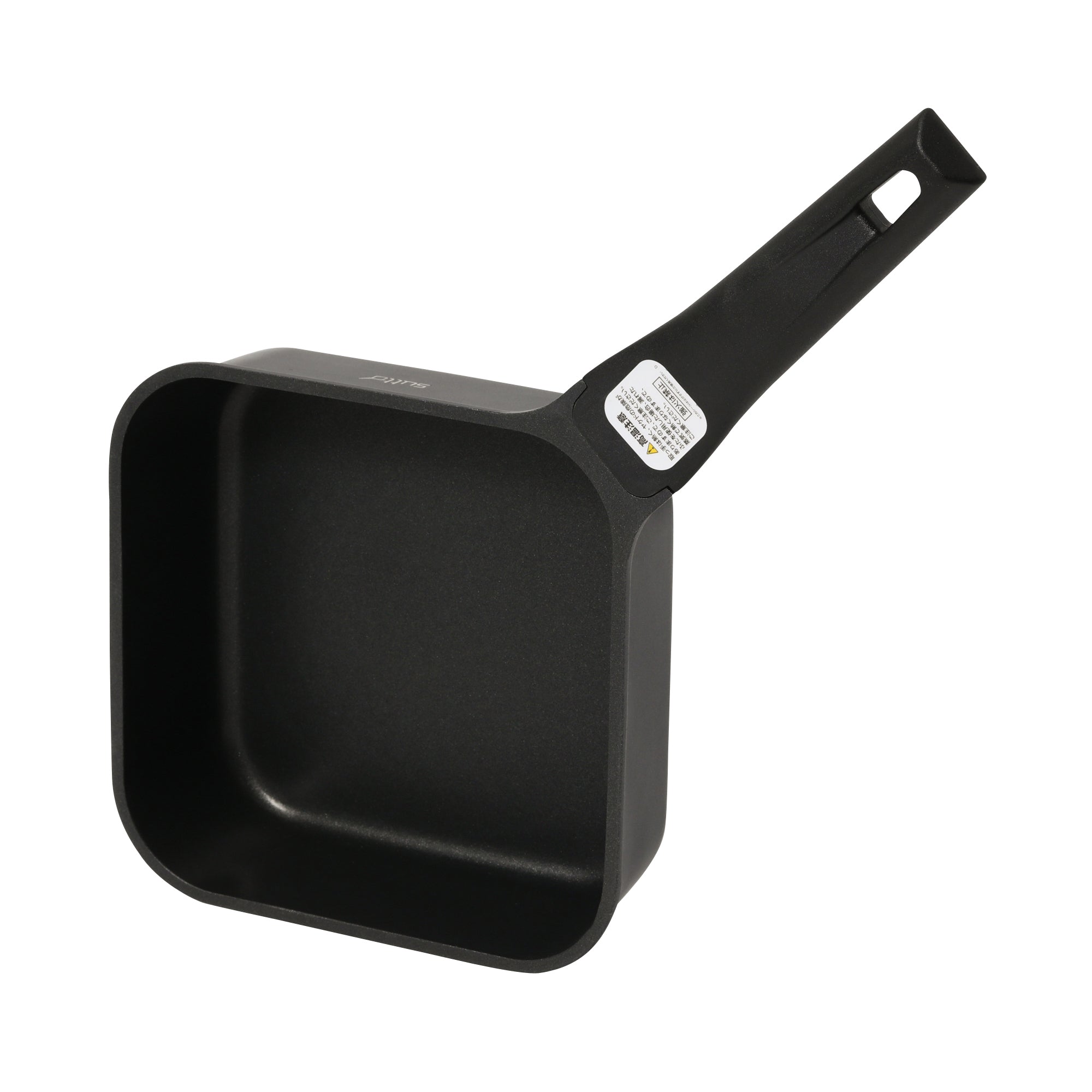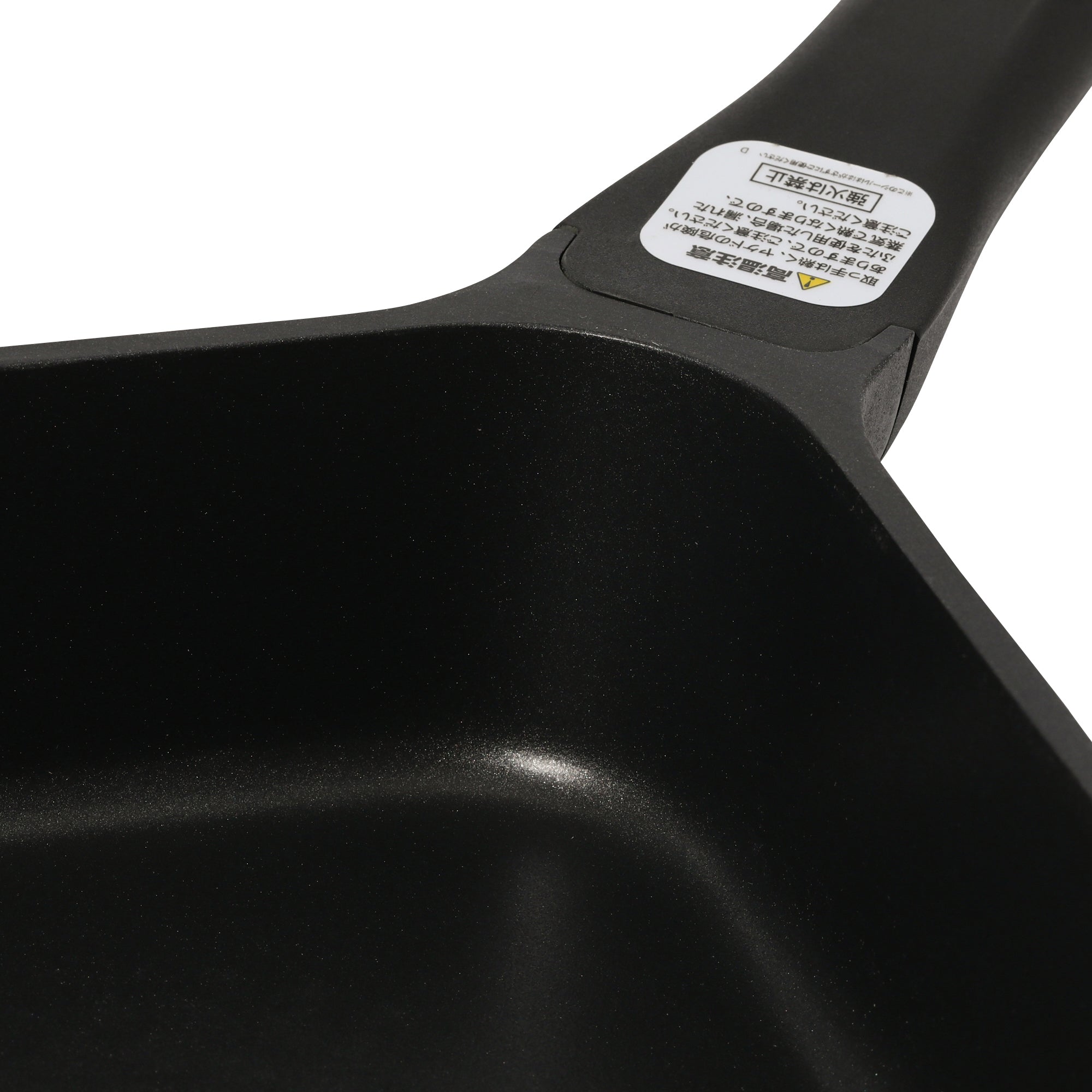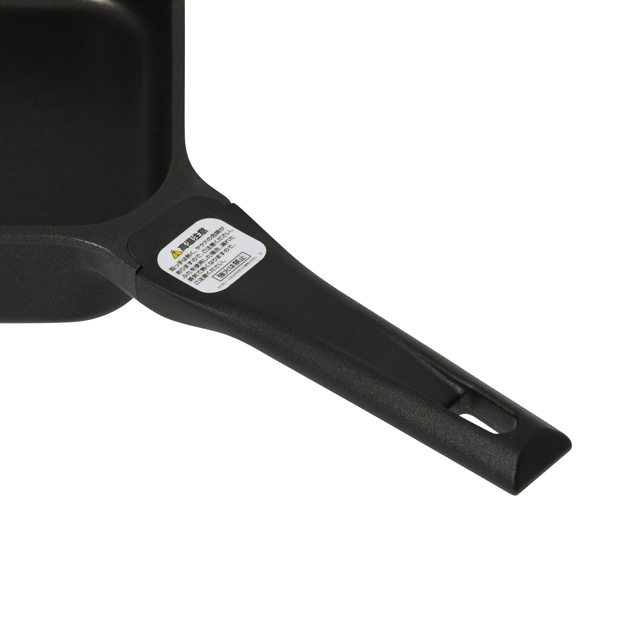 常識を覆す四角いカタチのフライパンです。焼き面積も広く一度にたくさん調理ができます。側面にリブがついて自立することで、狭いスペースにも収納しやすく、深さがあるので鍋としても使用できます。角が注ぎ口になるので汁物を注ぐ際にも便利です。取手が角についているので、取り出しやすく、調理時にも邪魔になりにくい形状になっています。