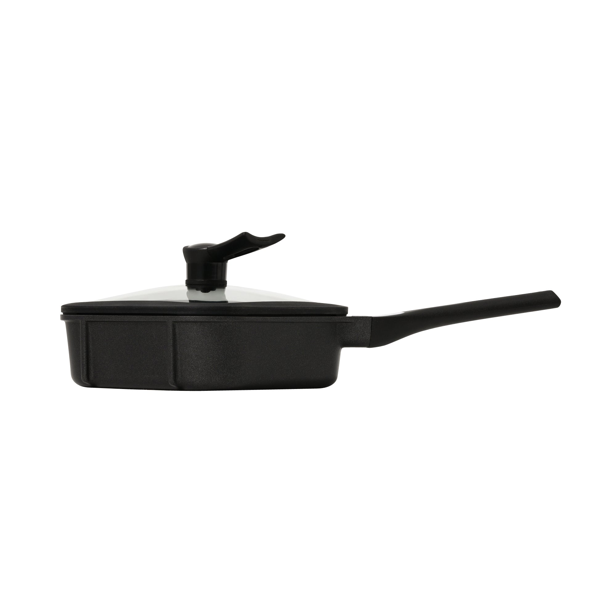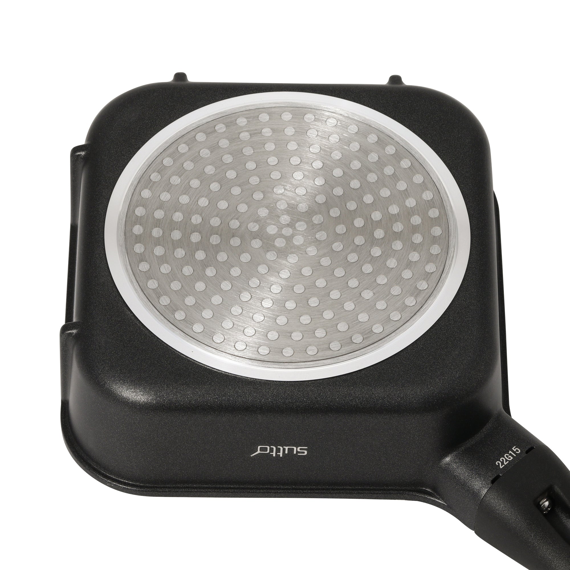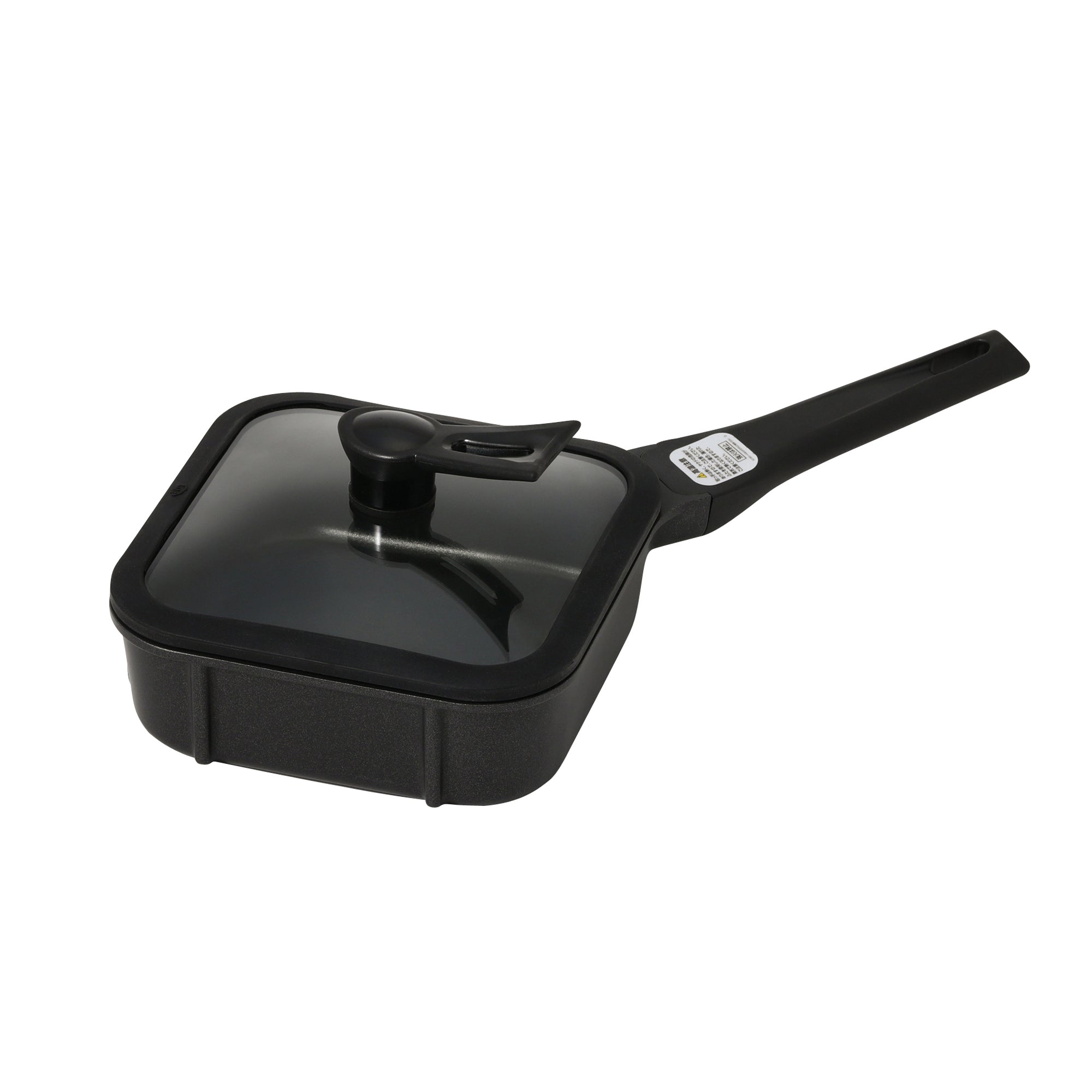 常識を覆す四角いカタチのフライパンです。焼き面積も広く一度にたくさん調理ができます。側面にリブがついて自立することで、狭いスペースにも収納しやすく、深さがあるので鍋としても使用できます。角が注ぎ口になるので汁物を注ぐ際にも便利です。取手が角についているので、取り出しやすく、調理時にも邪魔になりにくい形状になっています。