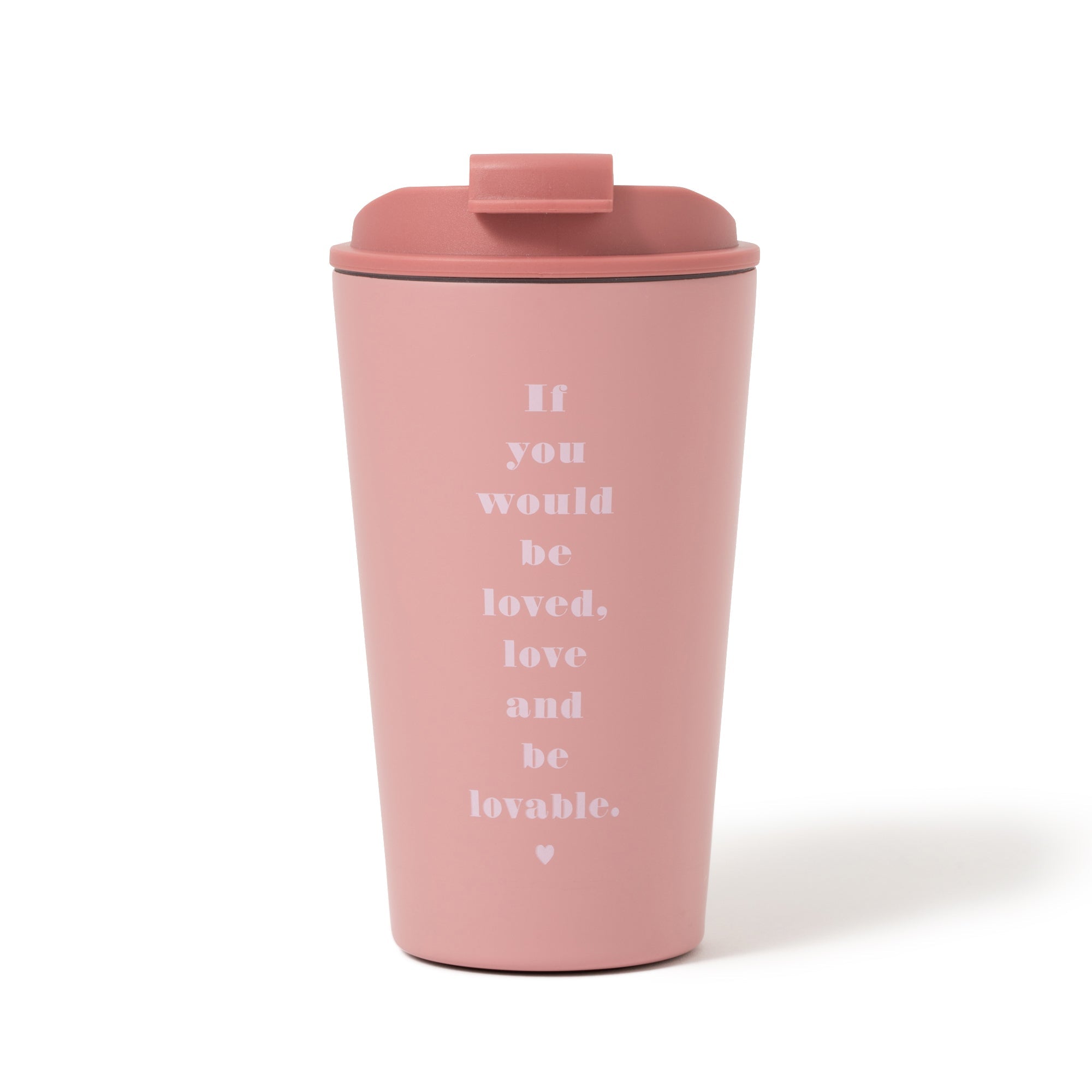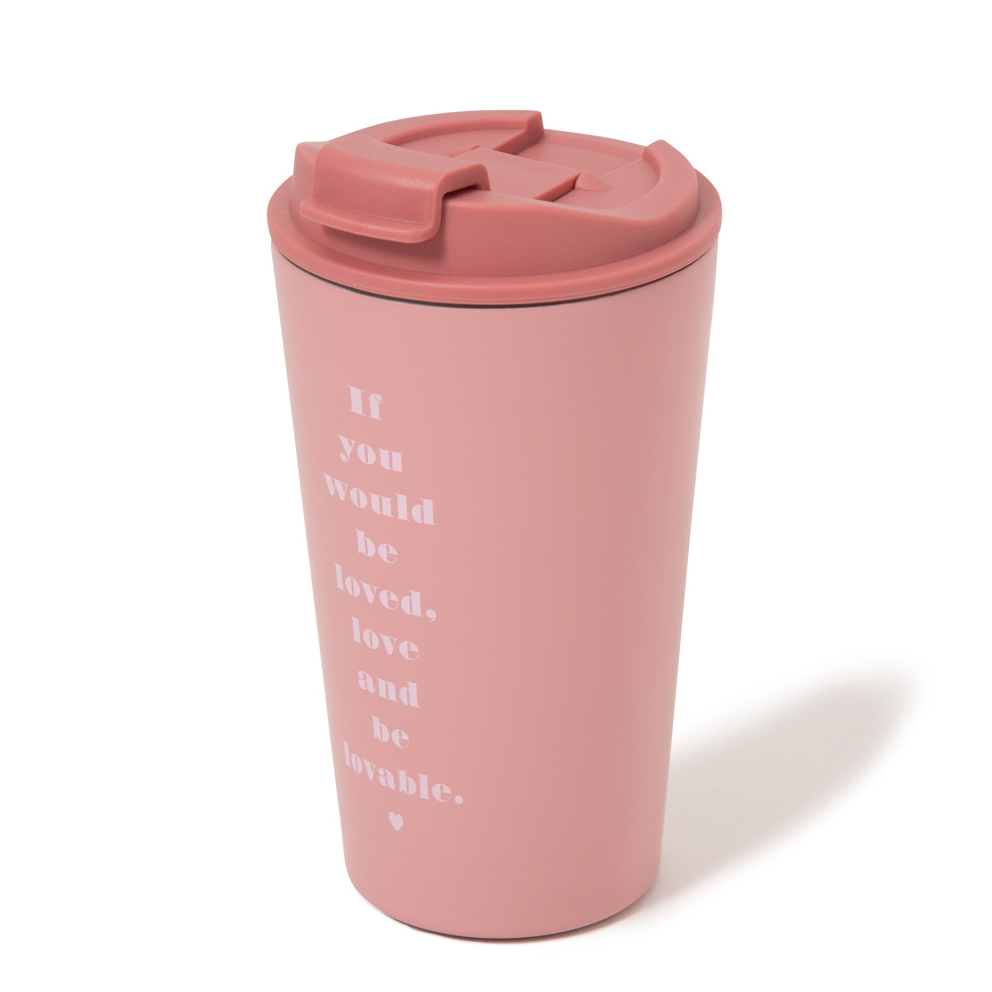 ぱっと気持ちが明るくなるようなカラーリングのステンレスタンブラーです。保冷、保温効果が高い真空2重構造で、飲みごろの温度をキープできます。また、断熱性に優れているので、冷たい飲み物を入れても結露が出ず、熱い飲み物を入れても持ちやすい構造です。フタ付きなので手に持って移動するときにも安心です。メッセージの意味:『愛されたいなら、愛し、愛らしくありなさい』
