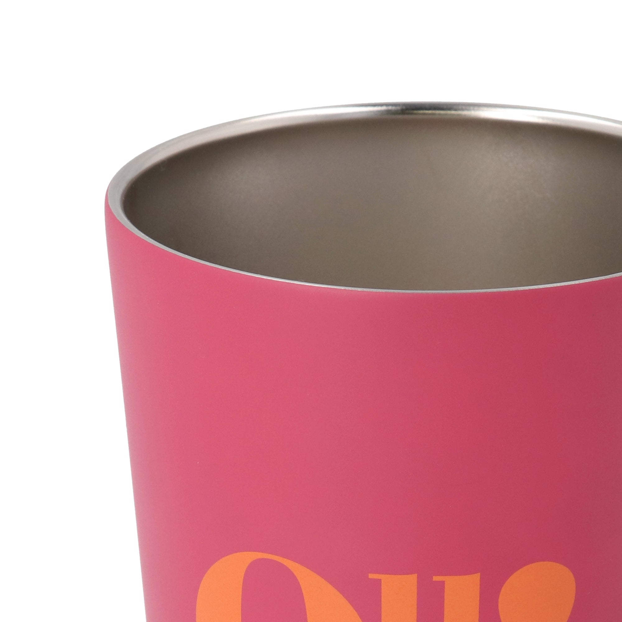テイクアウトしたドリンクやコンビニコーヒーなどを、カップごと入れられる真空二重構造のステンレスカップに新柄登場です。アイスのレギュラーサイズ/ラージサイズ(カップによってはホットのラージサイズ)がぴったり入ります。(※各コンビニのカップサイズによって異なります。)レギュラーサイズはすこし底が浮きますが、保冷効果はほぼ同じです。オフィスや車、ご自宅でドリンクを飲む際、長時間のみごろをキープできるほか、結露も防げるのでデスクが水浸しになることもありません。もちろん直接飲み物を入れてもお使いいただけます。