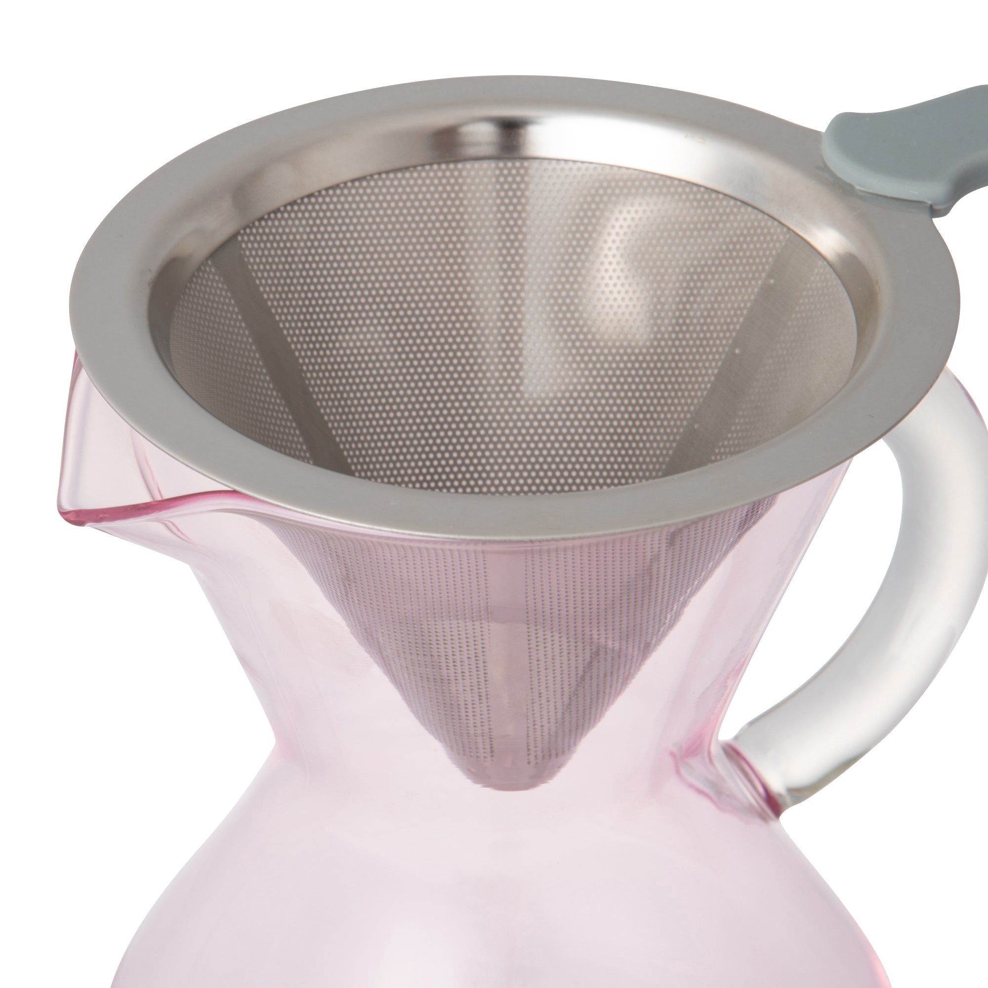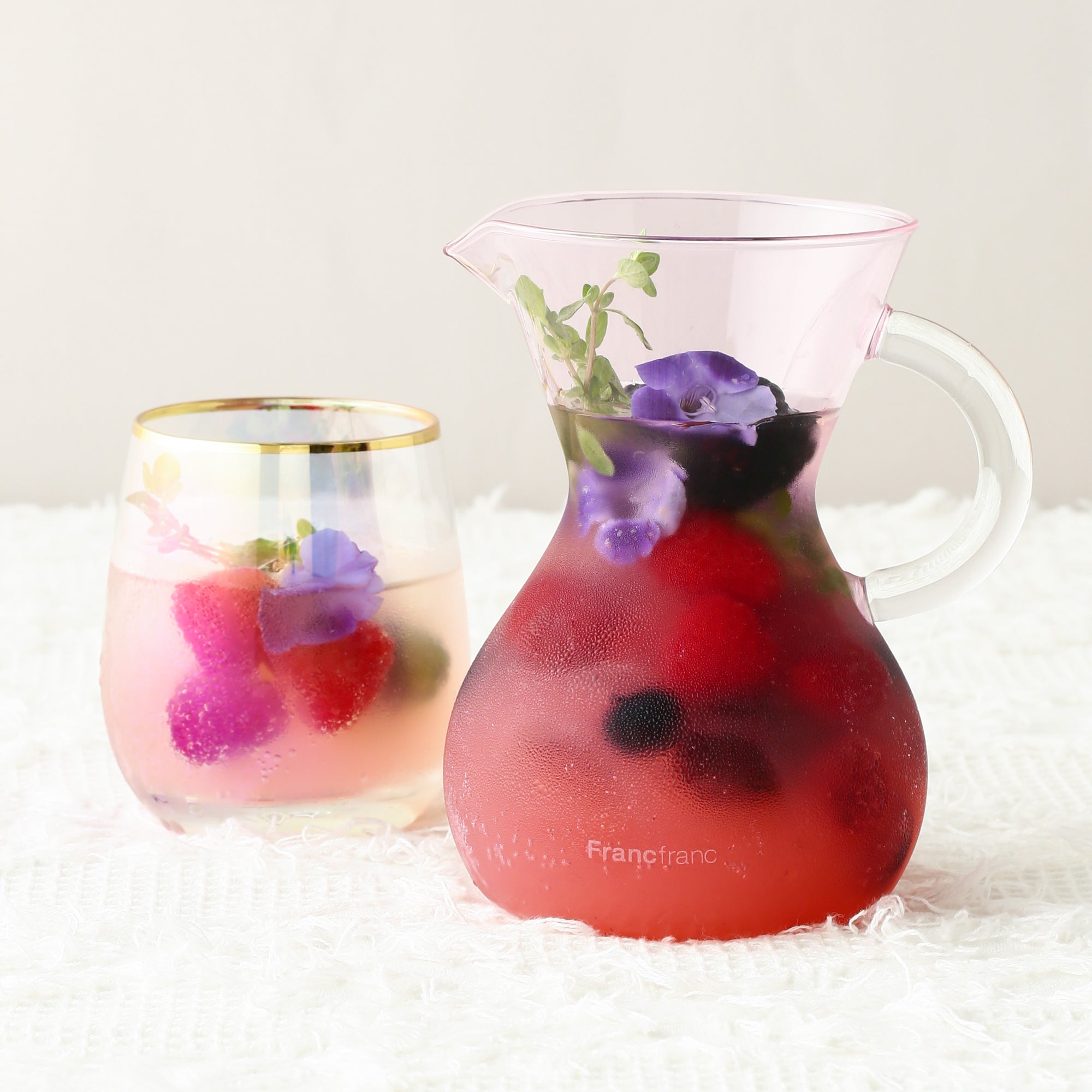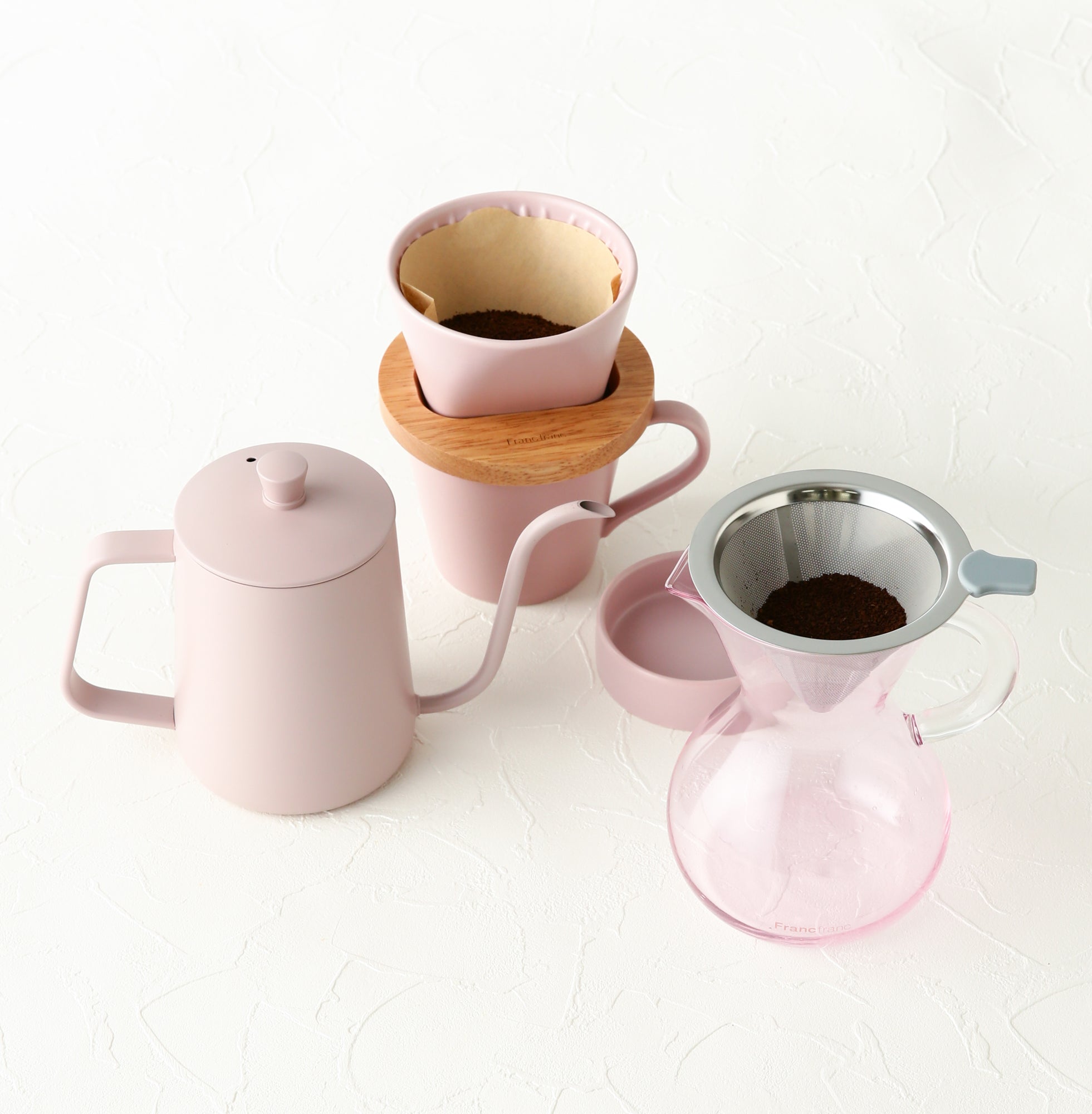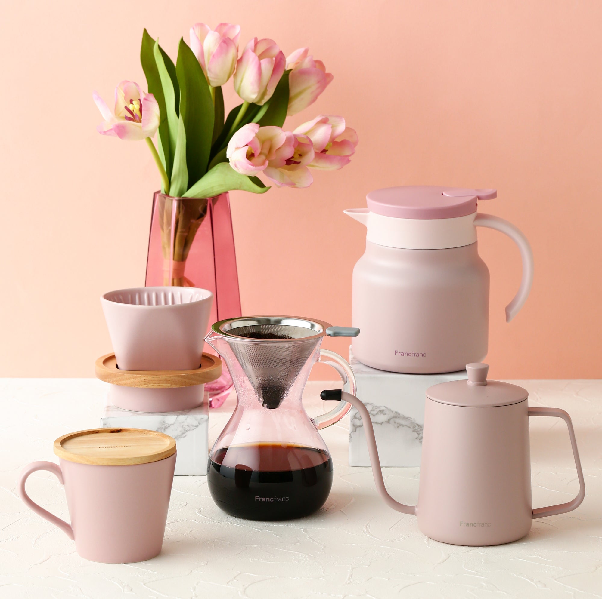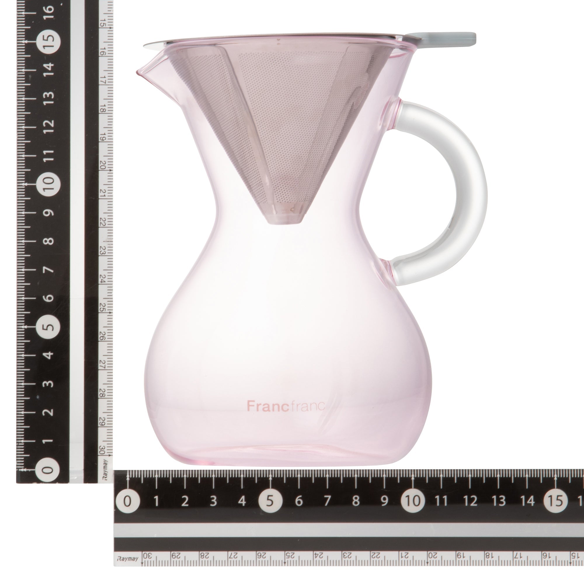 ガラスのサーバーとステンレス製ドリッパーのセットです。ステンレスフィルターは使用後に洗うことで何度でも繰り返し使用できます。ゴミが出ないためエコで、フィルターを買う手間がないのもメリット。金属ならではのスタイリッシュなデザインもポイントです。ペーパーフィルターと異なりコーヒーの油分がそのまま抽出されるので、豆の旨味やコクをダイレクトに味わえます。しっかりとした味わいが好きな方におすすめです。カラーグラスとの組み合わせがポイントです。サーバーにはさりげなくFrancfrancのロゴをあしらいました。サーバー単体でピッチャー代わりに使うこともできます。