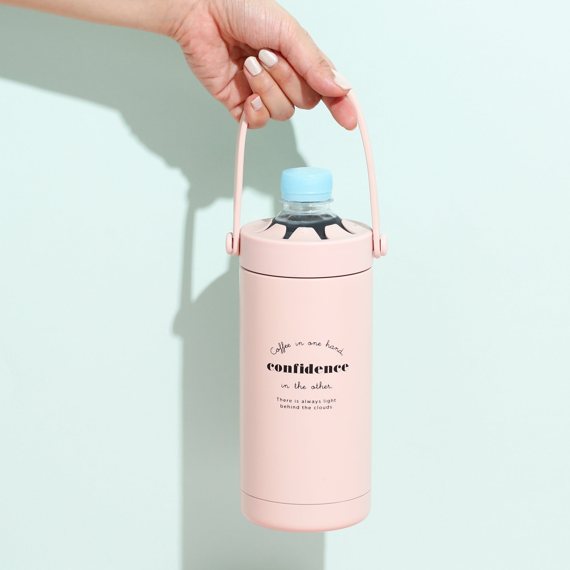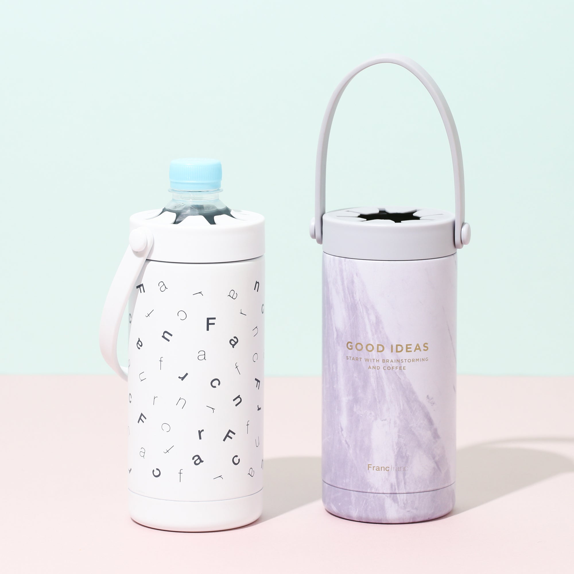 ペットボトルをそのまま入れるだけでひんやり感を長時間キープしてくれる、真空二重構造のペットボトルホルダーです。結露を防げるのでデスクが水滴で水浸しになることもありません。フタ部分がペットボトルのずれを防ぎ、ホルダーにセットしたままスムーズに飲むことができるのもポイントです。ハンドルつきで持ち運びに便利だからアウトドアでも大活躍。ハンドルは取り外せるので、バッグに付けることも可能です。バッグの中でスペースを取りがちなドリンクを外側に付けることでバッグを広々使うことができます。様々なシーンでひんやりドリンクとFrancfrancらしいスタイリッシュなデザインをお楽しみください。