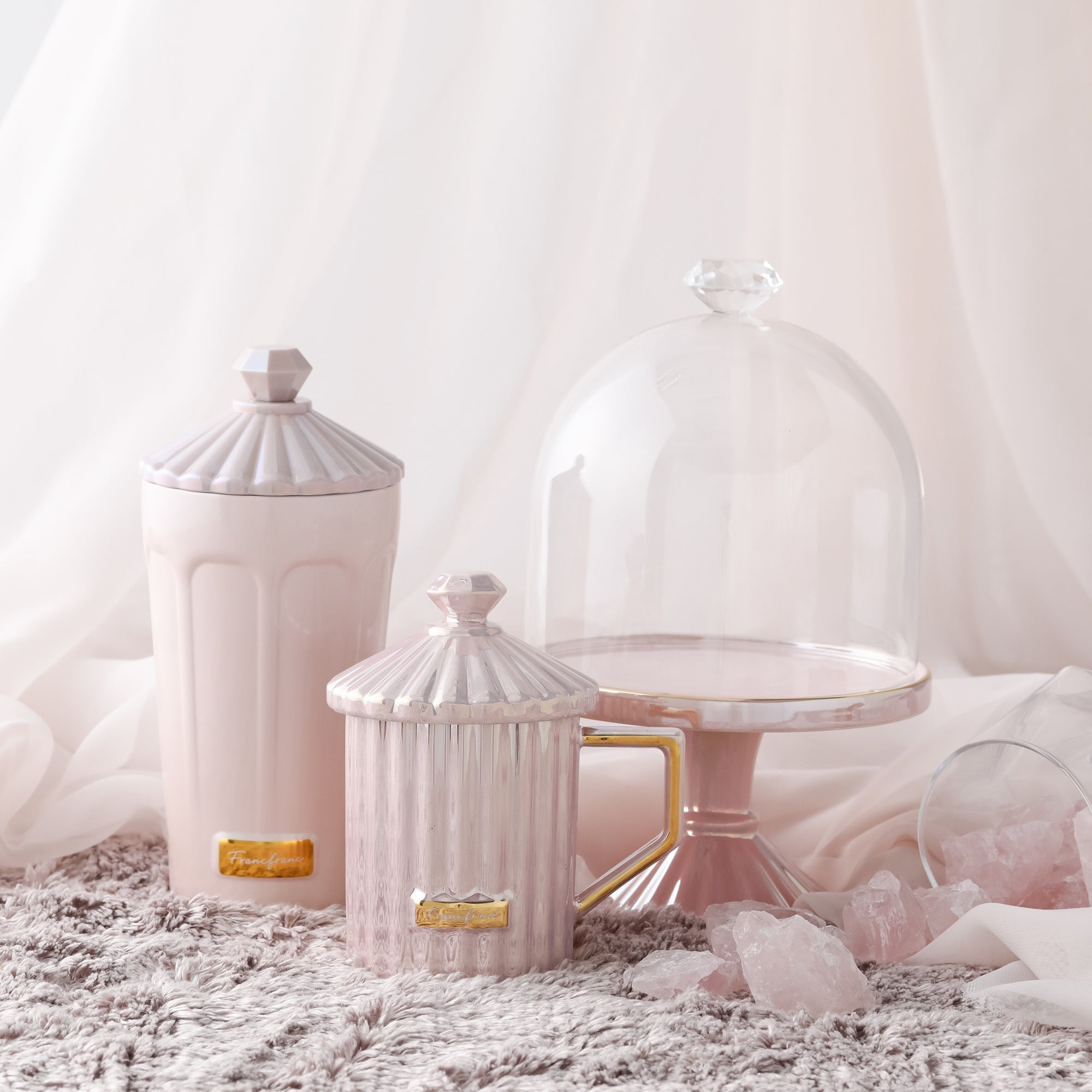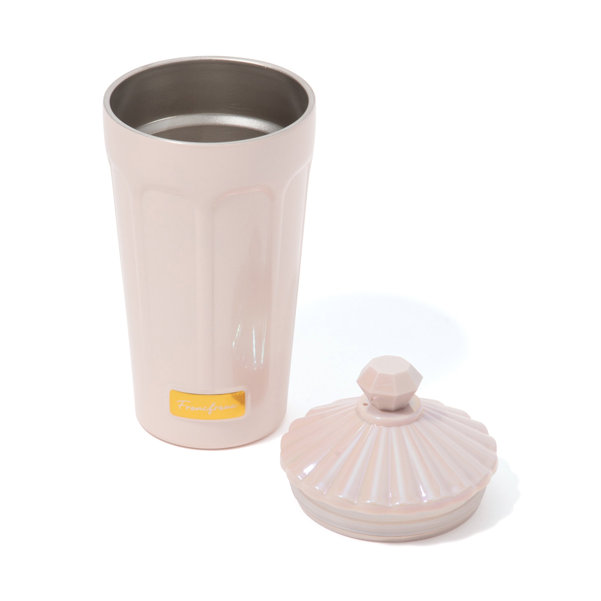 ダイヤモンドモチーフとオパール加工の組み合わせがうっとりするほど華やかな、ステンレスタンブラーです。タンブラー本体にもオパール加工を施し、形状にもこだわったデザイン。見る角度や光のあたり方によって雰囲気が変わり、使うたびに気分が上がるアイテムです。真空二重構造のステンレスなので保温保冷効果に優れており、実用性が高いのも嬉しいポイント。パッケージ入りなので、ギフトにもおすすめです。