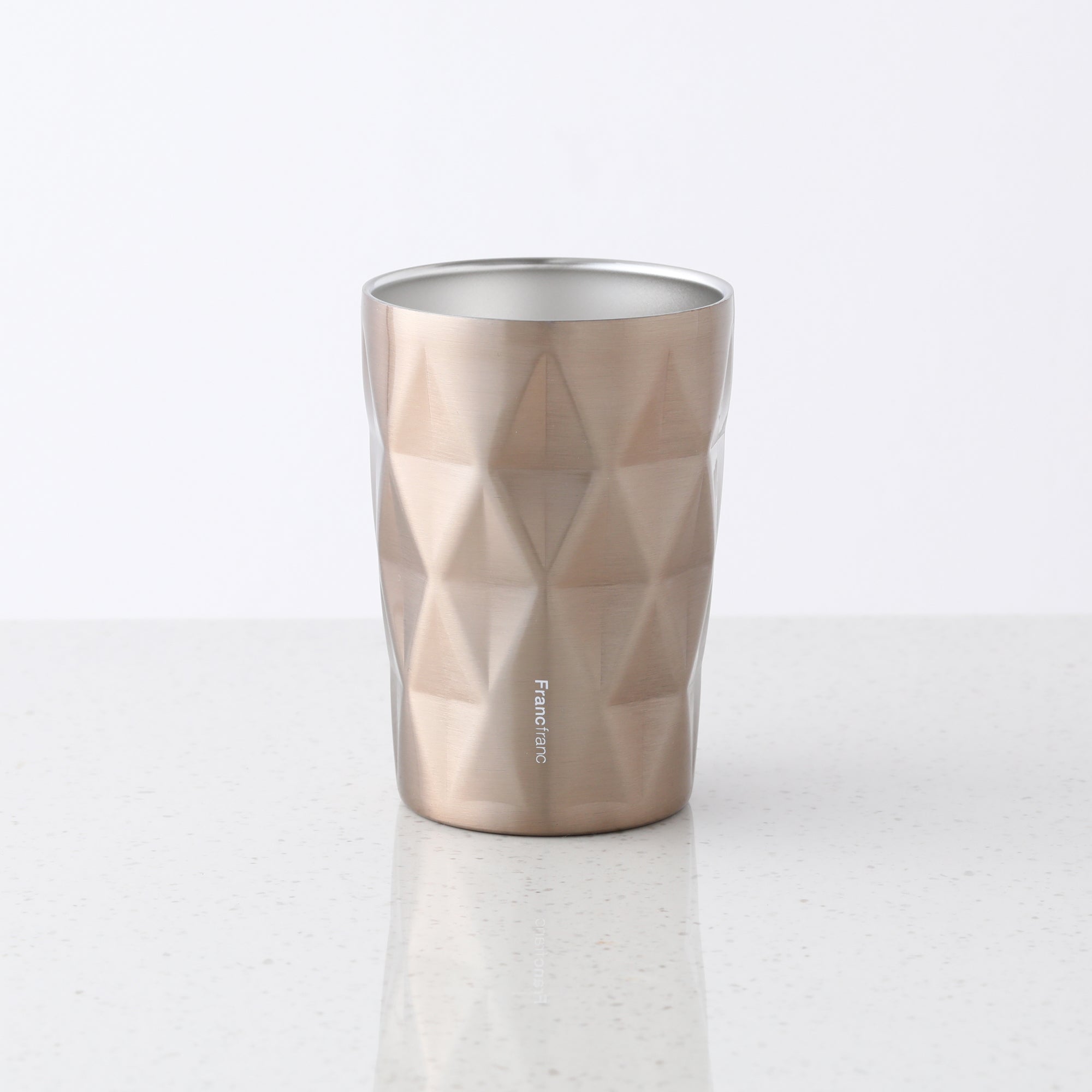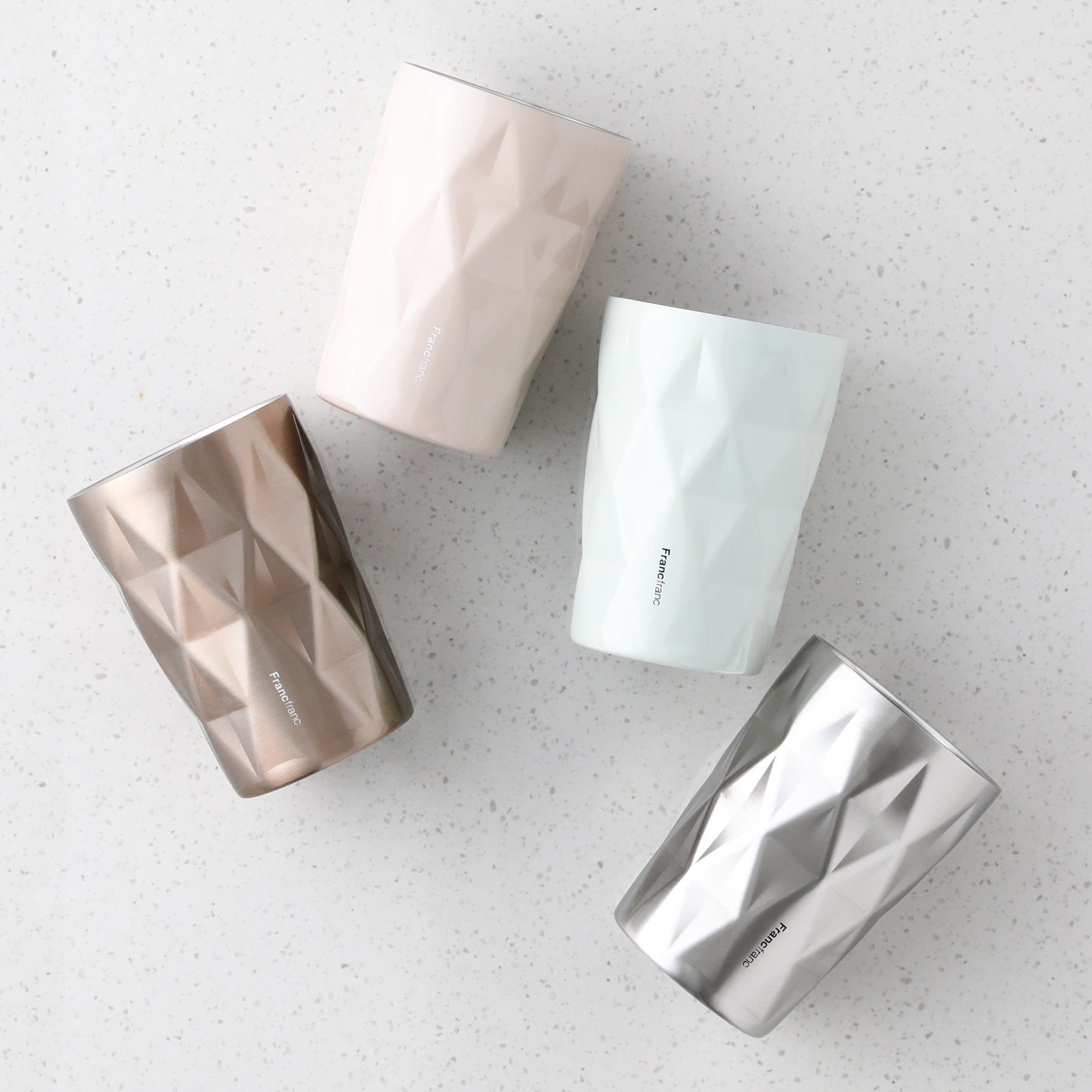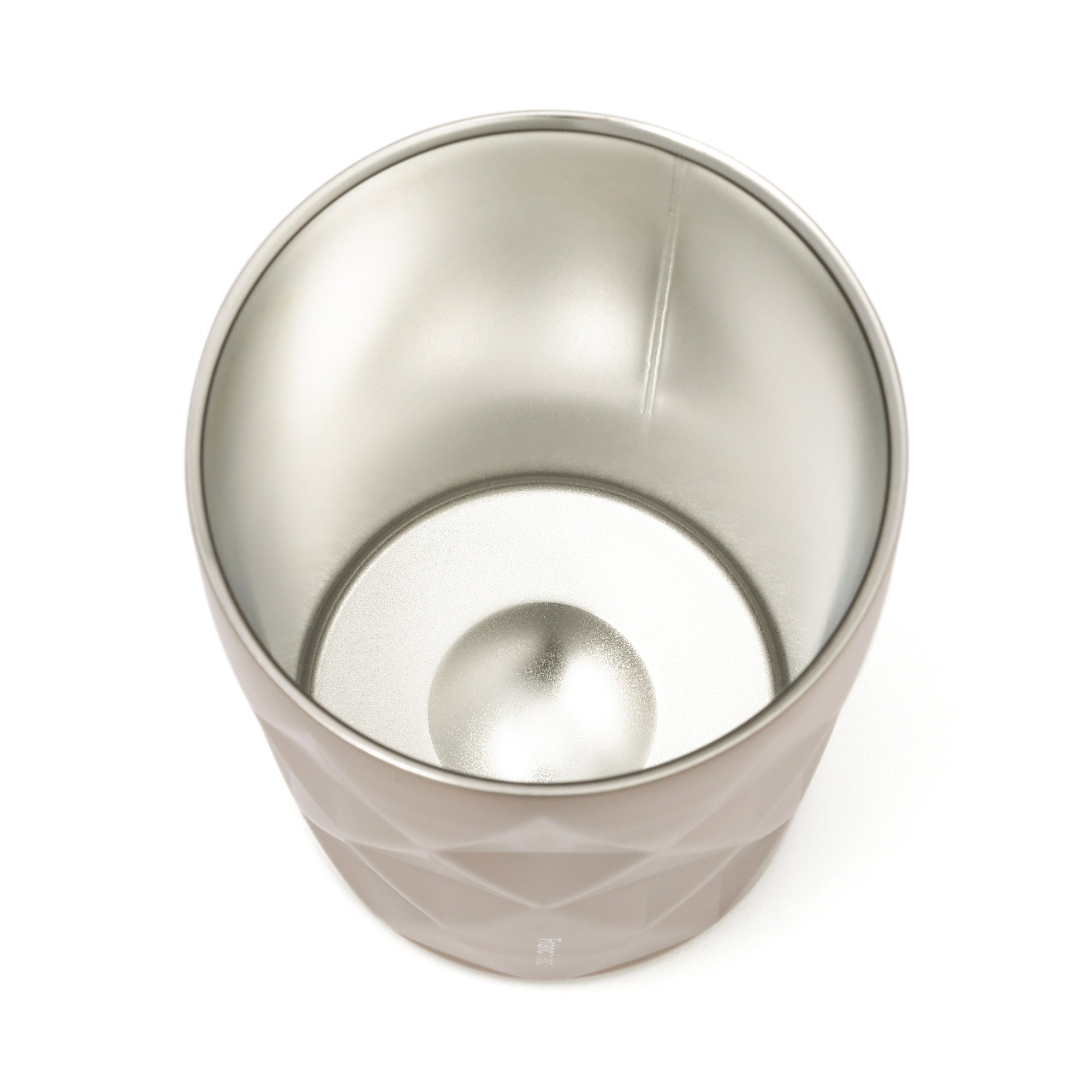 テイクアウトしたドリンクやコンビニコーヒーなどを、カップごと入れられる真空二重構造のステンレスカップに新柄登場です。アイスのレギュラーサイズ/ラージサイズ(カップによってはホットのラージサイズ)がぴったり入ります。(※各コンビニのカップサイズによって異なります。)レギュラーサイズは少し底が浮きますが、保冷効果はほぼ同じです。オフィスや車、おうち、どんな場所でも長時間飲みごろをキープできるほか、結露も防げるのでデスクが水浸しになることもありません。もちろん直接飲み物を入れてもお使いいただけます。
