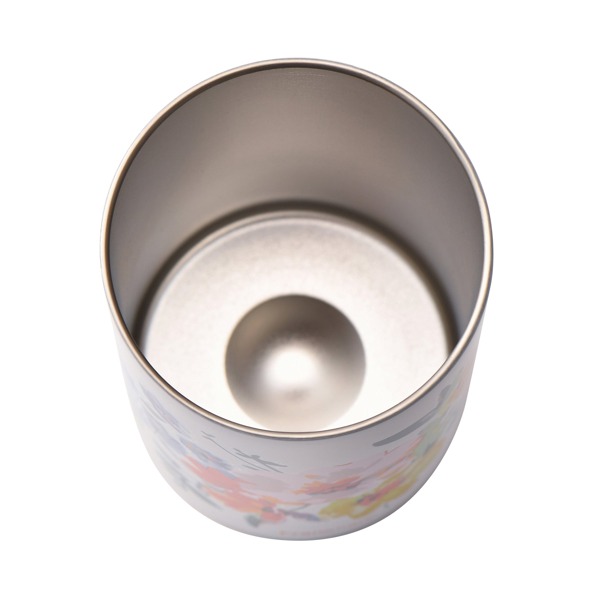 350mlの一般的な缶がそのまま入れられる真空二重構造のステンレスカップです。自宅、車、アウトドア等でドリンクを飲む際、長時間のみごろをキープできる他、結露も防げるので、デスクが水浸しになることもありません。もちろん直接飲み物を入れて使うこともできます。底面にはシリコンが貼ってあるので滑りづらく、静かにテーブルに置くことができます。