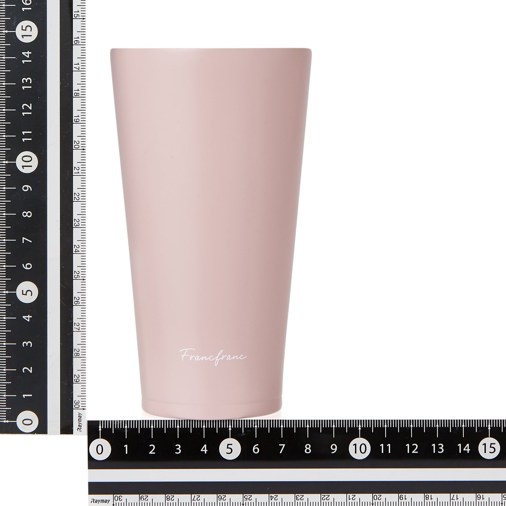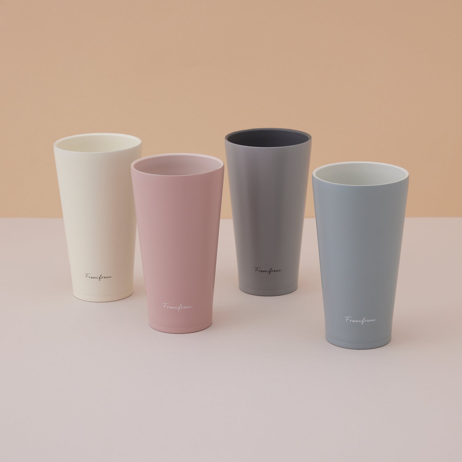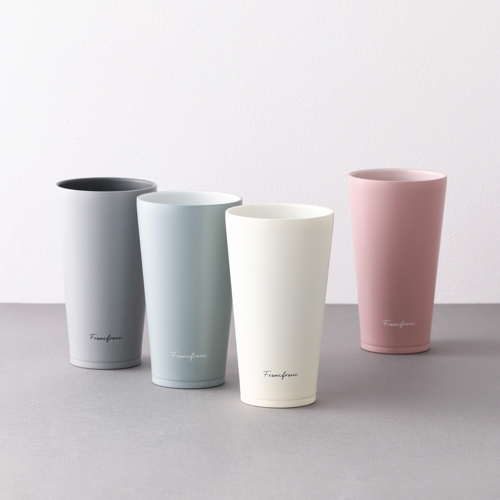 内側にセラミックコーティング、外側にはアクリル塗装を施したステンレスタンブラーです。ステンレスタンブラーの優れた保温・保冷効果はそのままに、特有の感触や金属臭を軽減。滑らかな手触り、口当たりで飲み物本来の味を味わっていただきやすくしました。つるっとしているので汚れ落ちもスムーズ。お手入れも簡単です。容量は390mlと満足なサイズ感。食事のときはもちろん、仕事中のおともにもぴったりです。カラーはアイボリー、ピンク、グレー、ブルーの4色をご用意。内側と外側をさりげなくバイカラーにして、シンプルなだけで終わらないFrancfrancらしいアイテムに仕上げました。落ち着いたくすみカラーなので、どんな食器ともコーディネートしやすく、食卓を優しく彩ります。毎日使っても飽きのこないタイムレスなデザインはご自宅用にはもちろん、ギフトにもおすすめです。