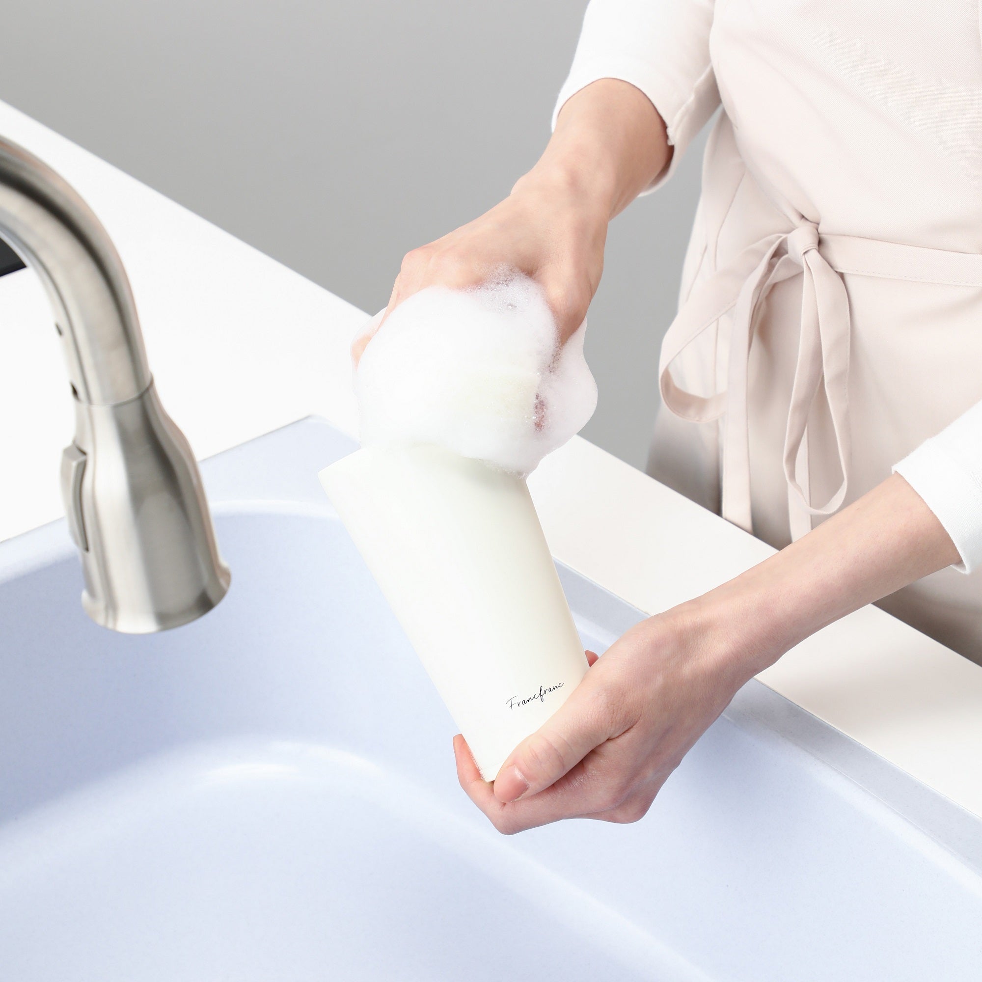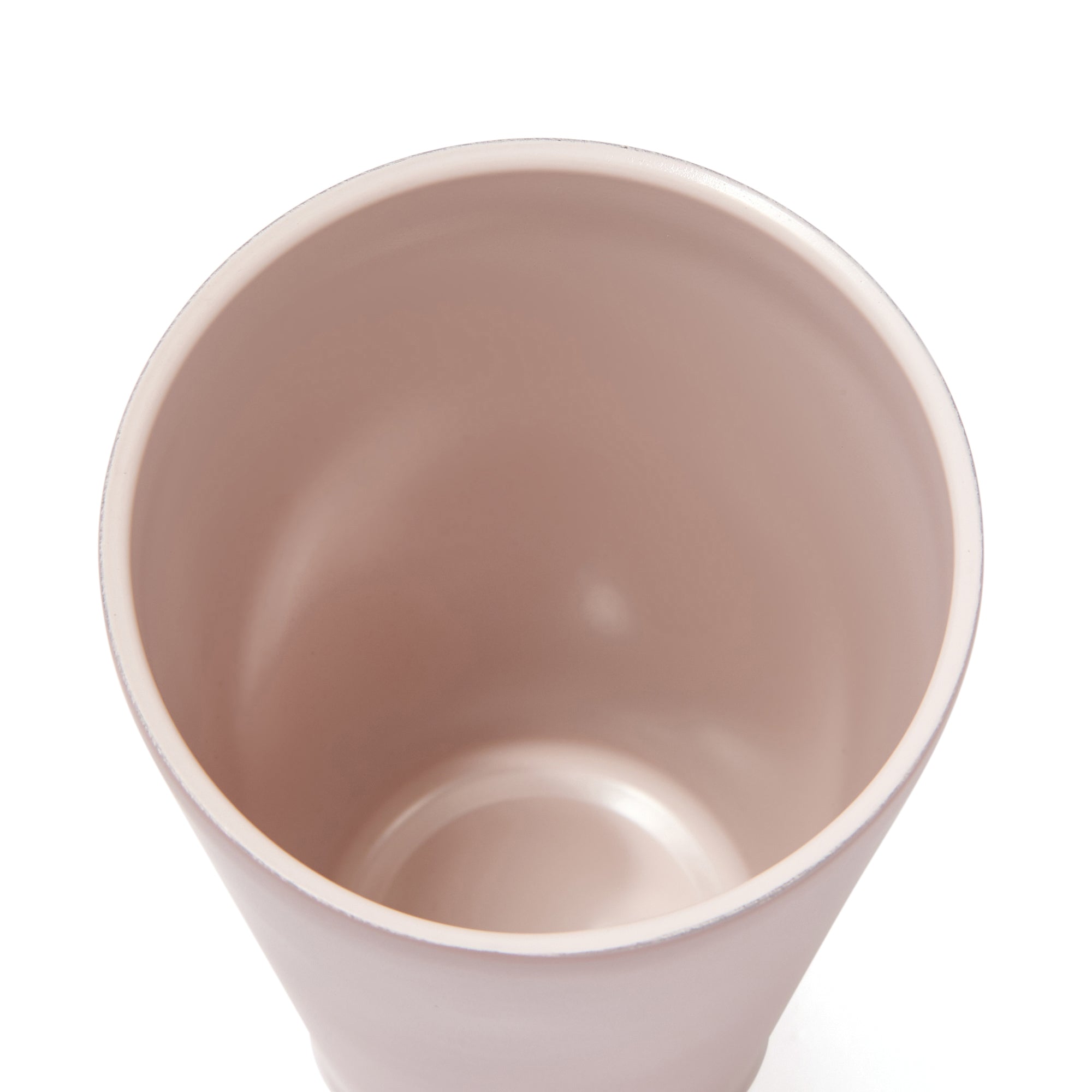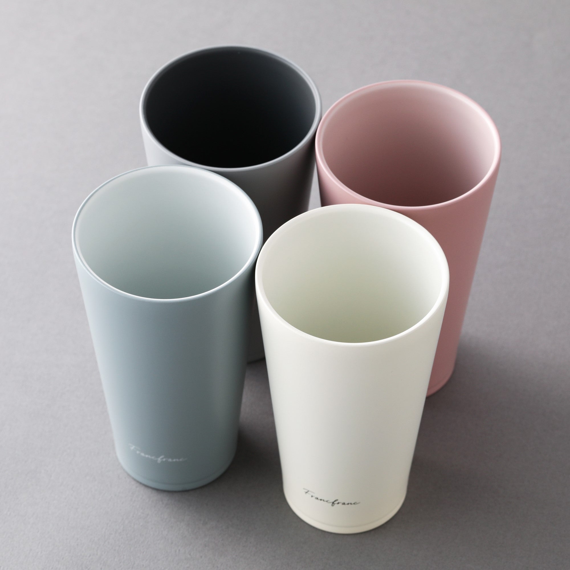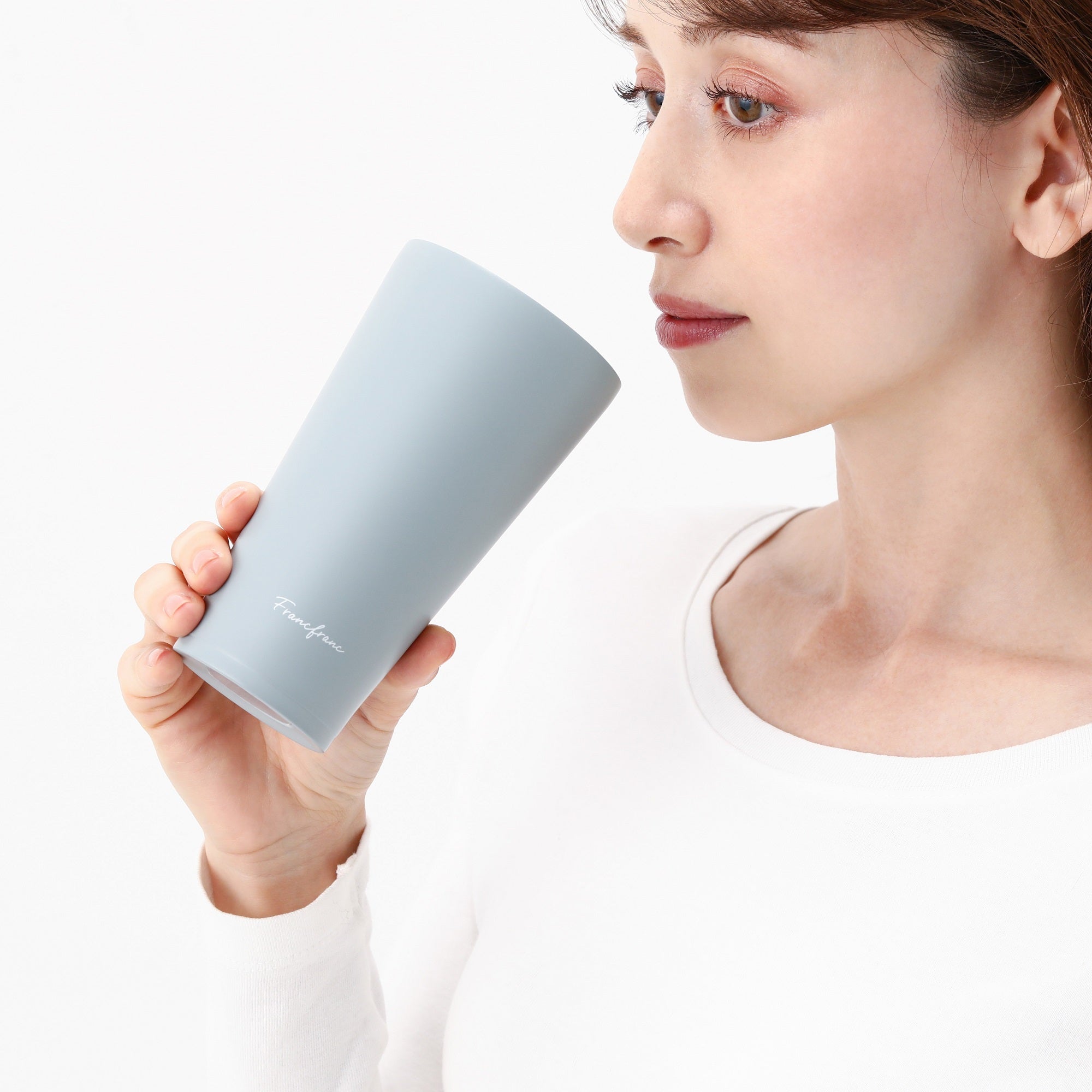 内側にセラミックコーティング、外側にはアクリル塗装を施したステンレスタンブラーです。ステンレスタンブラーの優れた保温・保冷効果はそのままに、特有の感触や金属臭を軽減。滑らかな手触り、口当たりで飲み物本来の味を味わっていただきやすくしました。つるっとしているので汚れ落ちもスムーズ。お手入れも簡単です。容量は390mlと満足なサイズ感。食事のときはもちろん、仕事中のおともにもぴったりです。カラーはアイボリー、ピンク、グレー、ブルーの4色をご用意。内側と外側をさりげなくバイカラーにして、シンプルなだけで終わらないFrancfrancらしいアイテムに仕上げました。落ち着いたくすみカラーなので、どんな食器ともコーディネートしやすく、食卓を優しく彩ります。毎日使っても飽きのこないタイムレスなデザインはご自宅用にはもちろん、ギフトにもおすすめです。