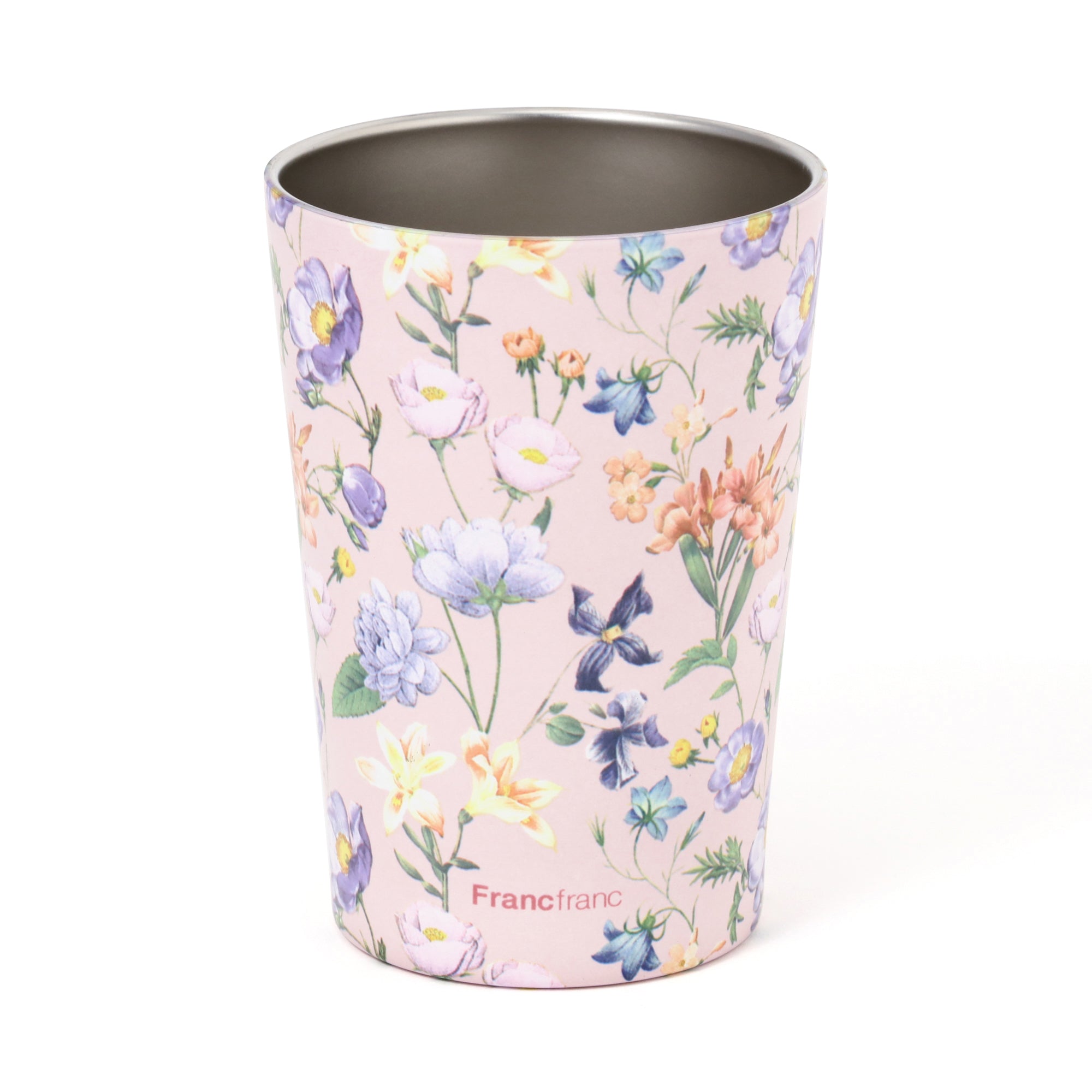 人気のルースト サーモタンブラーシリーズがデザインリニューアル。テイクアウトしたドリンクやコンビニコーヒーなどを、カップごと入れられる真空二重構造のステンレスカップです。アイスのレギュラーサイズ/ラージサイズ(カップによってはホットのラージサイズ)がぴったり入ります。(※各コンビニのカップサイズによって異なります。)レギュラーサイズはすこし底が浮きますが、保温・保冷効果はほぼ同じです。オフィスや車、ご自宅でドリンクを飲む際、長時間のみごろをキープできるほか、結露も防げるのでデスクが水浸しになることもありません。もちろん直接飲み物を入れてもお使いいただけます。一から柄を起こしたFrancfrancオリジナルの花柄デザインで、母の日やホワイトデーのギフトにもおすすめです。