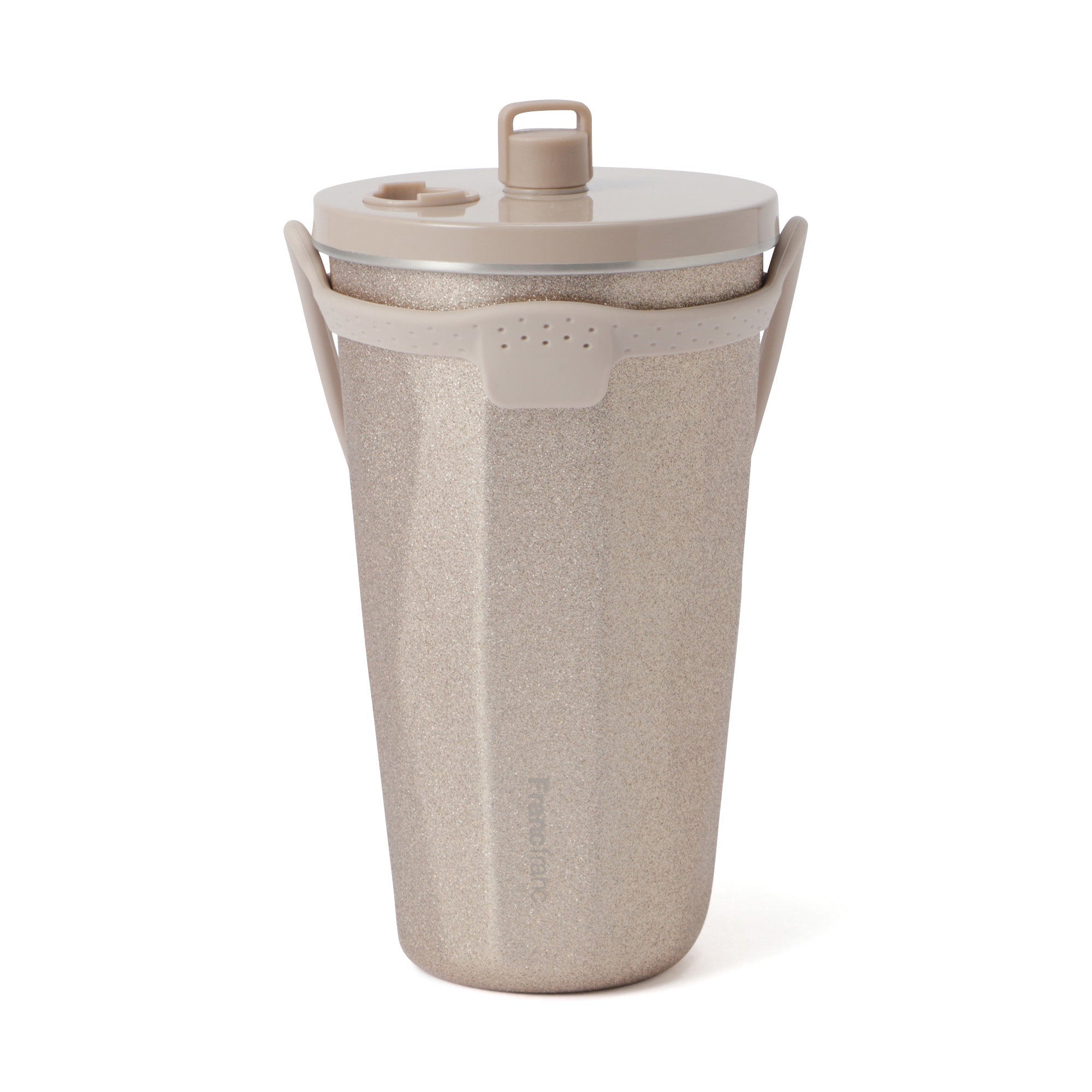 人気のフタ付きサーモマグにストロー付きタイプが登場です。 温かい飲み物を入れても外側が熱くならず、冷たい飲み物を入れても結露しにくい、真空二重構造です。 清潔に持ち運びできるようストローがしまえる構造になっています。 キラキラと輝くグリッターの特別感がギフトにぴったりです。