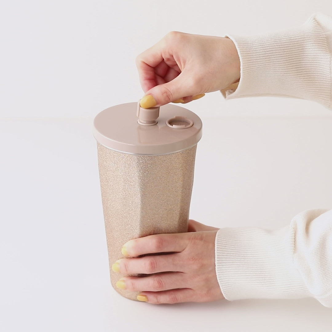 ストロー付き ステンレスタンブラー 500ml グリッター ゴールド