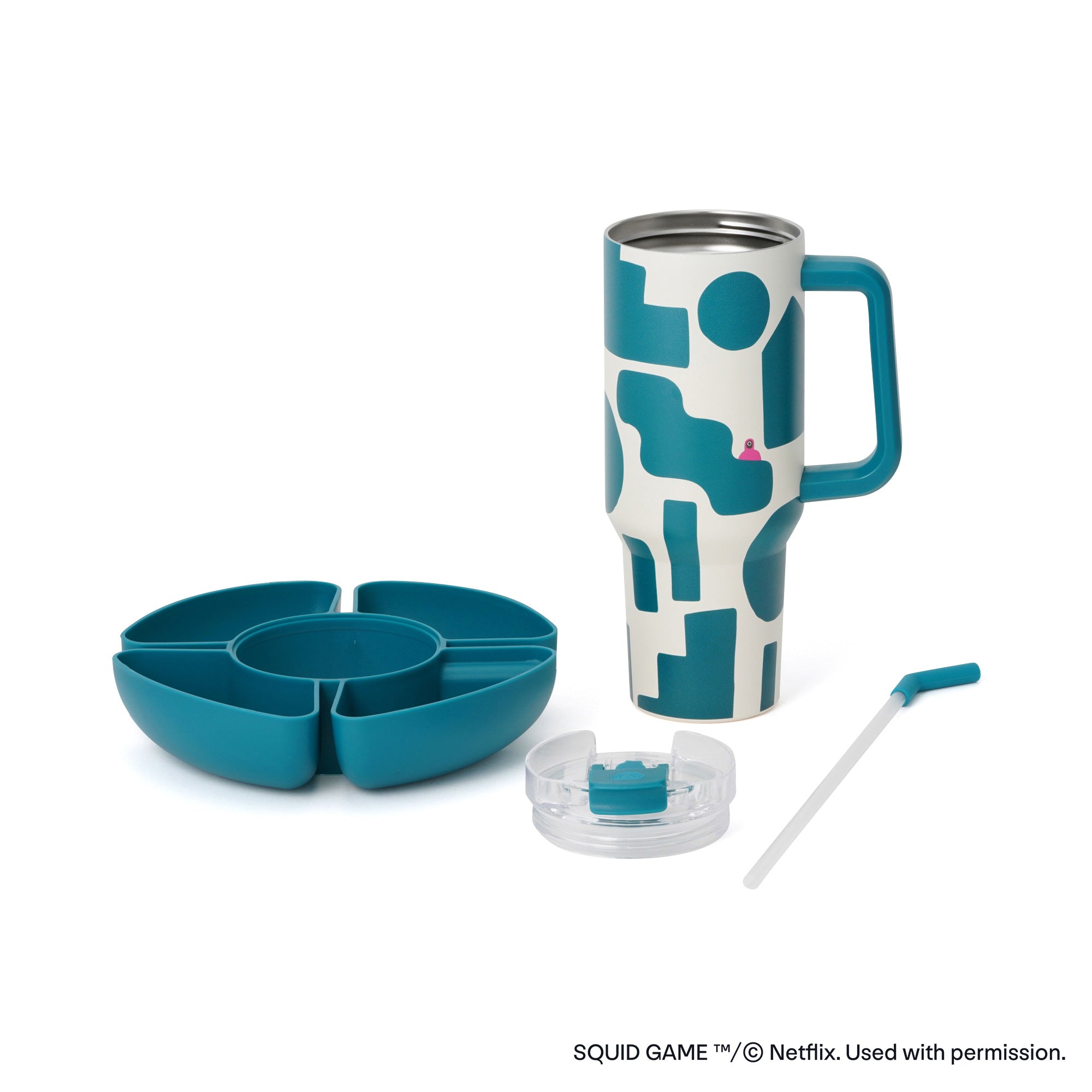 SQUID GAME スナックホルダー付タンブラー 1000ml グリーン×ホワイト