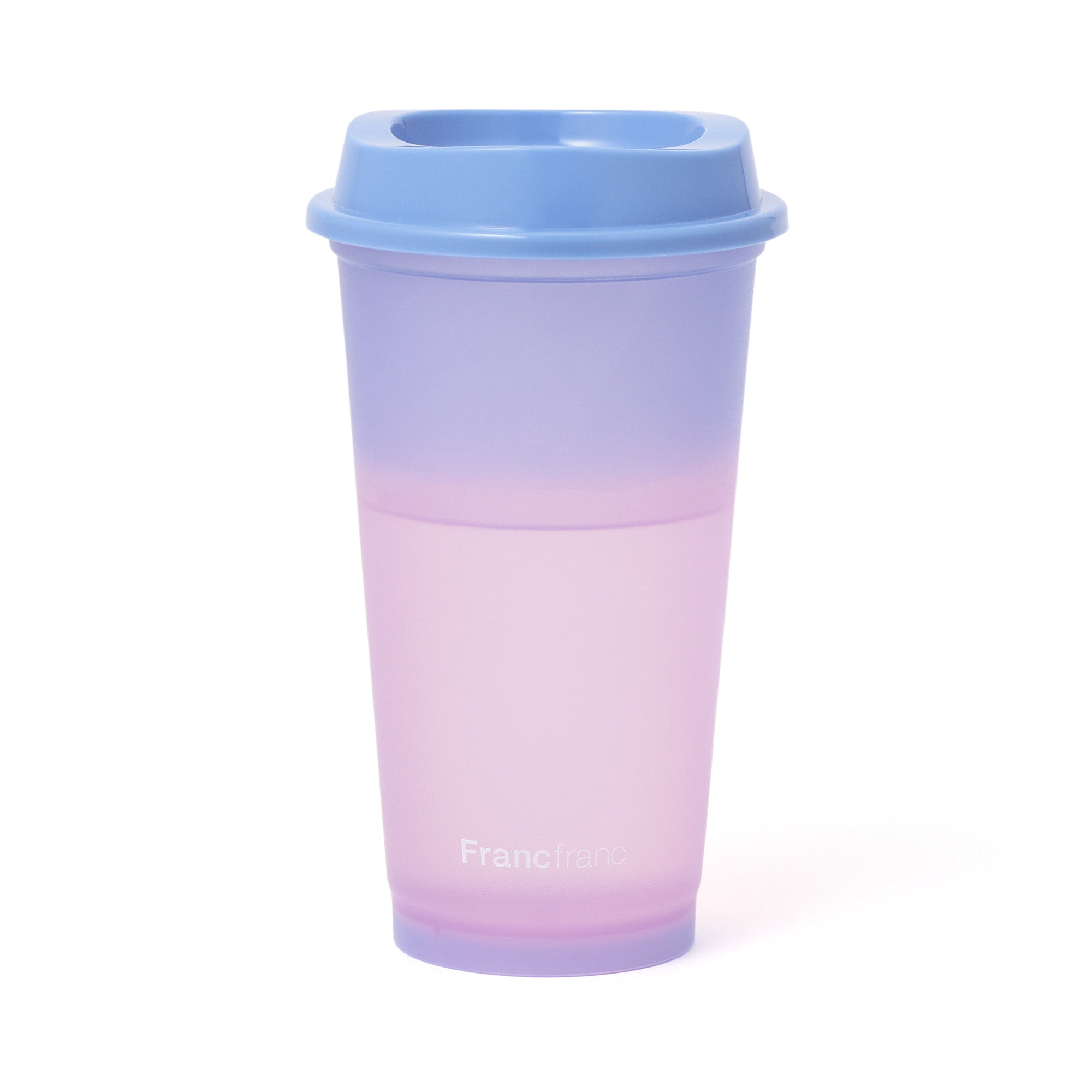 温かい飲み物を入れると色が変わるタンブラーです。SNS映えする可愛いカラーバリエーションです。ファーのスリーブが付いているのも便利で可愛いポイントです。おおよそ45度以上の飲料をカップに注ぐと本体の色が変わります。容量440mlで温かい飲み物を飲むのに丁度いいサイズ感です。