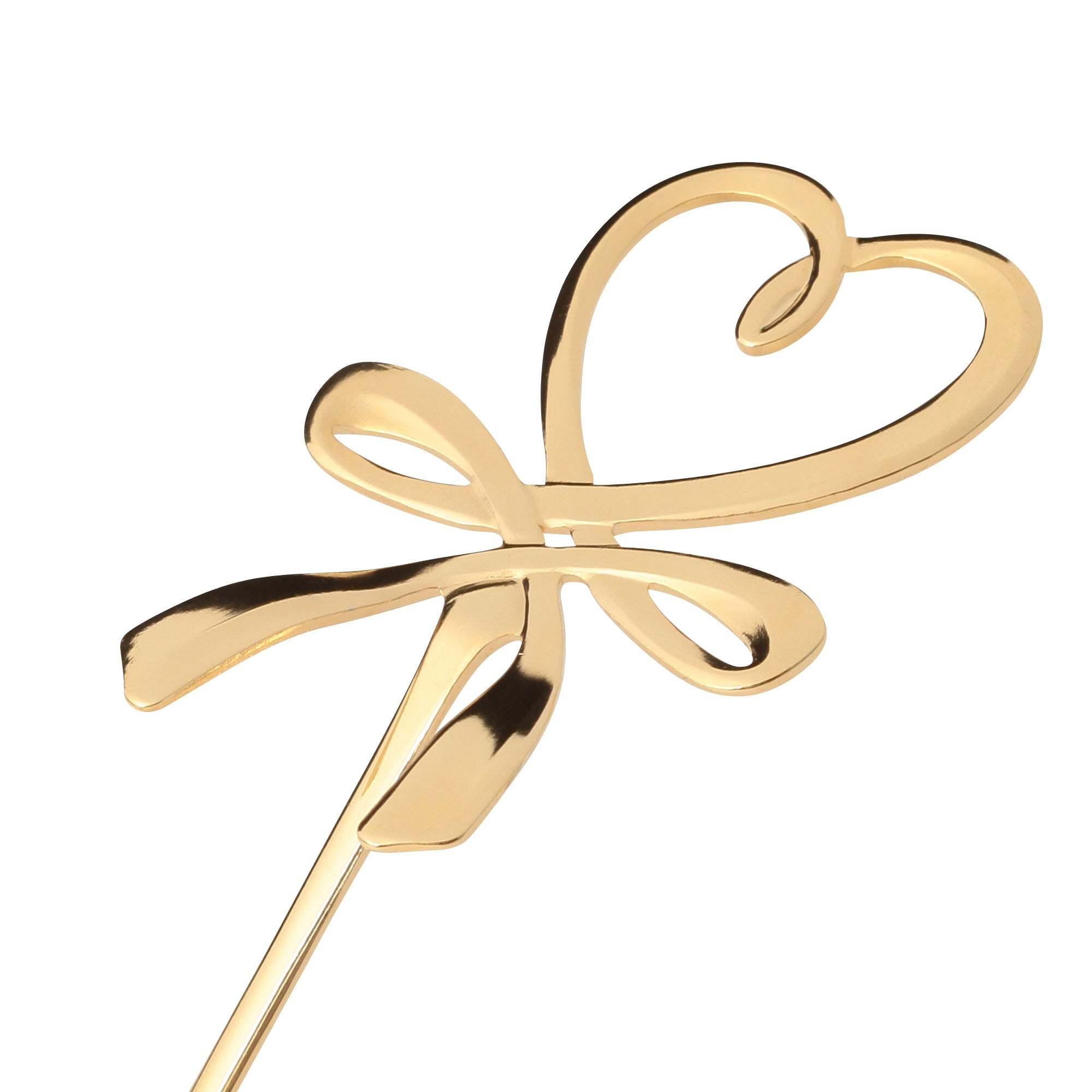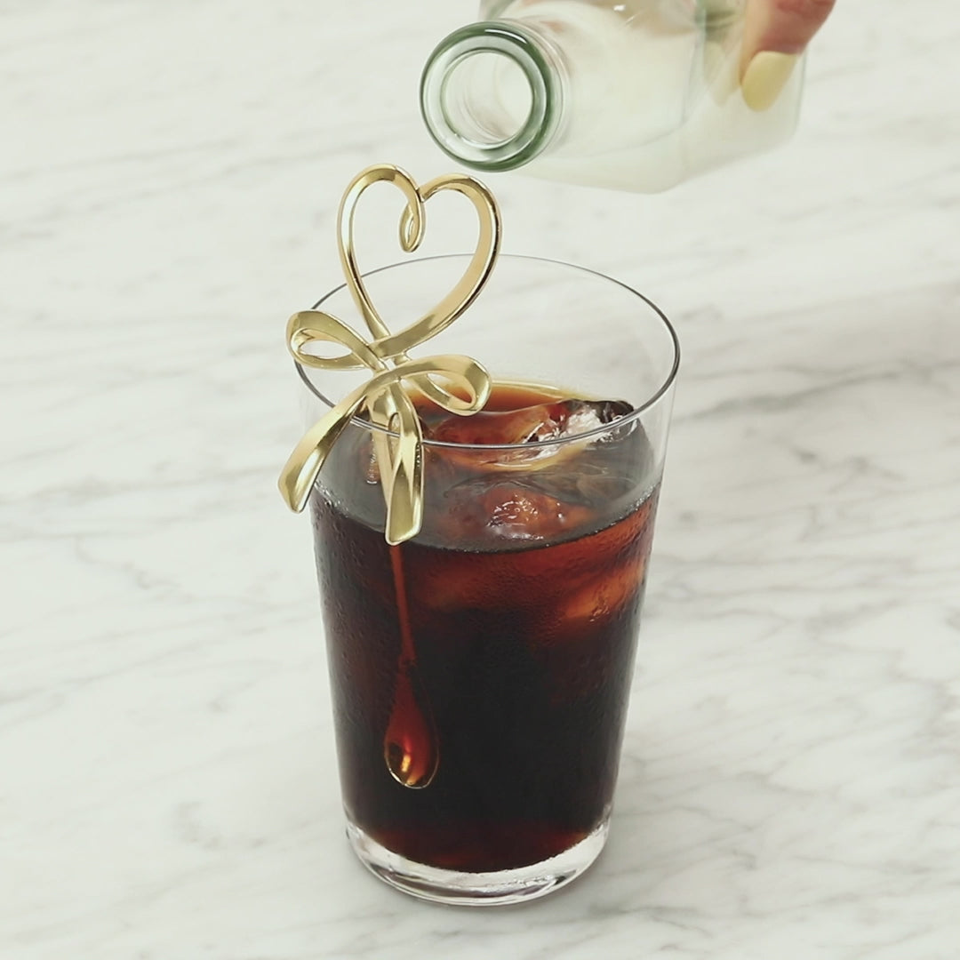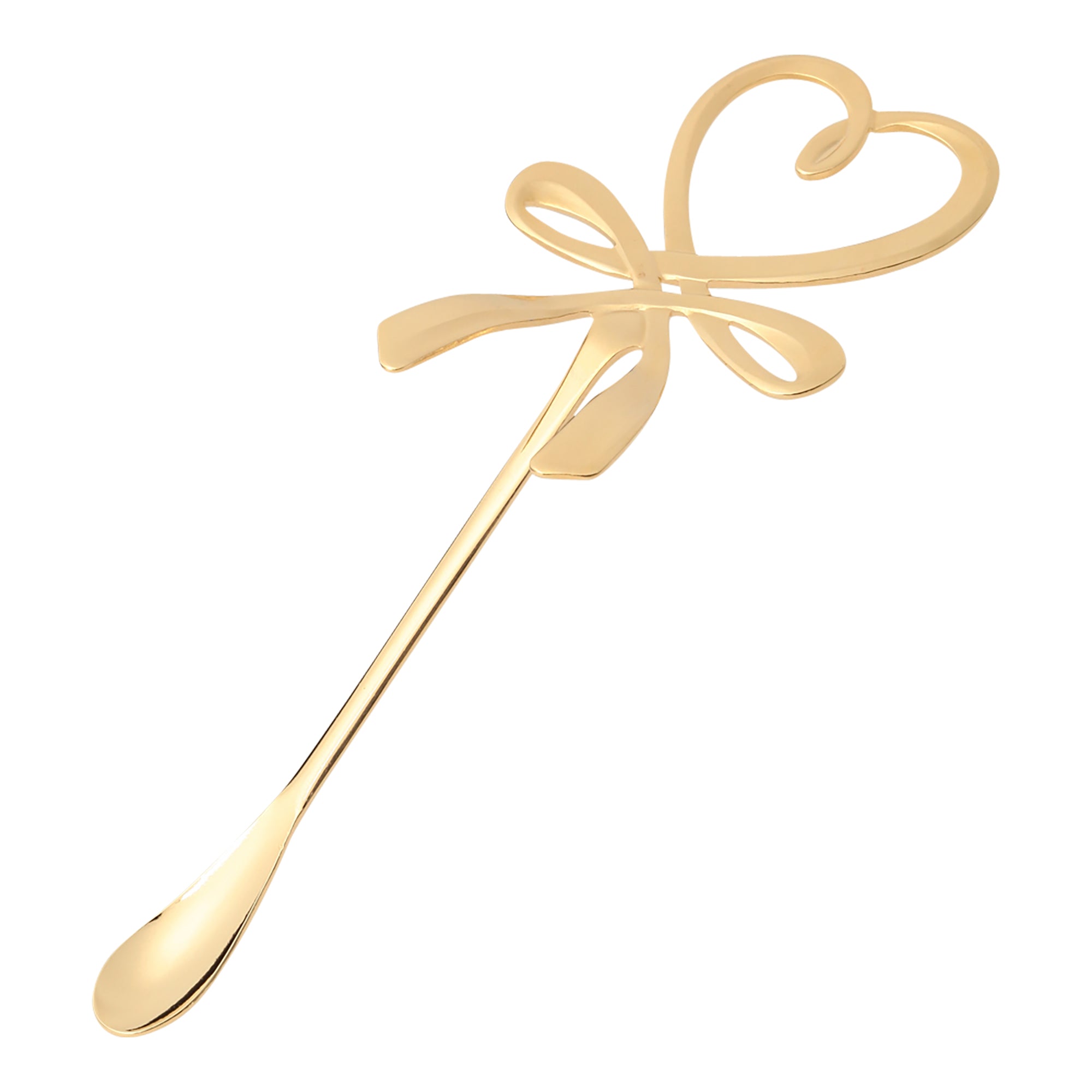 ハートとリボンをモチーフに可愛らしいデザインに仕上げたハートのマドラーです。心ときめく高級感とラブリー感たっぷりなマドラーは、毎日のティータイムを華やかに演出してくれます。カラーはゴールドとシルバーの2色をご用意しました。お好みにあわせてテーブルコーディネートのアクセントにもおススメです。リボンの部分には程よくカーブを施し、カップの縁に掛けられるように仕上げました。デザイン性だけでなく実用性にも優れています。ミルクや砂糖などをかき混ぜやすい形状です。素材は洗いやすく耐久性にも優れたステンレスに、金メッキを施しました。