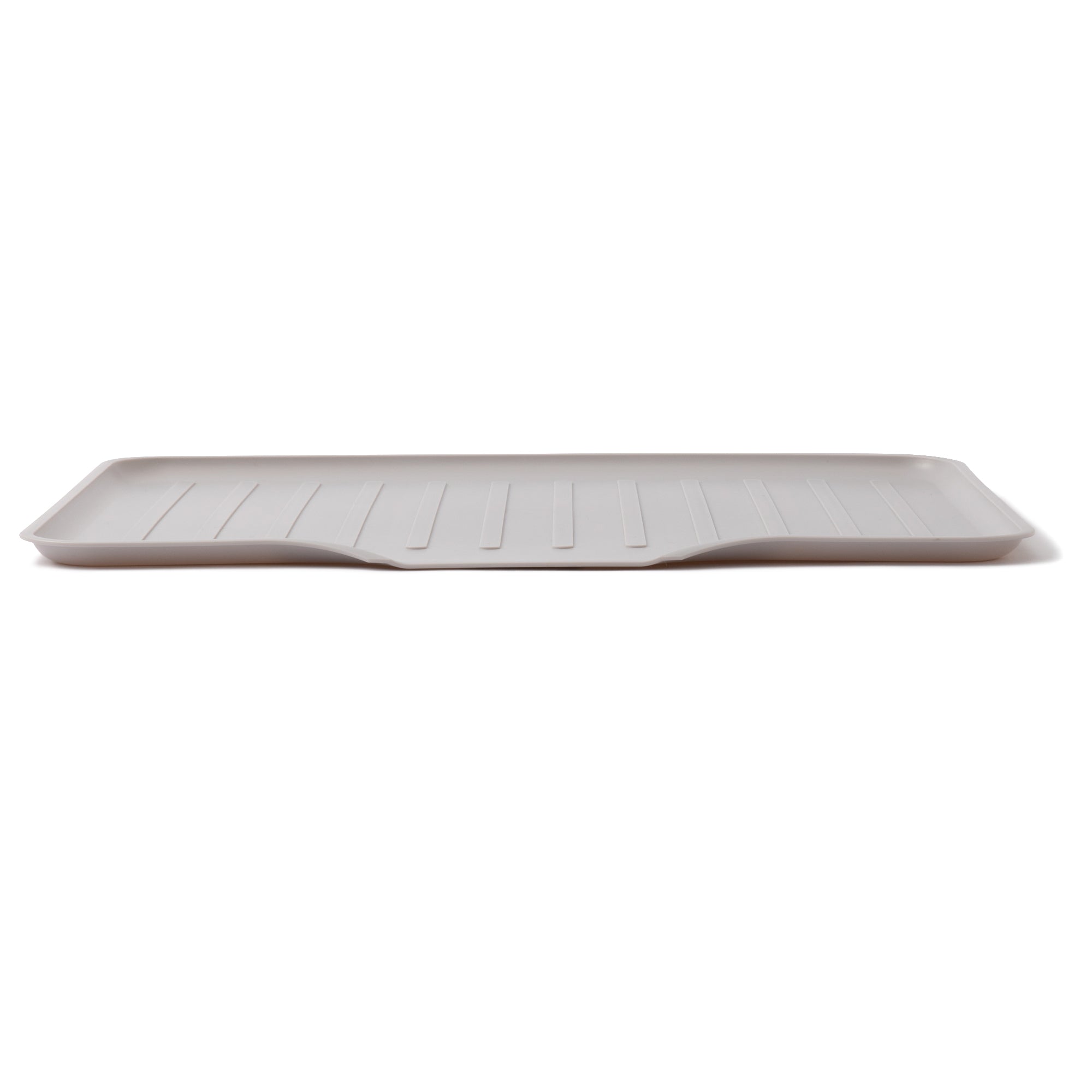 折りたたみ式のX型ディッシュラックにぴったり合うトレーです。ディッシュラックと合わせてはもちろん、溝と傾斜がついているので単体でもお使いいただけます。洗い終わった食器は、水を切ったつもりでも意外と水分が残っているもの。このトレーなら傾斜がついているだけでなく、長辺の片方に水のはけ口がついているのでトレー本体の水切りもバッチリ。お手入れのしやすいマットな質感です。シリーズ展開のキッチンアイテムとトータルで素敵にコーディネートいただけます。生活感の出てしまいがちなキッチンこそ、アイテムの色味や質感に統一感を持たせることで、簡単におしゃれな印象に。新生活の準備や、お引っ越し・模様替えの際にぜひ手に取っていただきたいアイテムです。