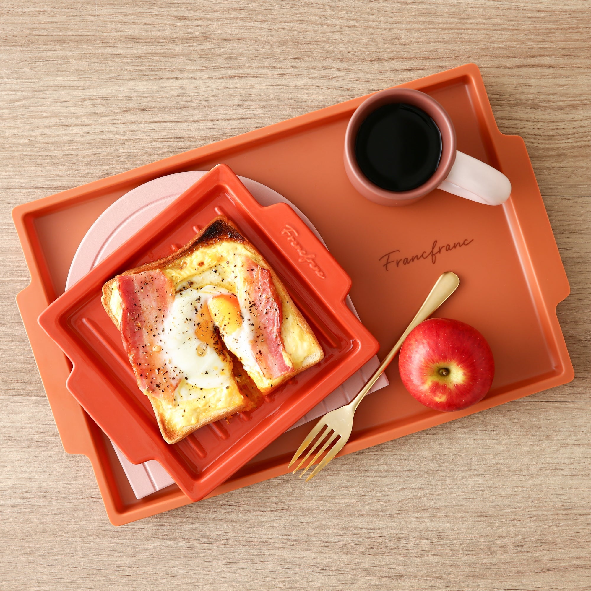 ロゴトーストプレートと形状を合わせたメラミントレーです。表面をマットに仕上げているためナチュラルな印象です。トーストプレート、スープカップ、ミニカップがぴったり収まる大きすぎないサイズ感が魅力です。