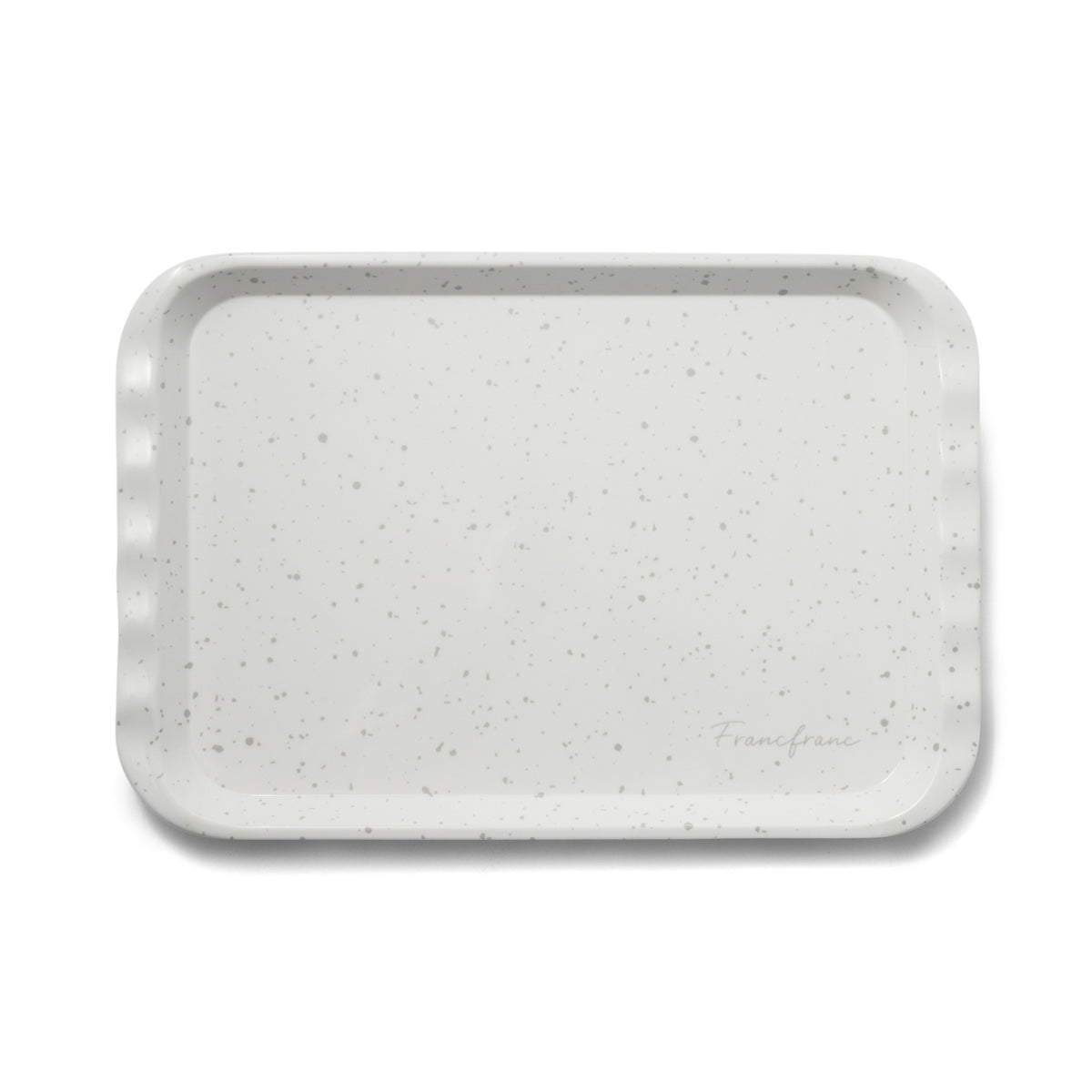 スプラッター柄をあしらったトレーです。シンプルなアイボリーは夏の爽やかさを演出してくれます。小さめサイズのため、デザートトレーとしてや来客時のティーセットを乗せるのにぴったりです。
