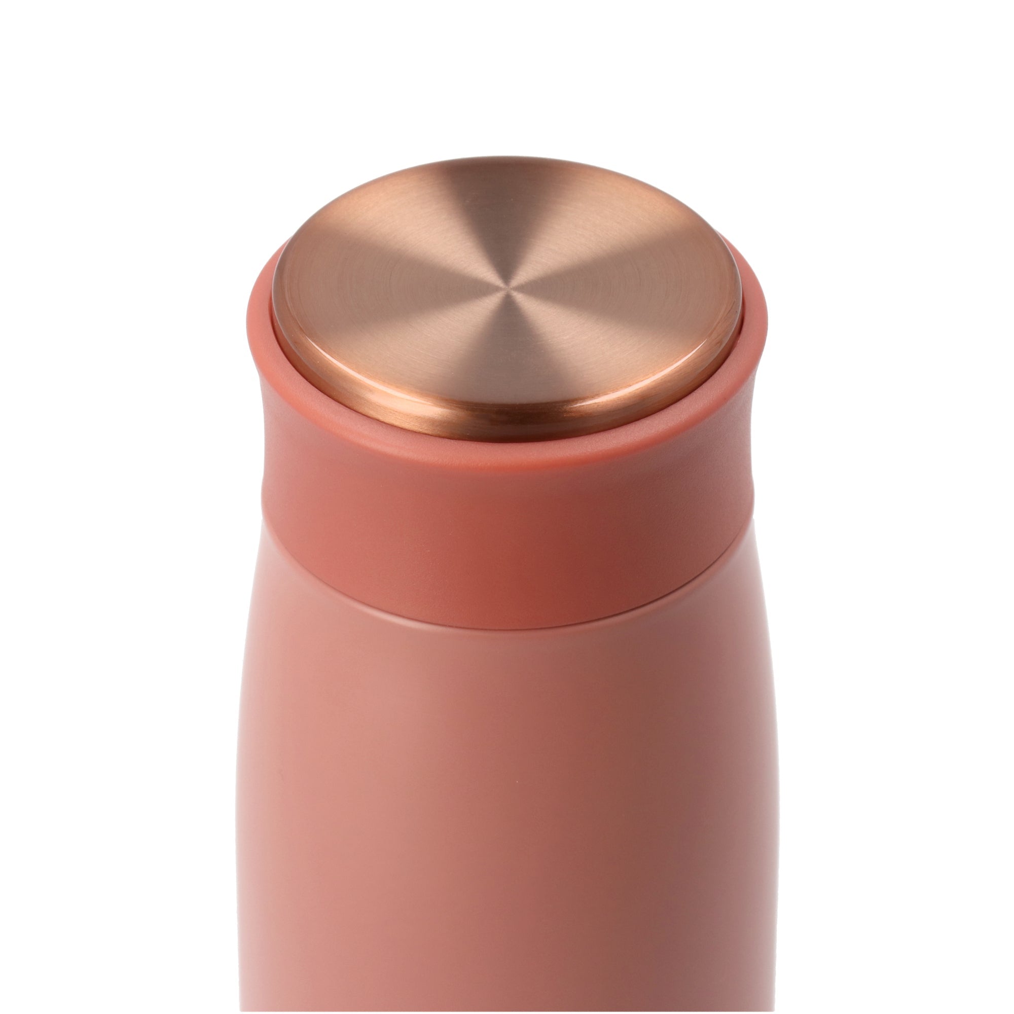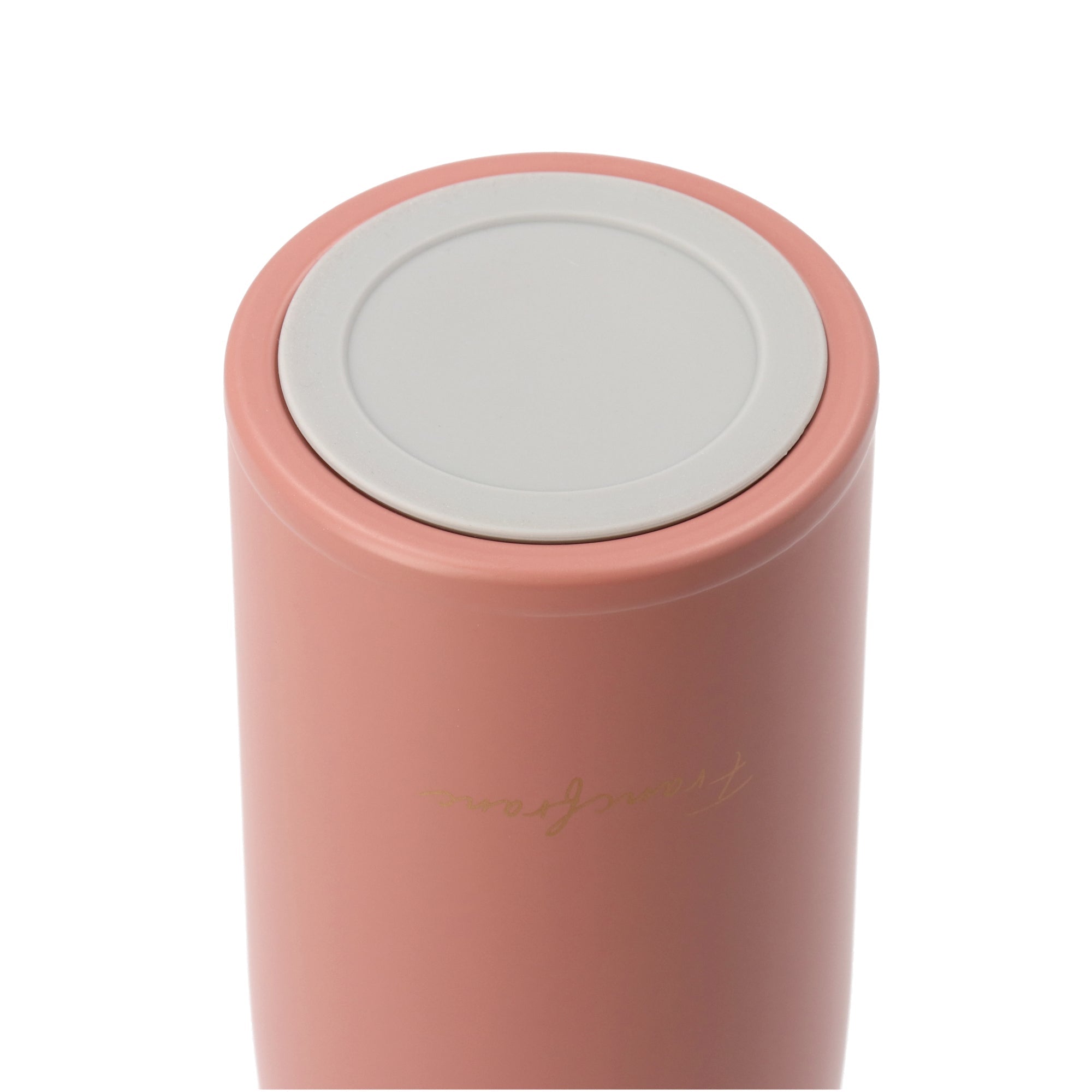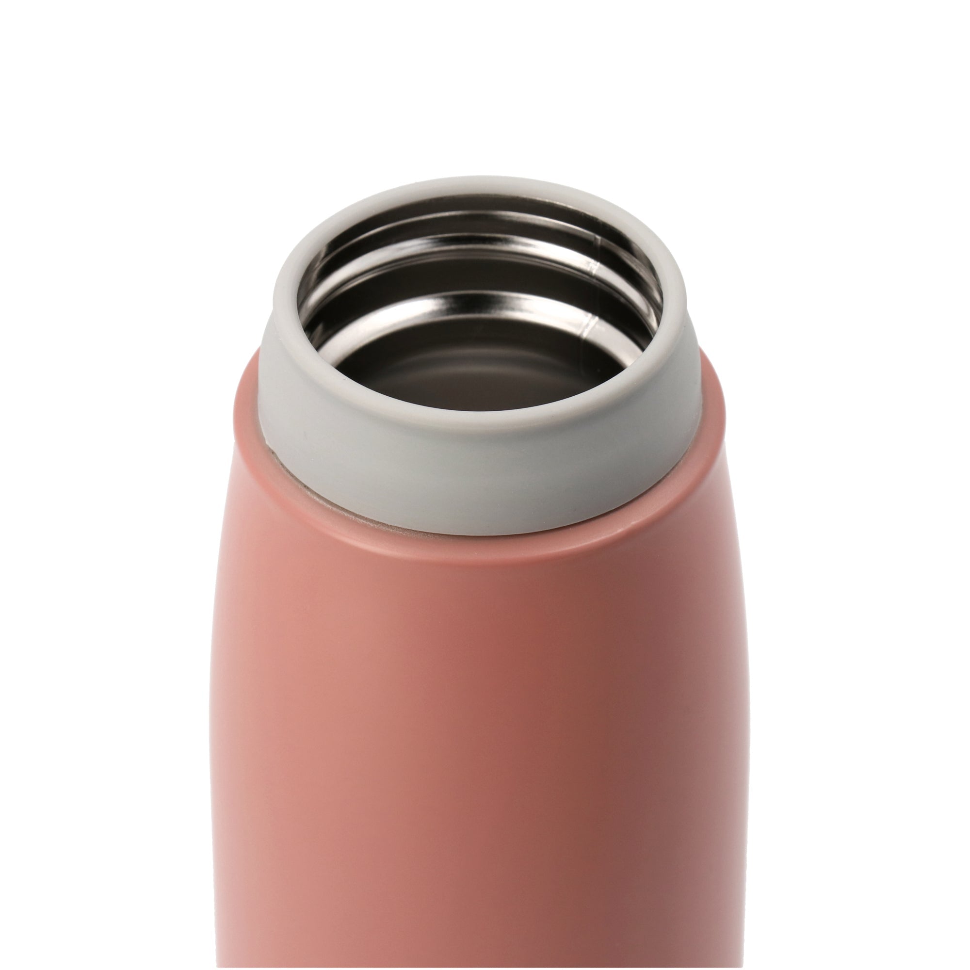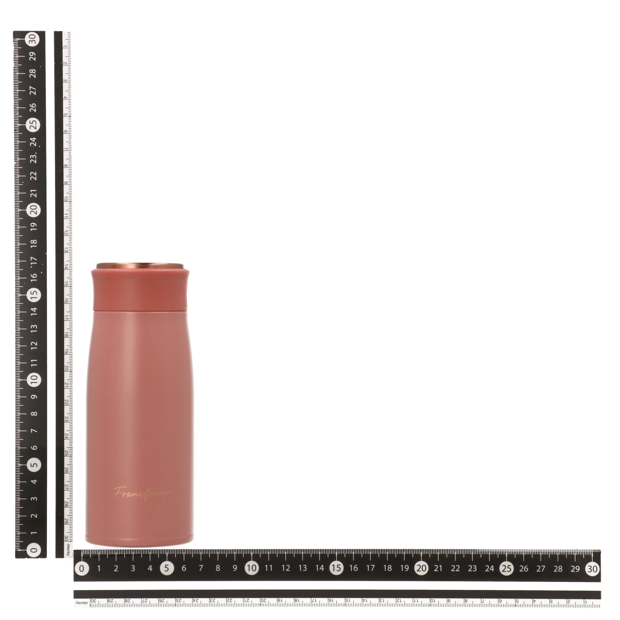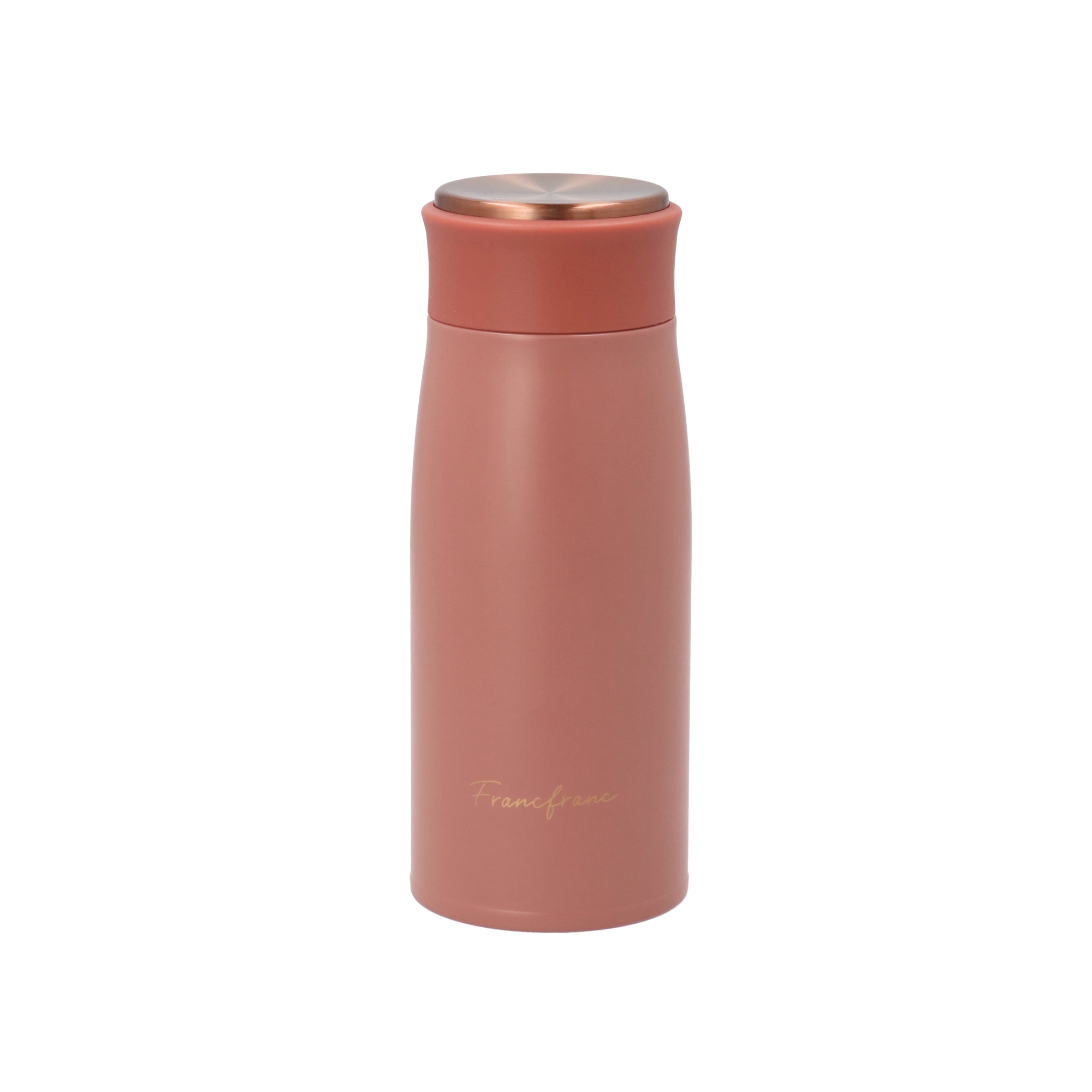 マットな質感にメタリックのツヤ感が映えるエレガントな印象のステンレスボトルです。180gと軽量なので、持ち運びにも便利です。バッグでも場所を取らず、通年使うのに丁度良い350mlサイズです。真空二重構造になっており、飲み物の保温保冷が可能です。フタを外してすぐ飲める直飲みタイプで、飲み口にはカバーをつけているので、優しい口当たりです。底面にはシリコン製のフットパッドが付いているので、オフィスのデスクでも静かに置けます。